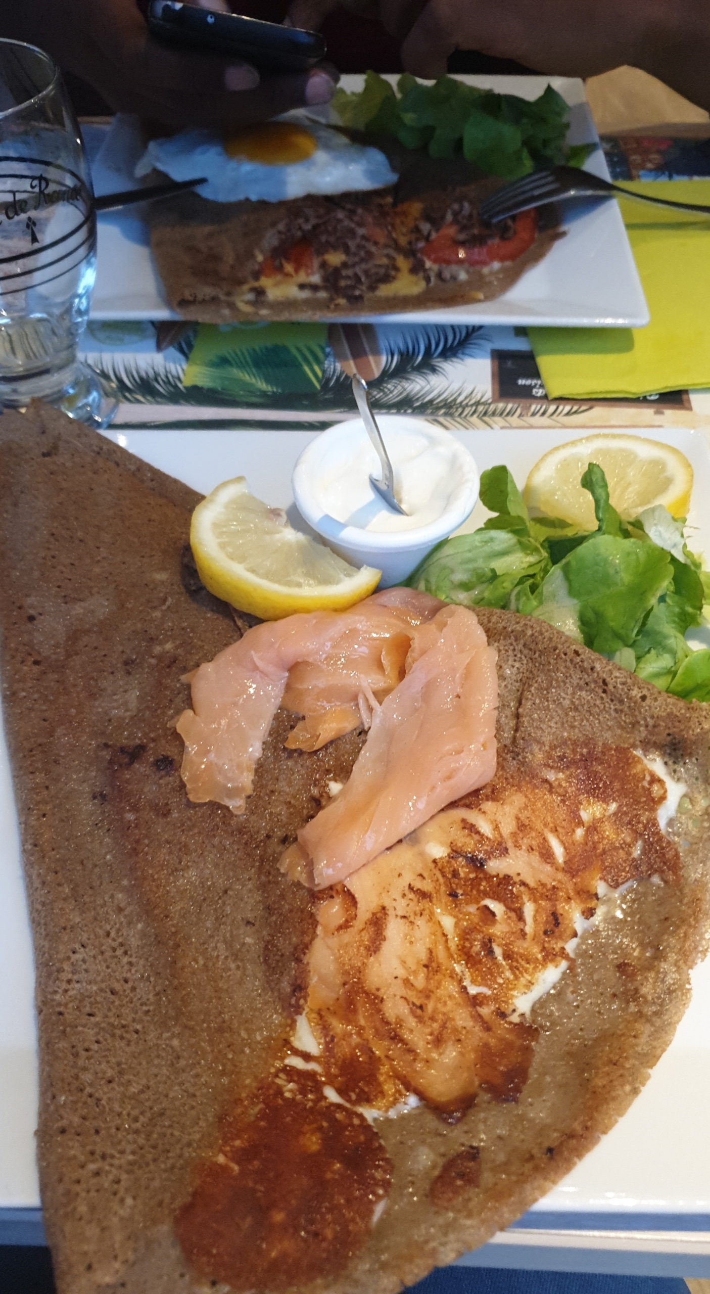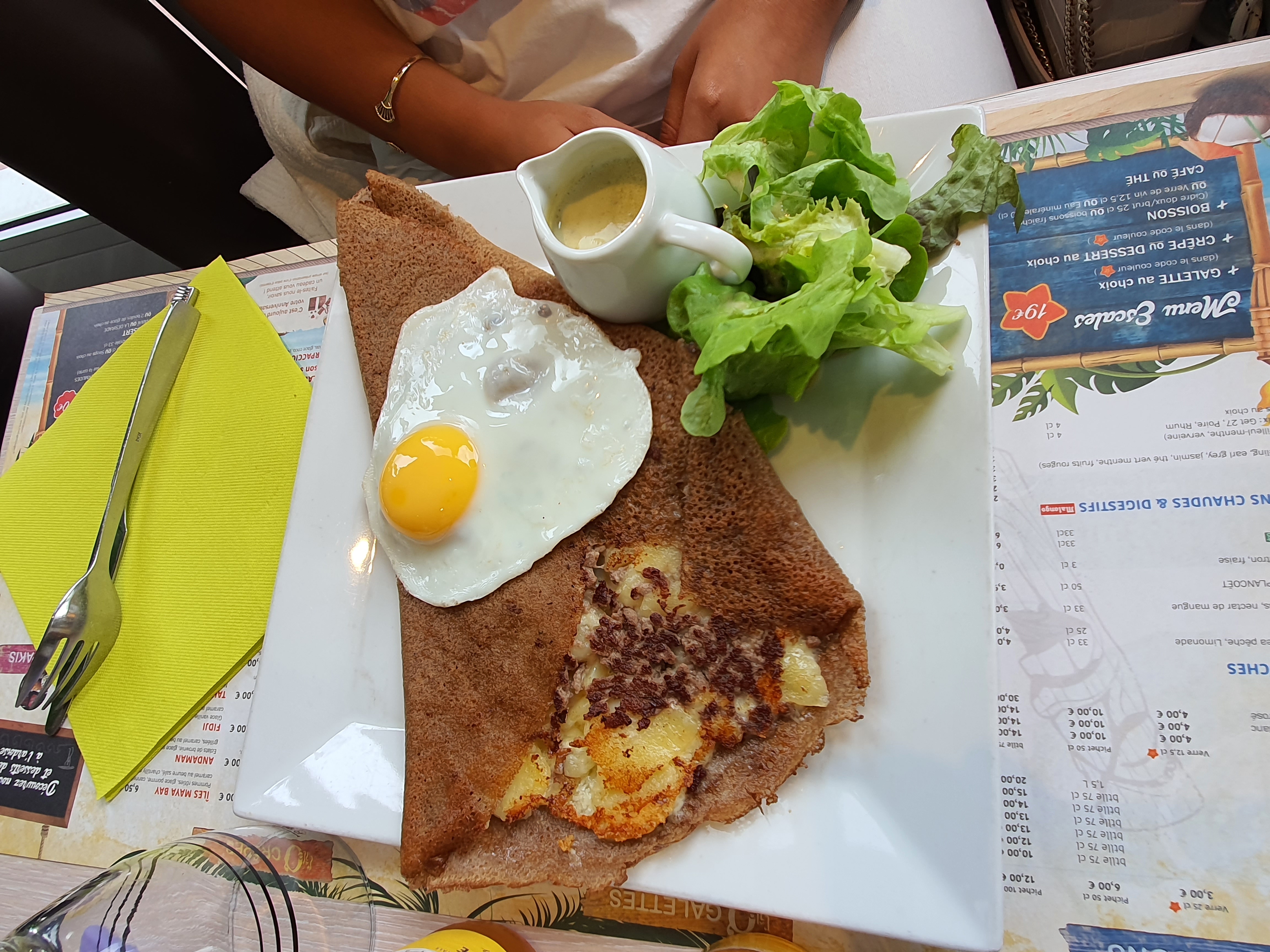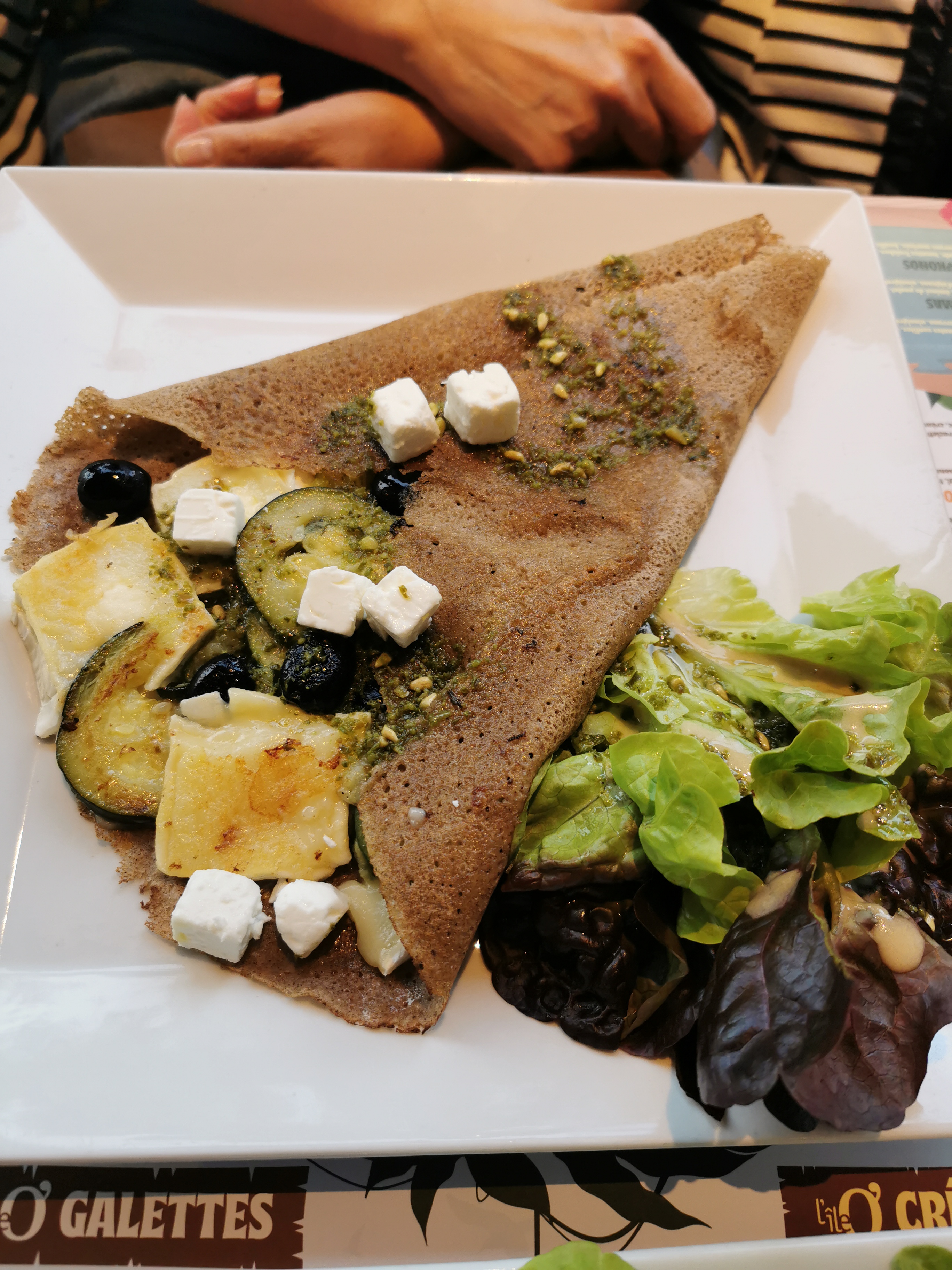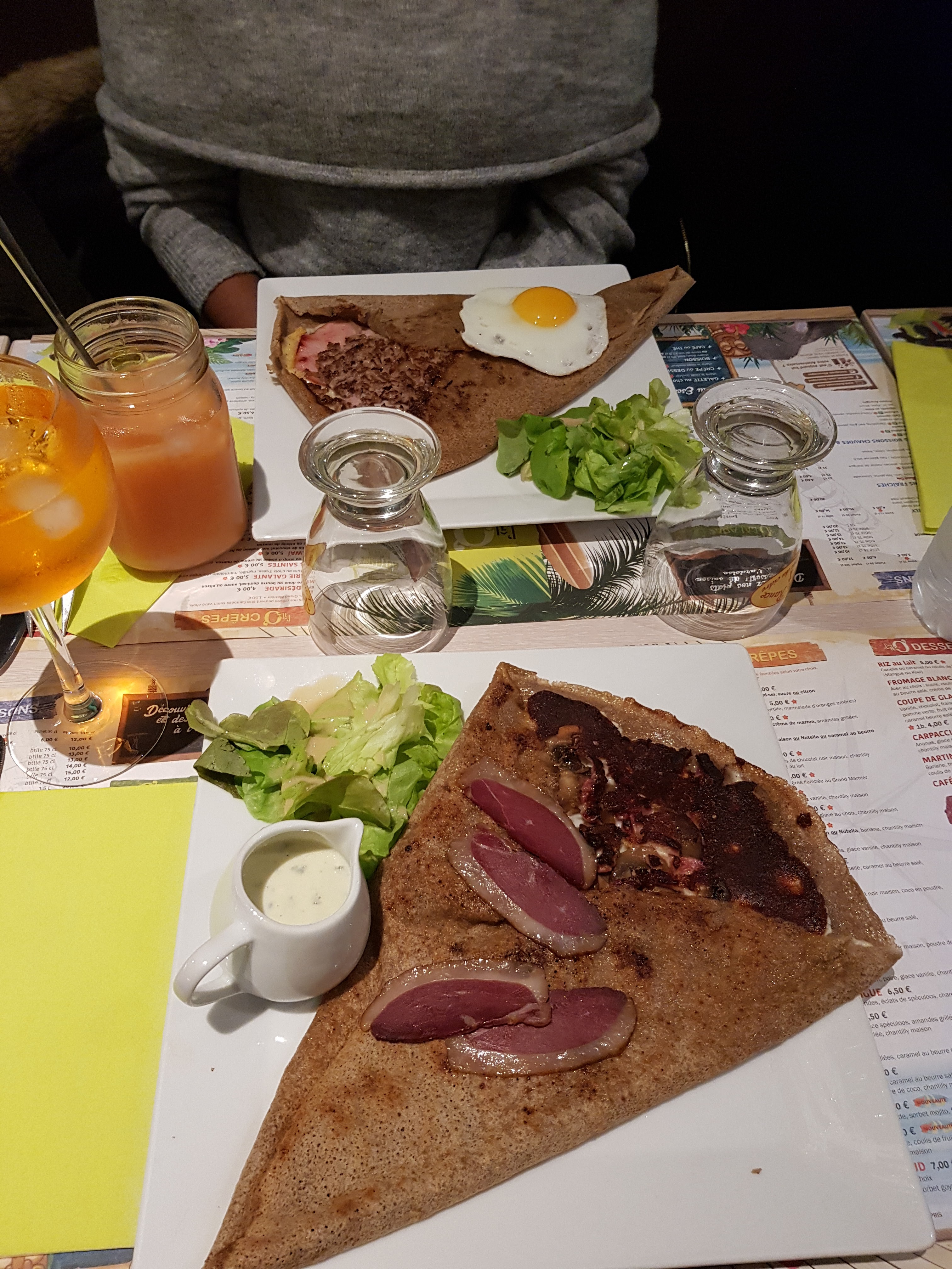 Galette cuite à l'avance et réchauffée au dernier moment ! Horrible ! Très déçu ! Crêpe sucrée bonne.