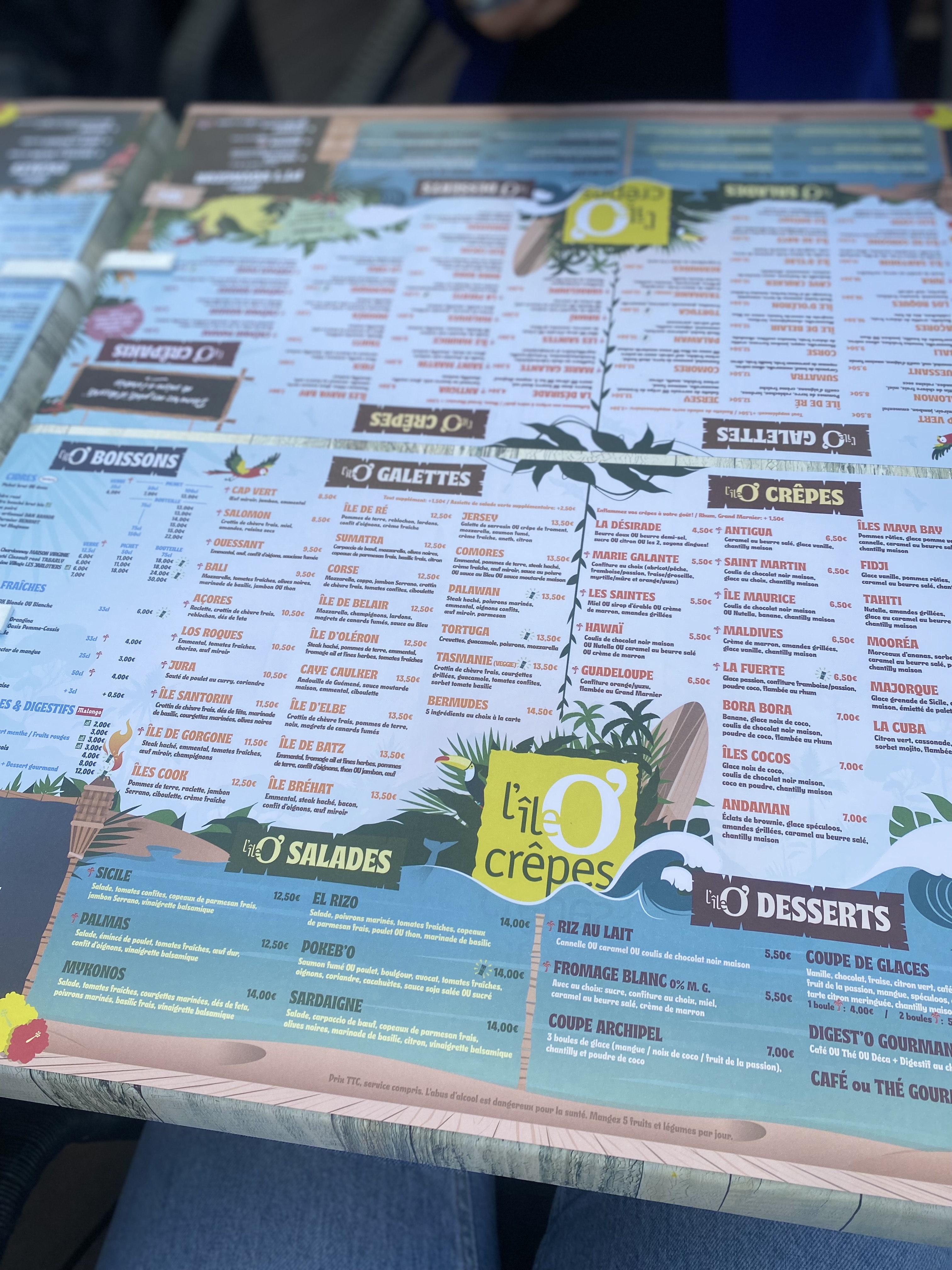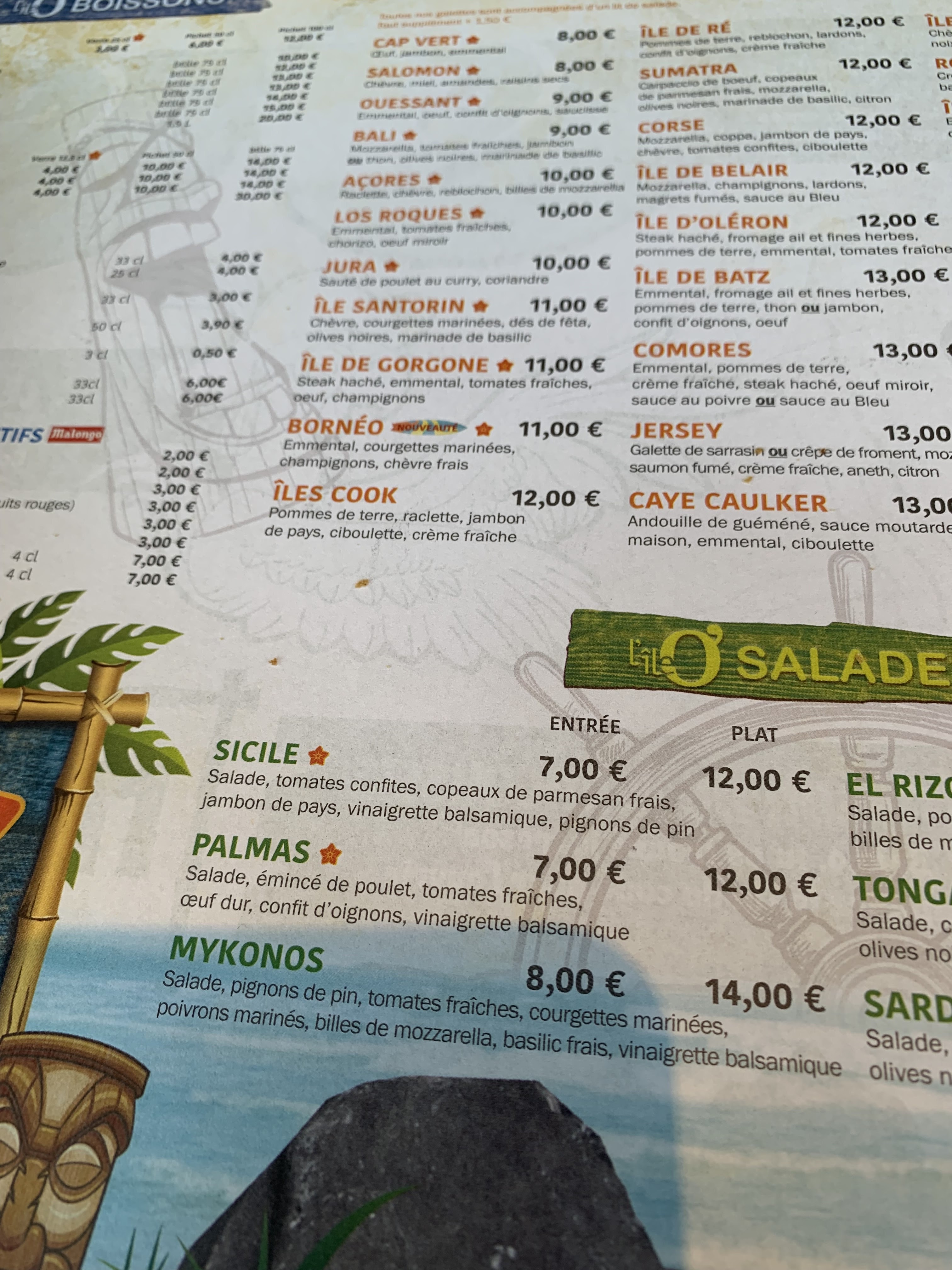 Belle redécouverte de l’île aux crêpes hier soir (bien agréable de trouver un restaurant ouvert dans le coin le dimanche soir) Accueil agréable et chaleureux ; decoration agréable et bien en phase avec le concept de l’ILE AUX CRÊPES. Bon choix de galettes (blé noir) et crêpes (froment). La galette saucisse-œuf-fromage est excellente (galette qui croustille ) : on en redemande 😉 La crêpe froment beurre-sucre est également très bonne (parole de breton 😉). Juste un peu déçu pour la crêpe avec chocolat liquide maison qui était un peu élastique à mon goût. Très bon cidre rosé en bouteille individuelle. Adresse à recommander.