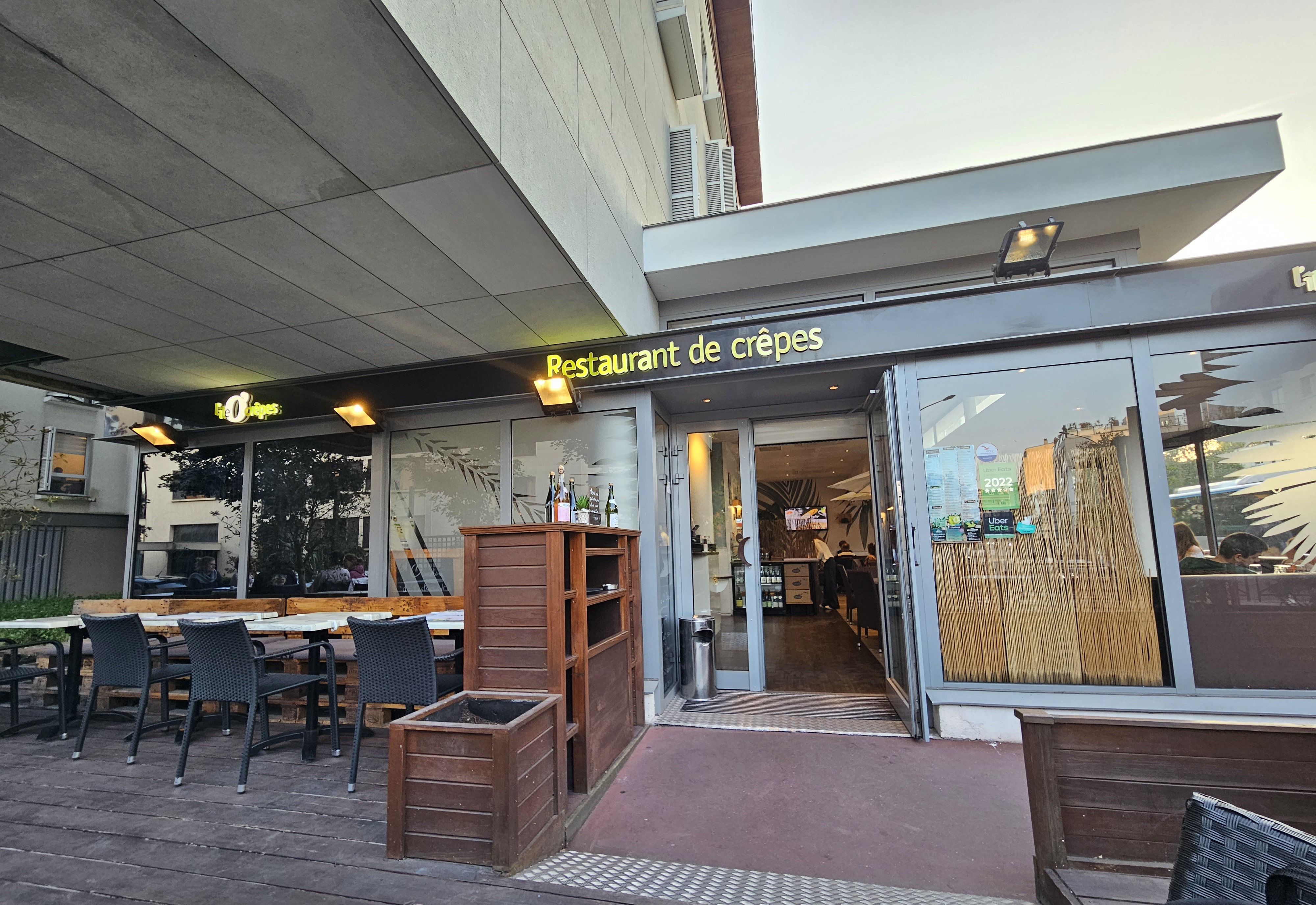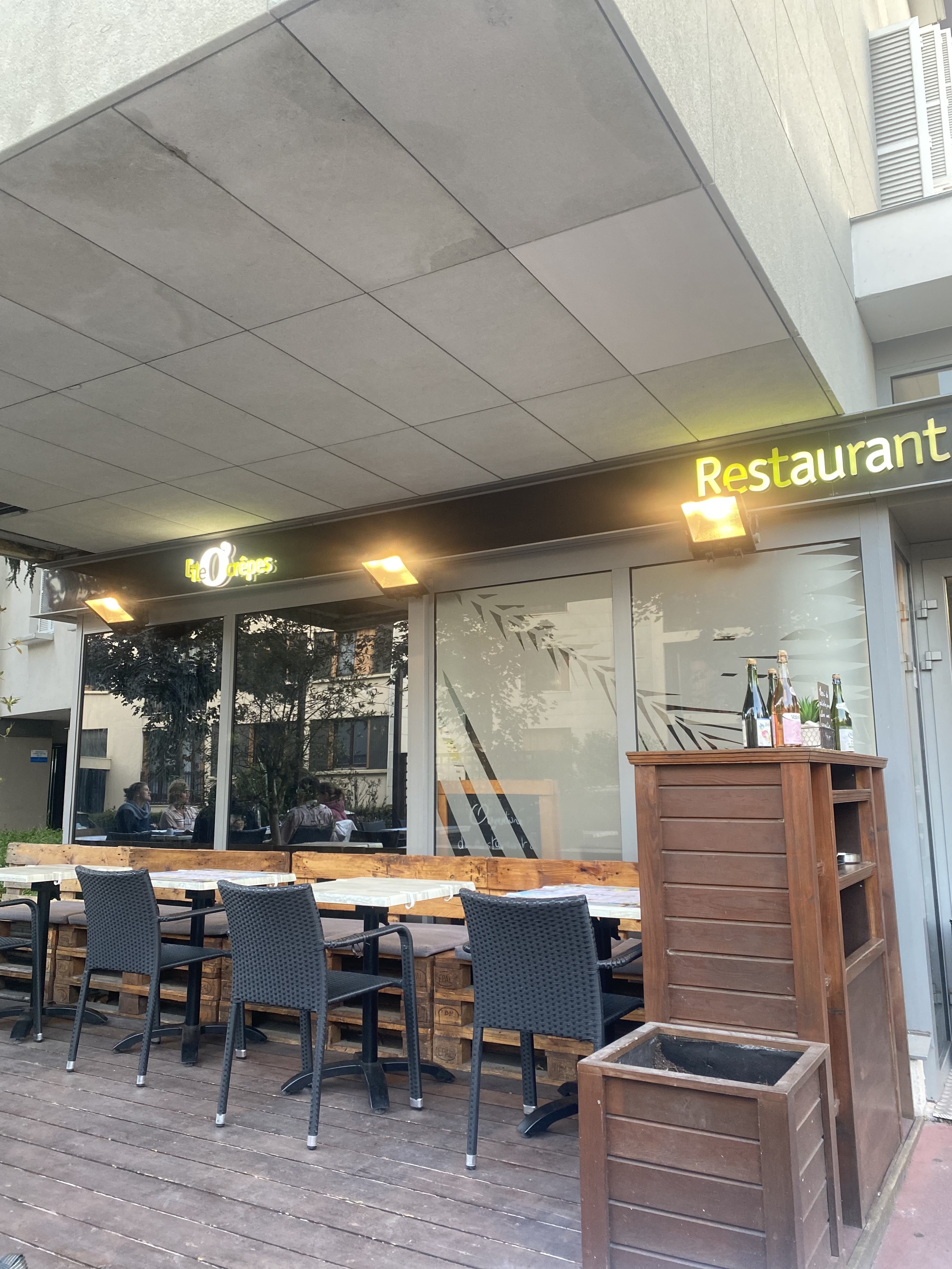 J'ai tout récemment découvert cette nouvelle crêperie située entre Sceaux et Robinson. Le concept est innovant car situé dans un bâtiment totalement écodéveloppement. Le cadre est moderne, design, et les couleurs plutôt modernes. Possibilité de manger en terrasse. Il s'agit du dernier né, le 7eme restaurant de l'enseigne. Pour ma part, je n'ai pas vraiment eu de chance pour mon premier passage dans le sens ou j'ai commandé une crêpe Bali (Mozzarella, tomates fraîches, jambon, olives noires, marinade de basilic - 8, 95€) et j'ai dû me contenter d'une crêpe, sans tomates, ni basilic, ni olives, ni jambon... Enfin rien avoir avec ma commande ! Cela n'a pas été vraiment mieux pour le dessert. Dommage car la carte est vraiment originale et plus qu'alléchante ! Enfin, étant donné qu'il s'agit du lancement de l'activité il serait peut être de bonne augure d'être compréhensif avec le personnel qui semble avoir encore du mal avec la gestion des commandes et encore plus au vu de l'affluence liée à l'aspect découverte. En revanche, si je peux me permettre, la plus part des ingrédients et notamment les crêpes semblent réchauffés (exemple pour mon caramel beurre salé) et personnellement cela me contrarie vraiment pour ce qui est des qualités gustatives des préparations. En définitive, un cadre agréable, un personnel souriant, une carte originale, des préparations acceptables, soit tous les ingrédients réunis pour vous permettre de décompresser pendant votre pause déjeuner. Spéciale dédicace au gérant des lieux qui est plus que souriant et commercial. Bon courage à toute équipe !