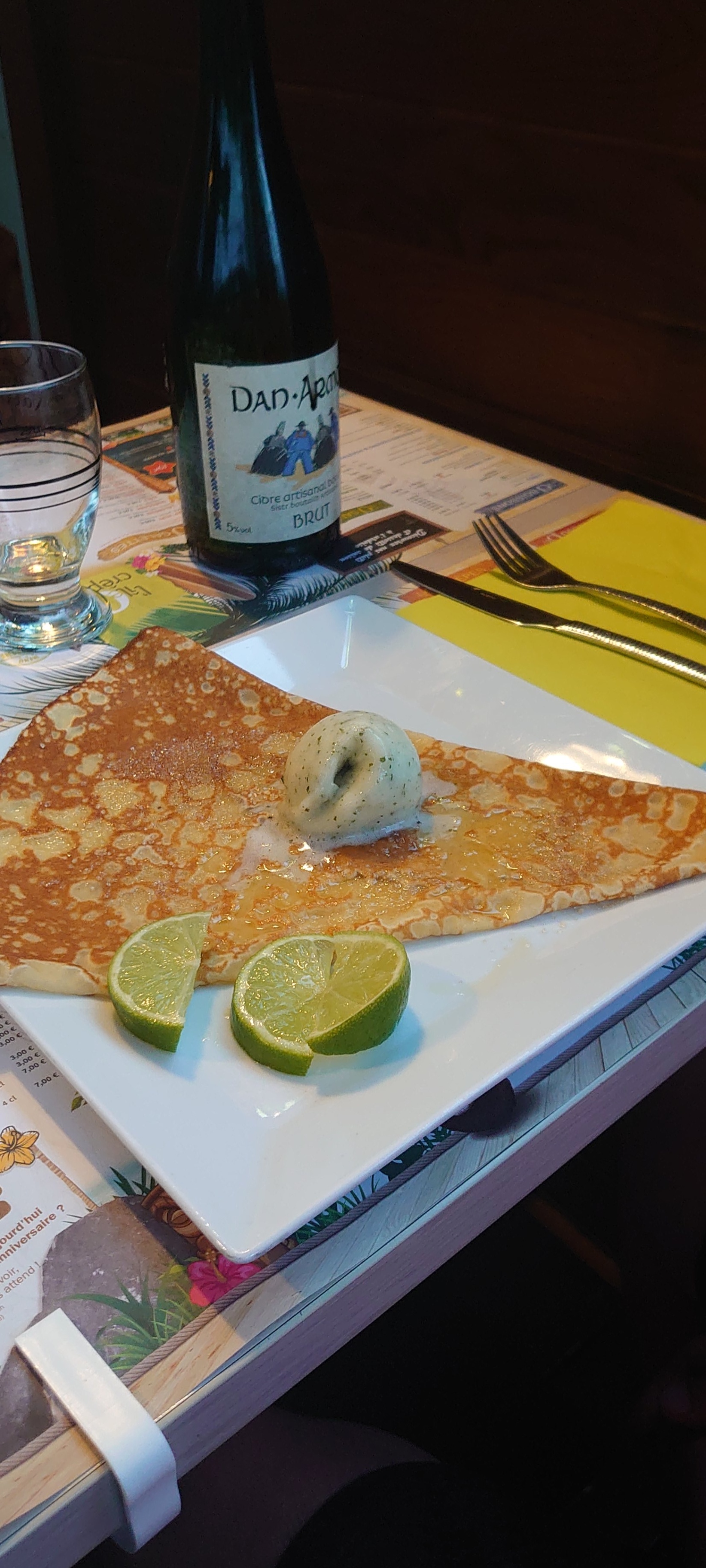 Bon rapport qualité prix même l'eau gazeuse est bretonne , le concept est top surtout pour la formule à 19€ Le seul bémol : je trouve que les crêpes sucrées sont vraiment trop sucrées