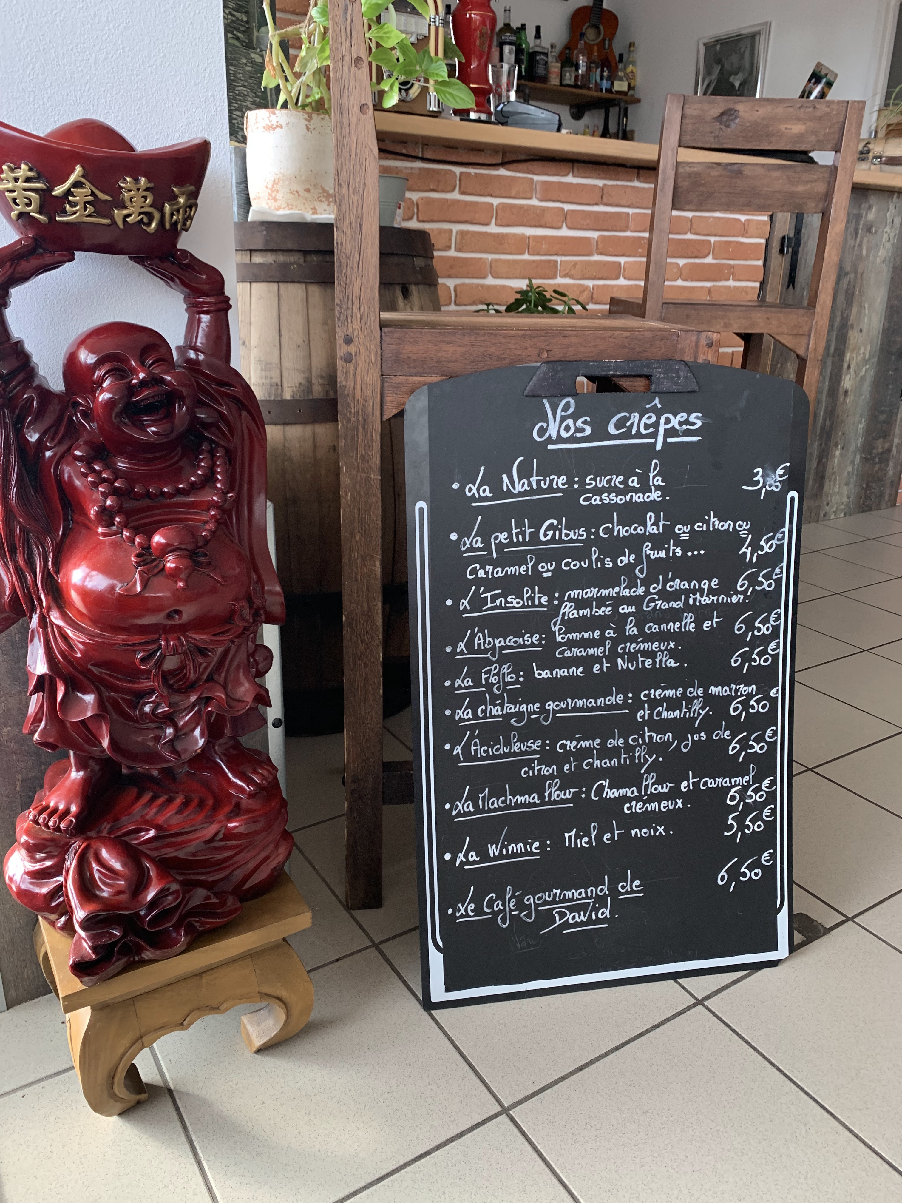 Un endroit bien agréable découvert par hasard et je ne le regrette pas. Tout est sympathique : le service, le lieu, la décoration…insolite, forcément. Les assiettes sont belles, bien garnies et délicieuses. Tout est frais et cela se voit. On y déguste avec plaisir sa crêpe et comble du comble, les tarifs sont plus qu’honnêtes au regard de la qualité irréprochable. En bonus, il y a de la place pour se garer et le lieu est accessible PMR. Vous pouvez y aller les yeux fermés.