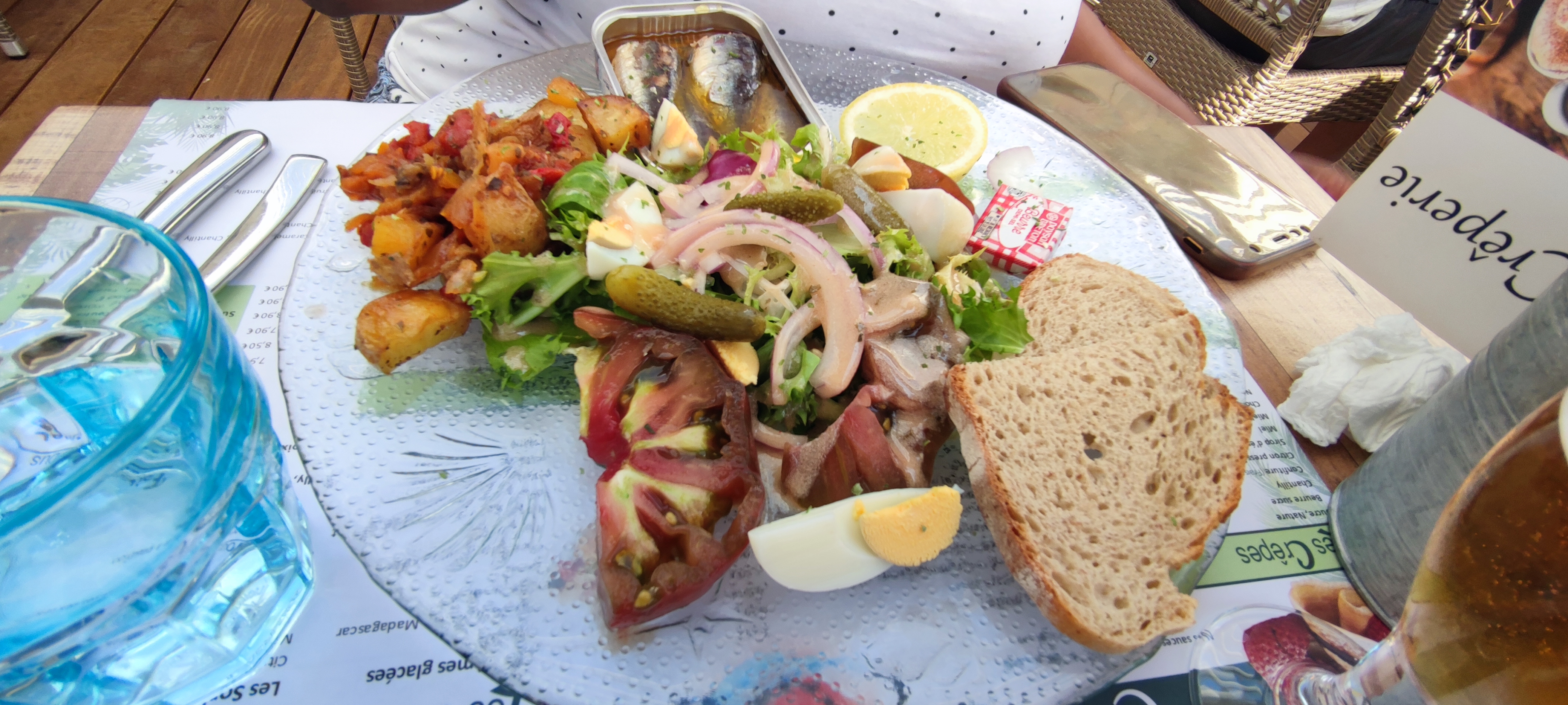 Spécialité assiette de sardines en boîtes un peu limite des sardines grillées fraiche auraient été préférables surtout pour le prix Bon accueil nous reviendrons pour d'autres plats