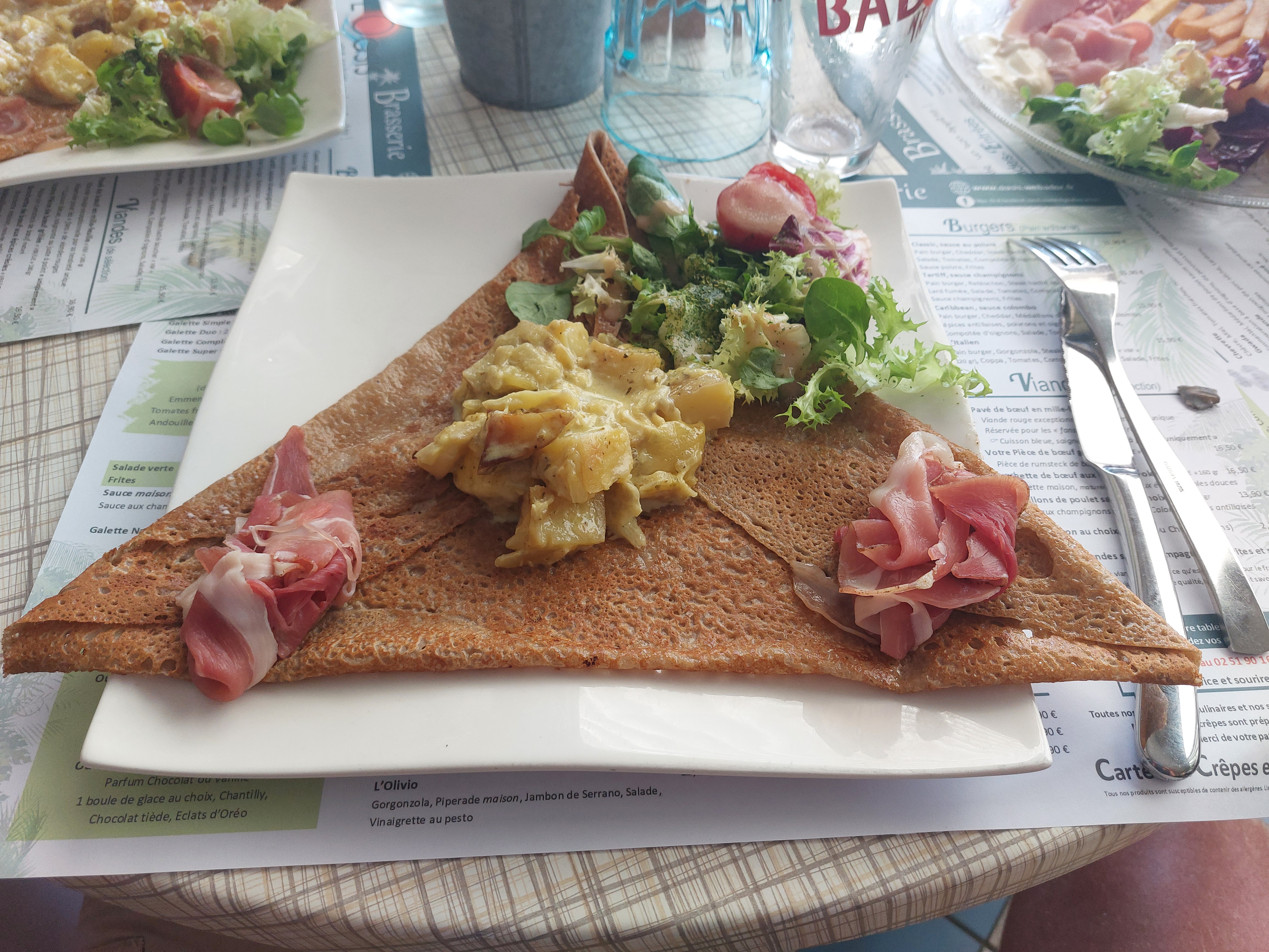 Des galettes très originales pour un prix abordable, de la brasserie, bien pour tout le monde. Convivialité en ce dimanche de mars au soleil sur la terrasse face à la mer. Merci