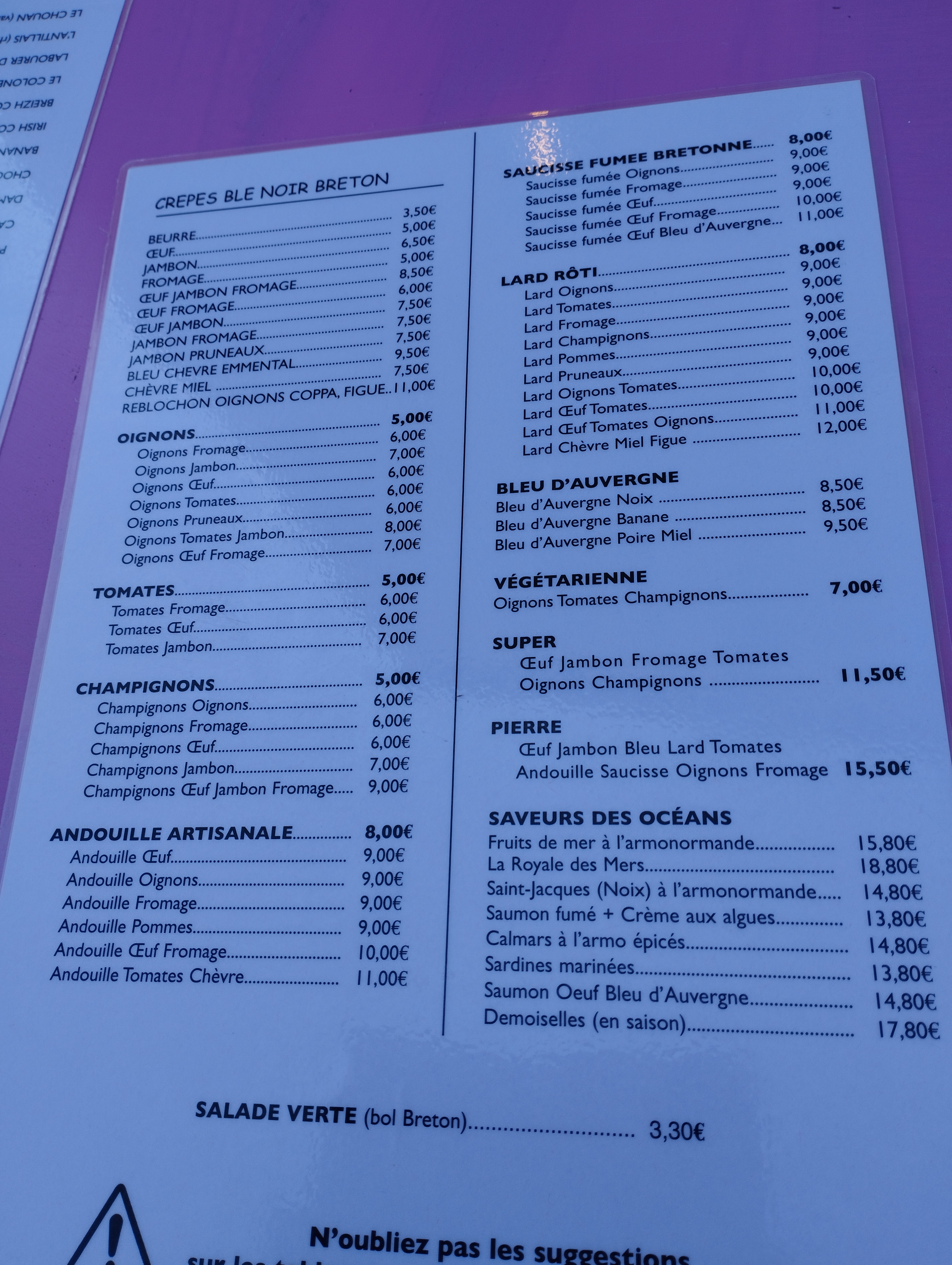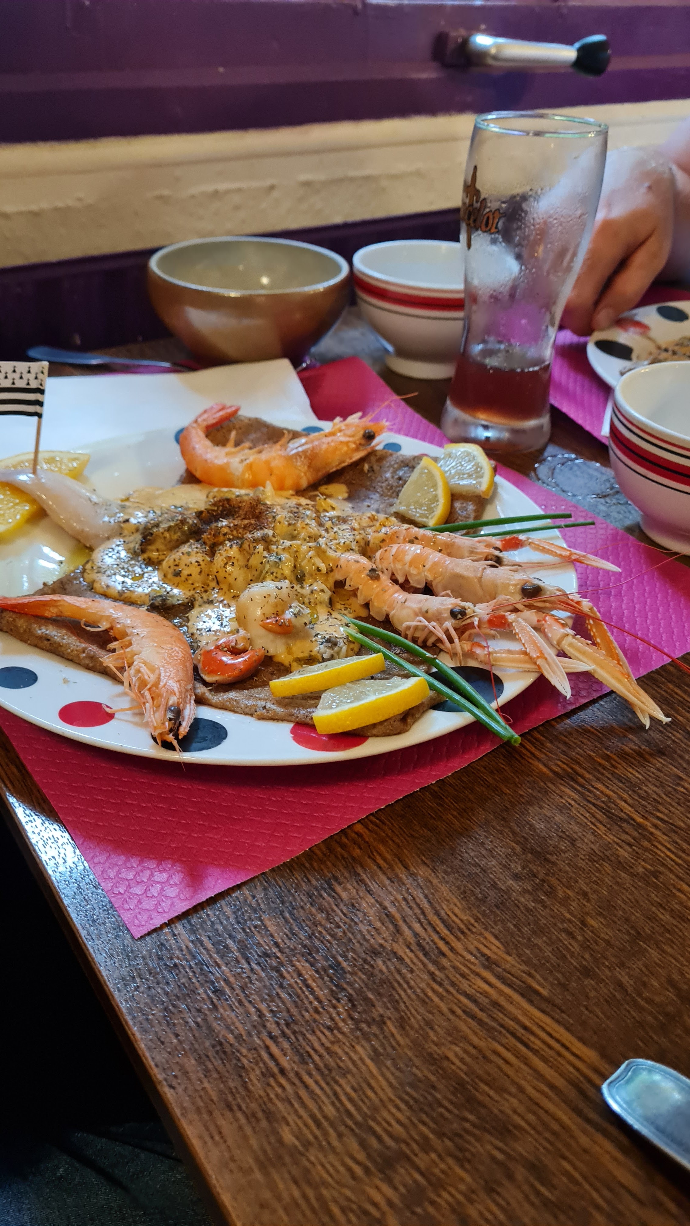 Découverte de la meilleure crêperie parmi toutes celles où nous avons déjeuné en 2 semaines. Originalité des galettes, saveur, déco de la salle de restau et patron hyper sympa. Bravo changez rien
