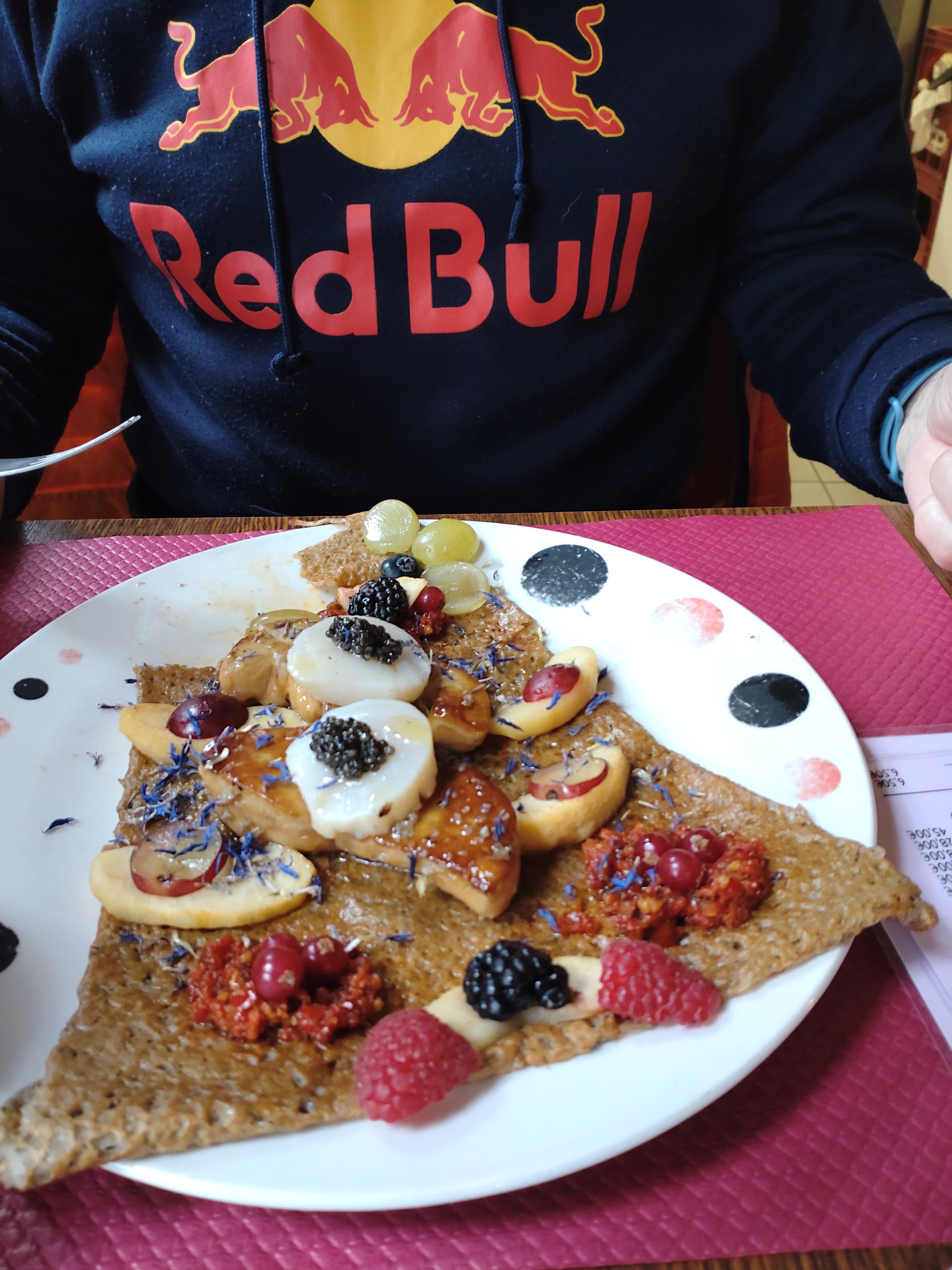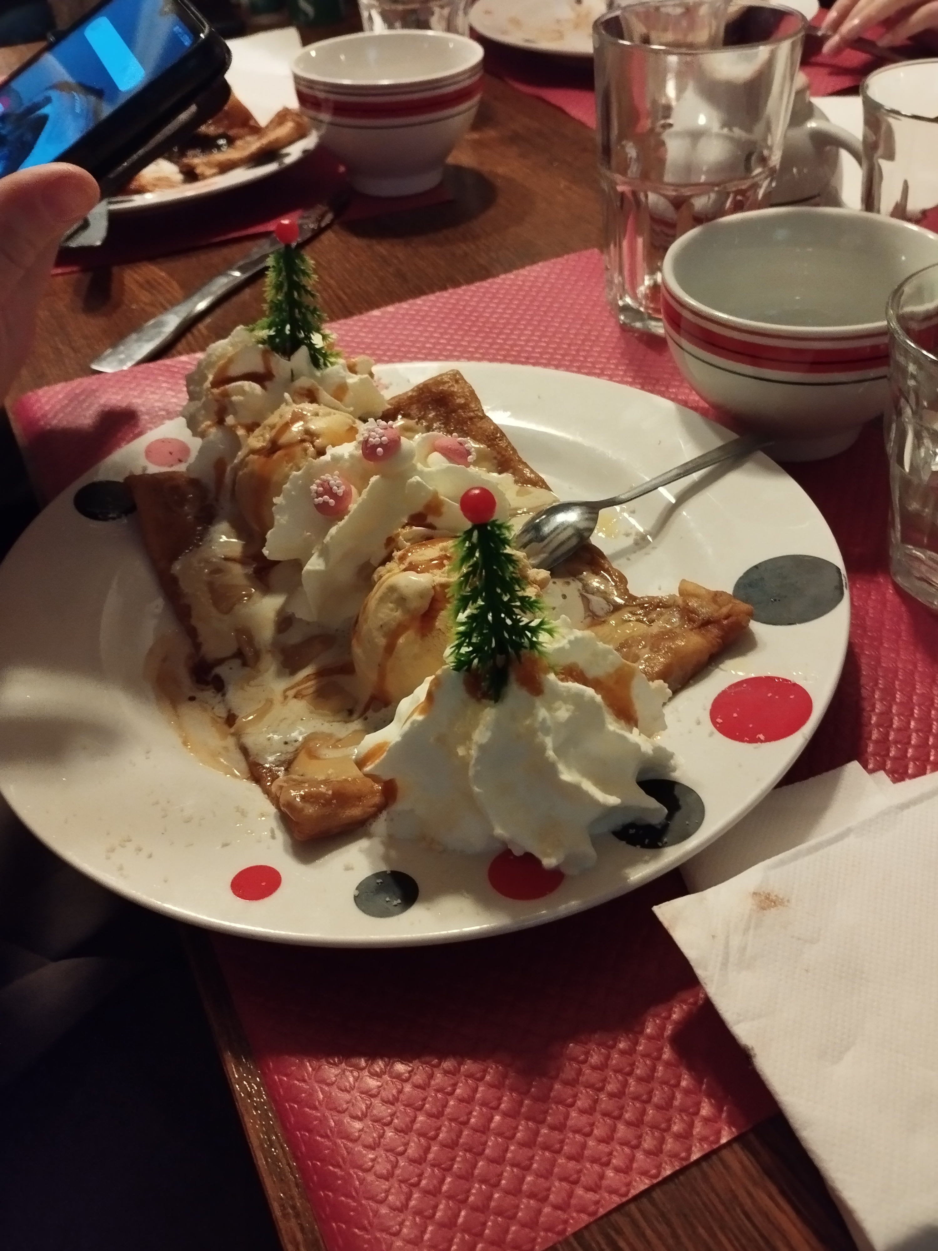 Repas très bon énormément de choix dans les crêpes qu'elles soient sallées ou sucrées ce qui est un bon point. Serveurs enthousiastes ce qui fait plaisir Je recommande fortement