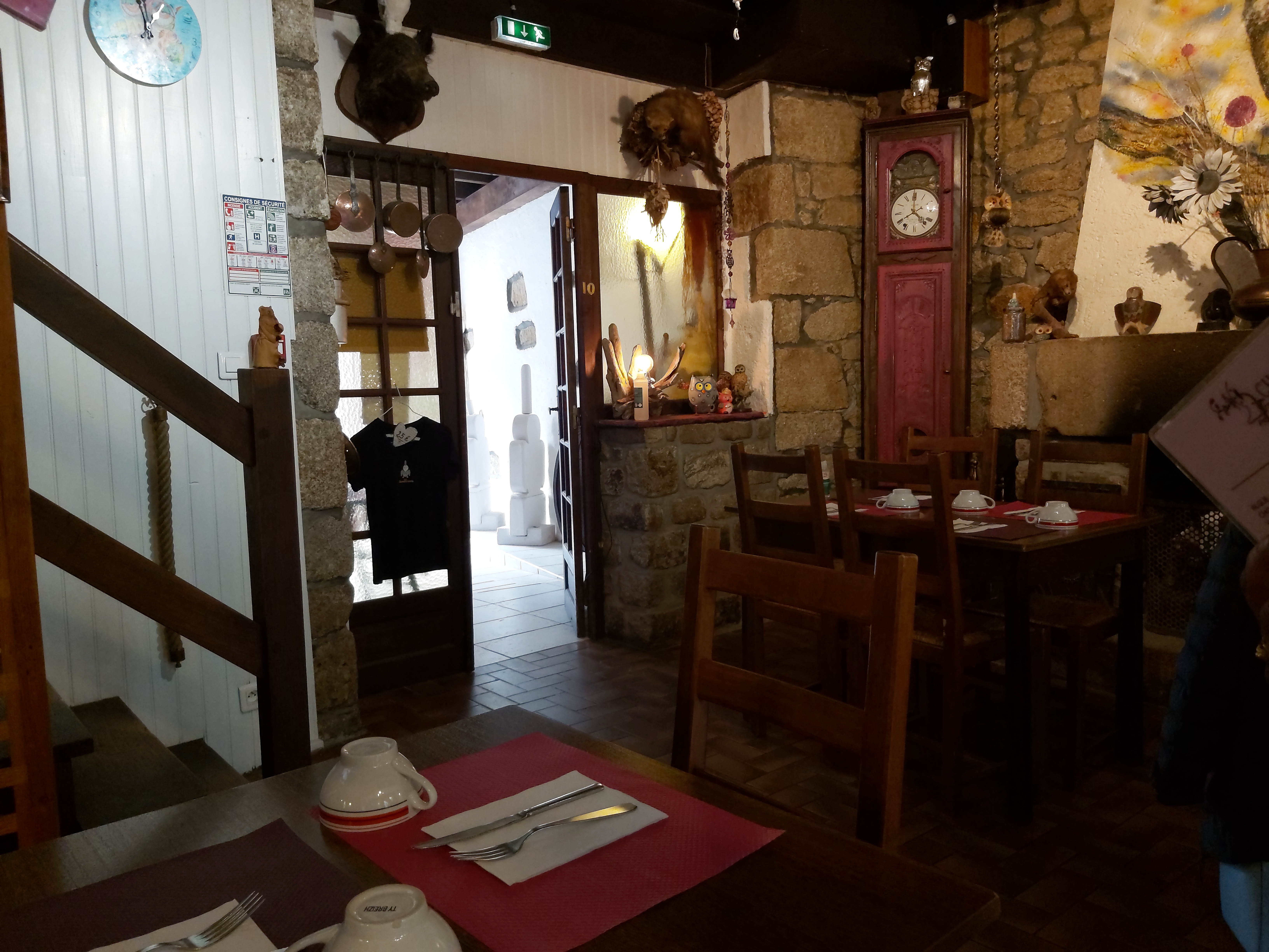 La devanture en pierre apparente et sa décoration attire l'oeil La décoration est bien belle à l'intérieur, avec notamment un dessin de Loctudy et de son phare qui allume une lumière de l'étage De jolis animaux empaillés, et une cheminée en bas qui réchauffe la pièce, avec un très joli hibou en bois sculpté Donc travail particulier sur l'ambiance Les crêpes sont correctes, pratique pour se nourrir en arrivant dans le coin, elle était ouverte le mercredi soir à notre arrivée, on a pu prendre une table de 4 le soir pour 21h Il y avait quelques options de crêpes végétariennes Bonne garniture et petite déco pour les crêpes desserts On a été bien acueilli et bien servit, personnel agréable Bien placée, dans le centre du village, à côté de l'Eglise