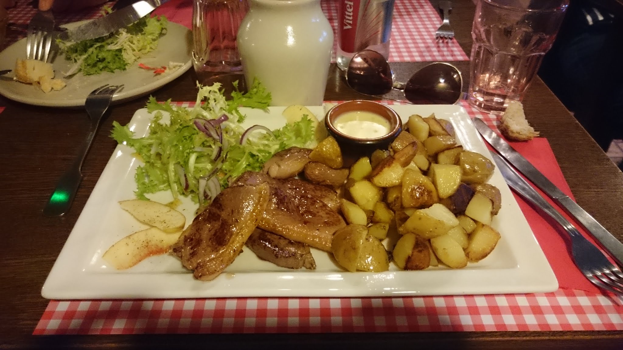 Un peu déçue par la galette byen de t'cheu nous peu copieuse et dont le mélange de fromages a un goût proche de la fondue savoyarde industrielle. Pomme cuite froide. Je ne me suis pas franchement régalée...par contre l'assiette de charcuterie a été appréciée par mon conjoint.