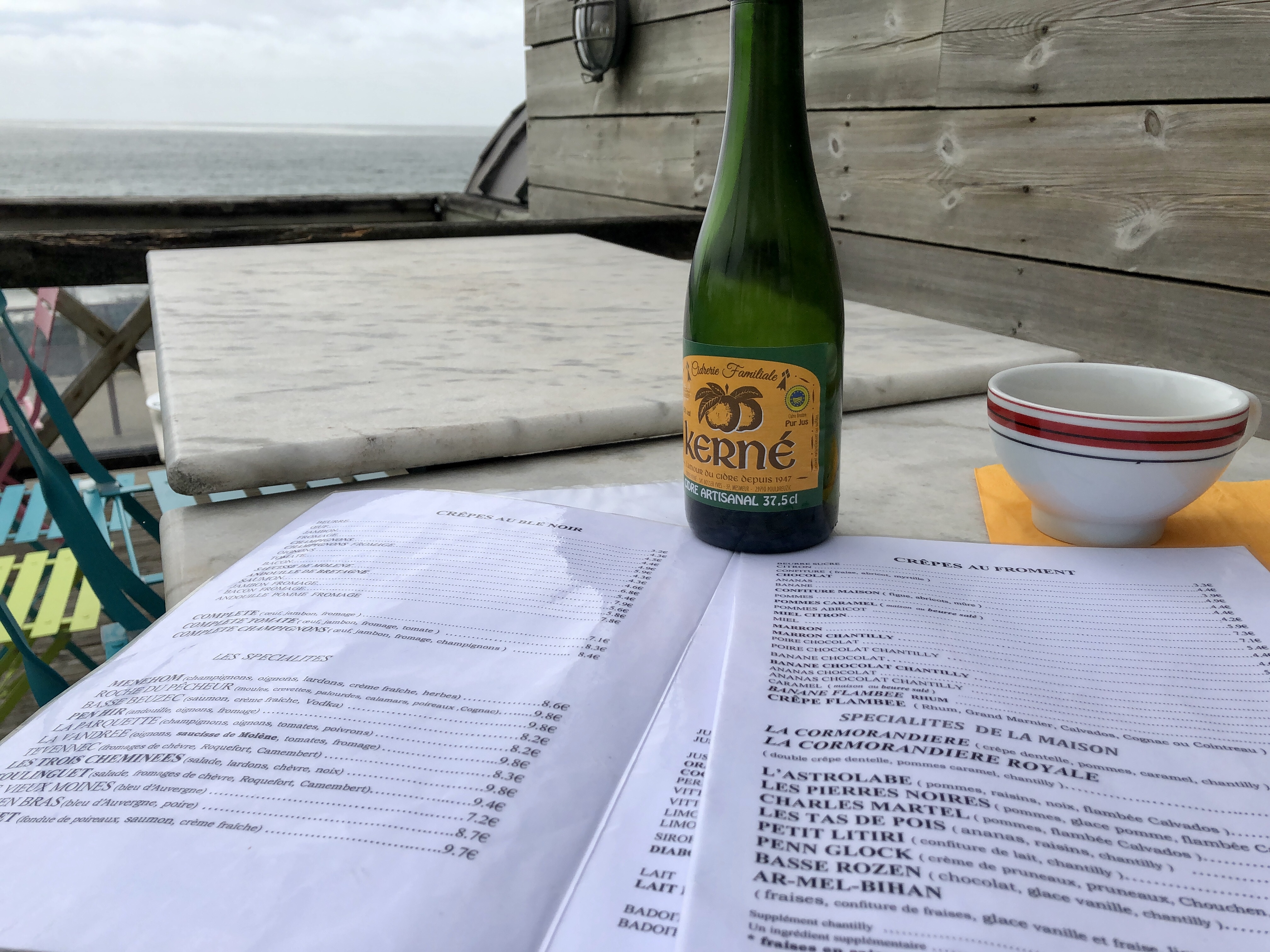 Décor très sympa et typiquement breton, vue imprenable sur la mer mais crêpes très moyennes surtout celle aux fruits de mer , la garniture était une sorte de bouillie aux poireaux , crêpe à la crème de marron sans crème, bref y aller juste pour l'emplacement et c'est tout