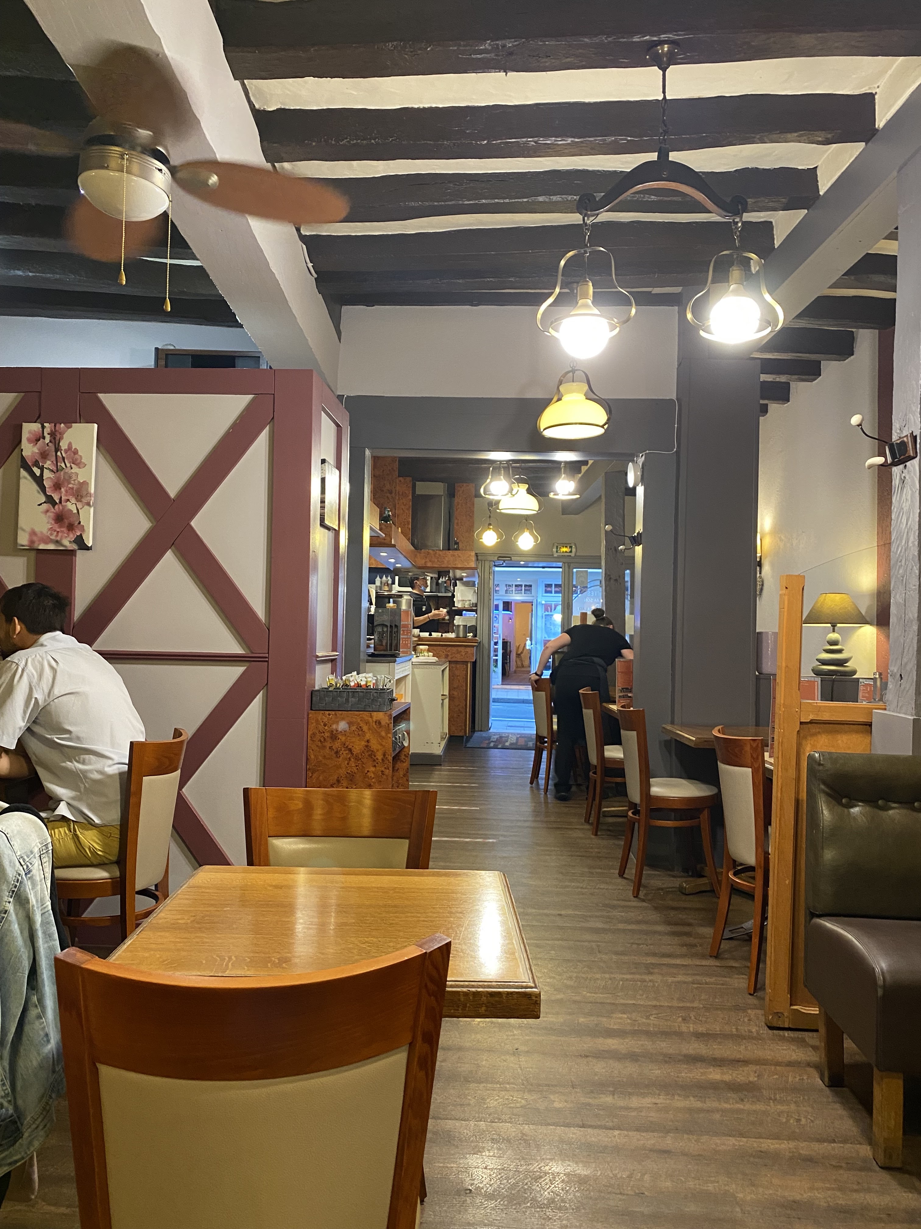 Good restaurant :) Bonne adresse pour le quotidien, J’ai bien aimé le charme du restaurant ! On a pris la Saint-Jacques avec des poireaux & pour le dessert : une crêpe chocolat/banane et une crêpe caramel beurre salé et sel de guérande Un tout petit peu cher à notre goût (rapport qualité prix)