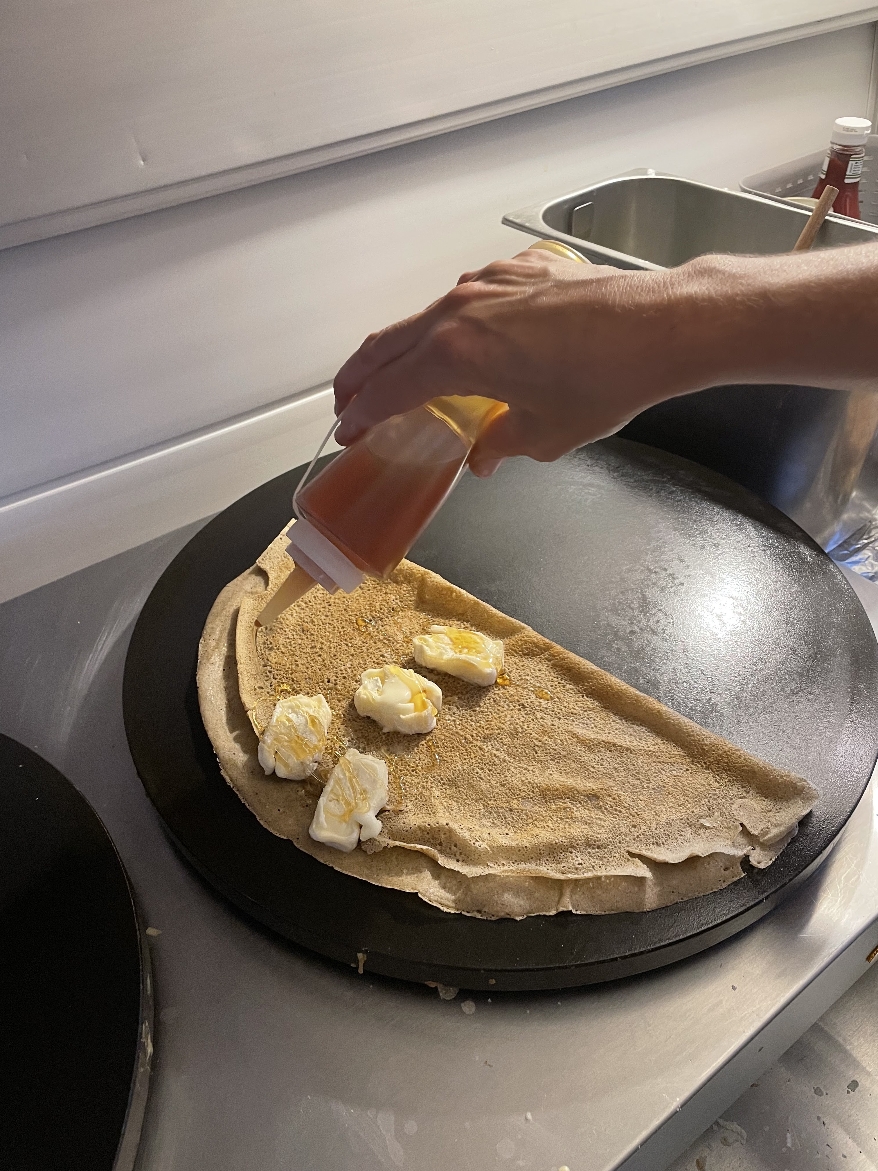 Le seul endroit où on peut déjeuner passé une certaine heure. Délicieuses crêpes préparées avec le sourire.