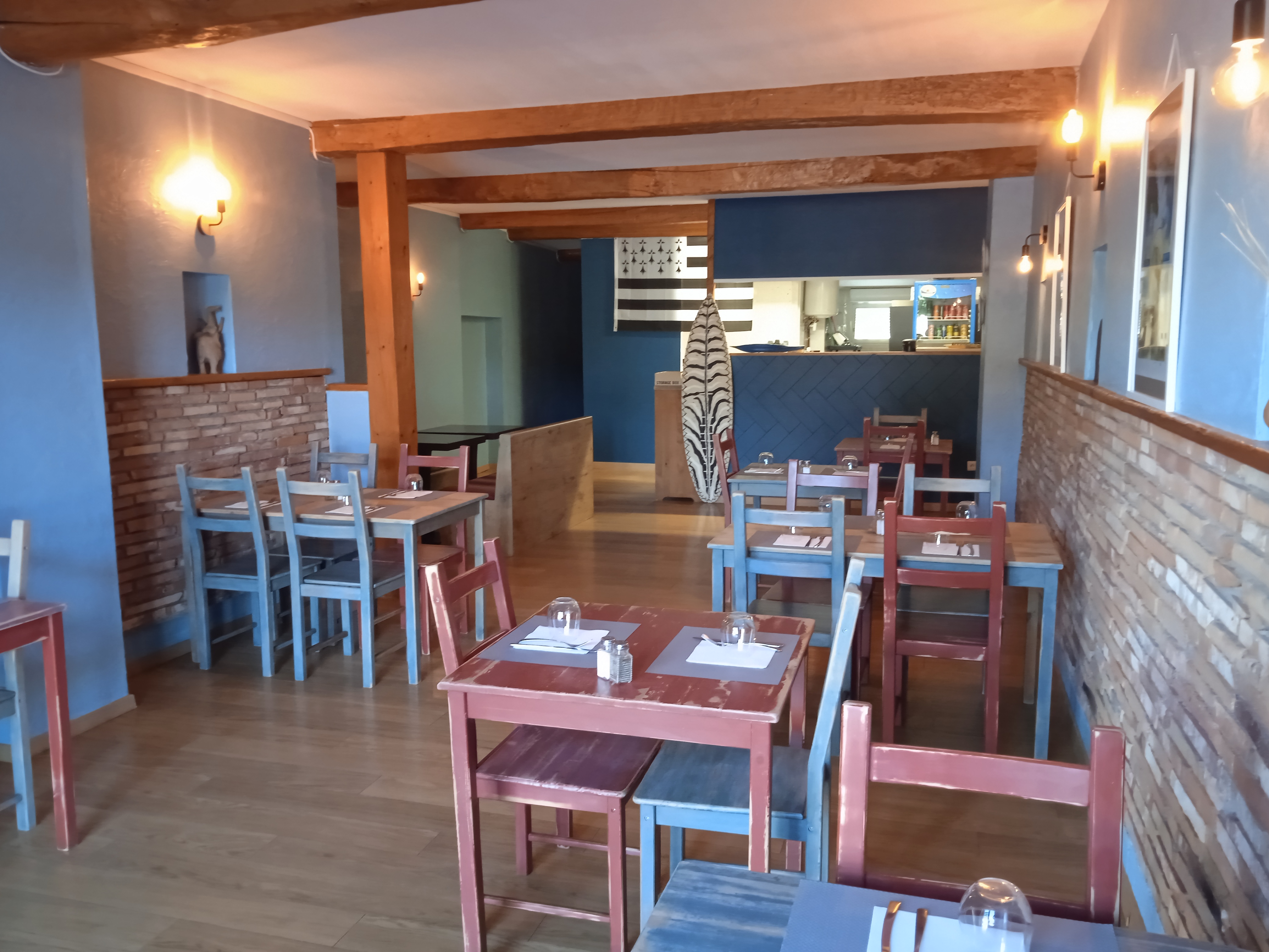 Déco simple et efficace. Prenez le temps de vous arrêter et de déguster de succulentes galettes,et si le service leur en laisse le temps vous terminerez cet agréable moment en discutant avec les patrons. Très sympa. Merci pour ce moment.