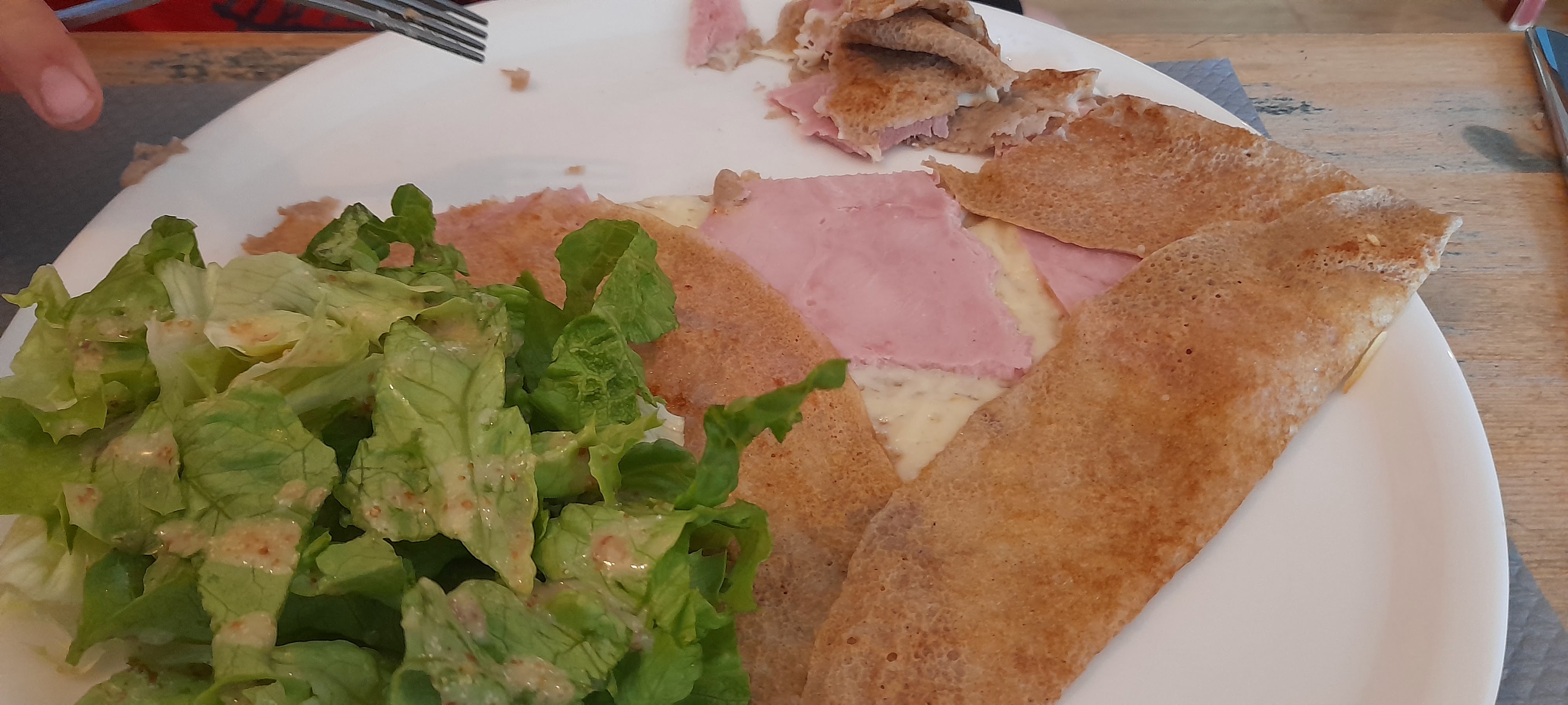 Galettes légères pas grasse bien garni et surtout délicieuses ainsi que les crêpes et très bon accueil chaleureux et le sourire