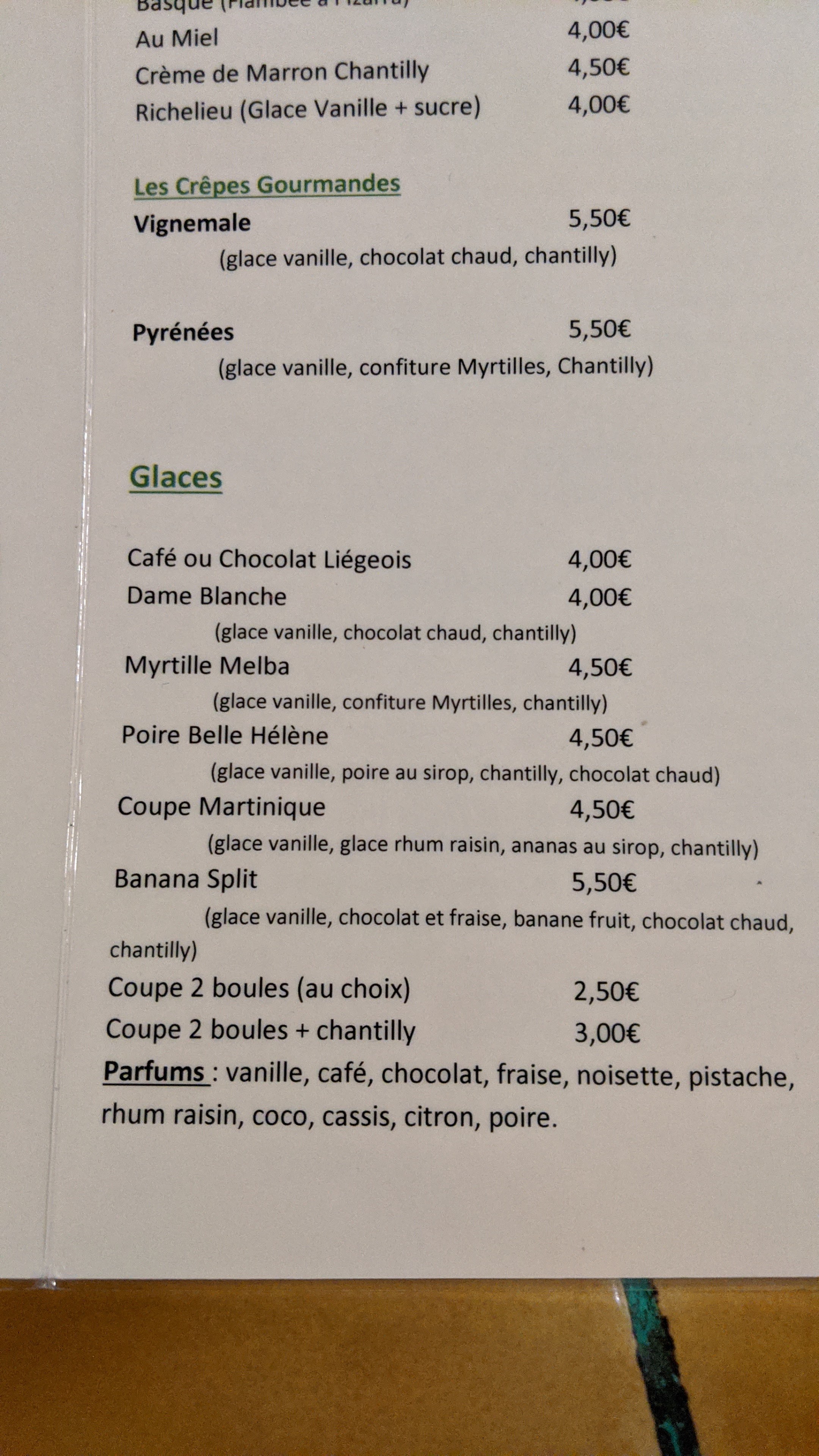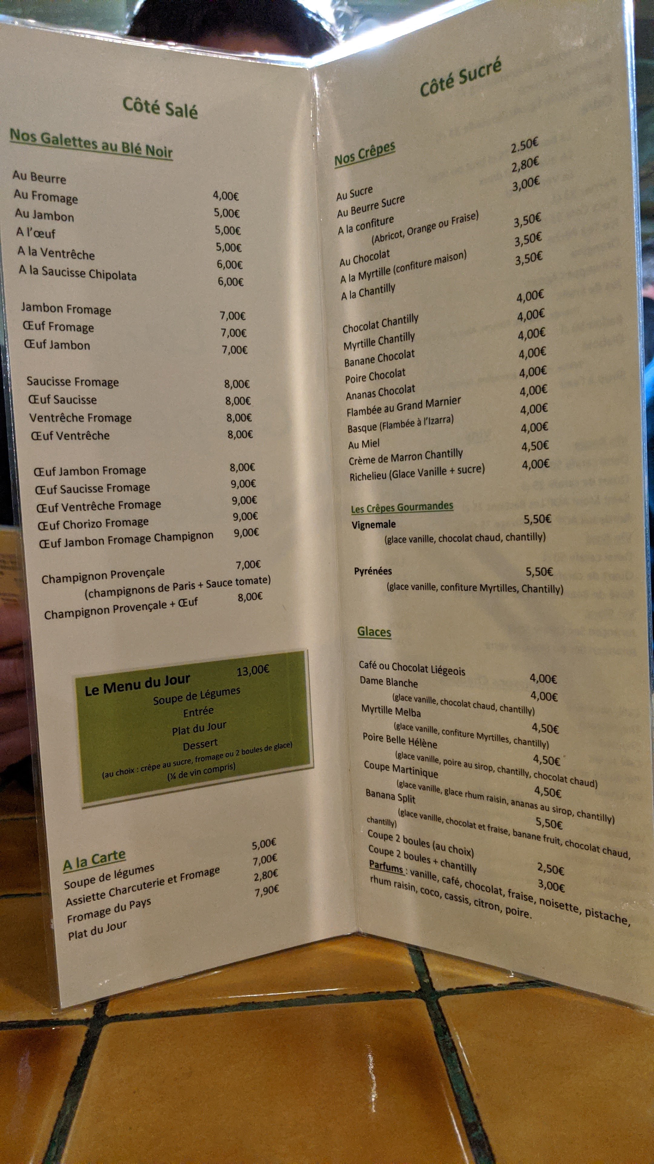 Une véritable pépite ! Garbure en quantité, crêpes au prix très abordables et accueil chaleureux. Coup de cœur pour la crêpe aux myrtilles avec chantilly maison.