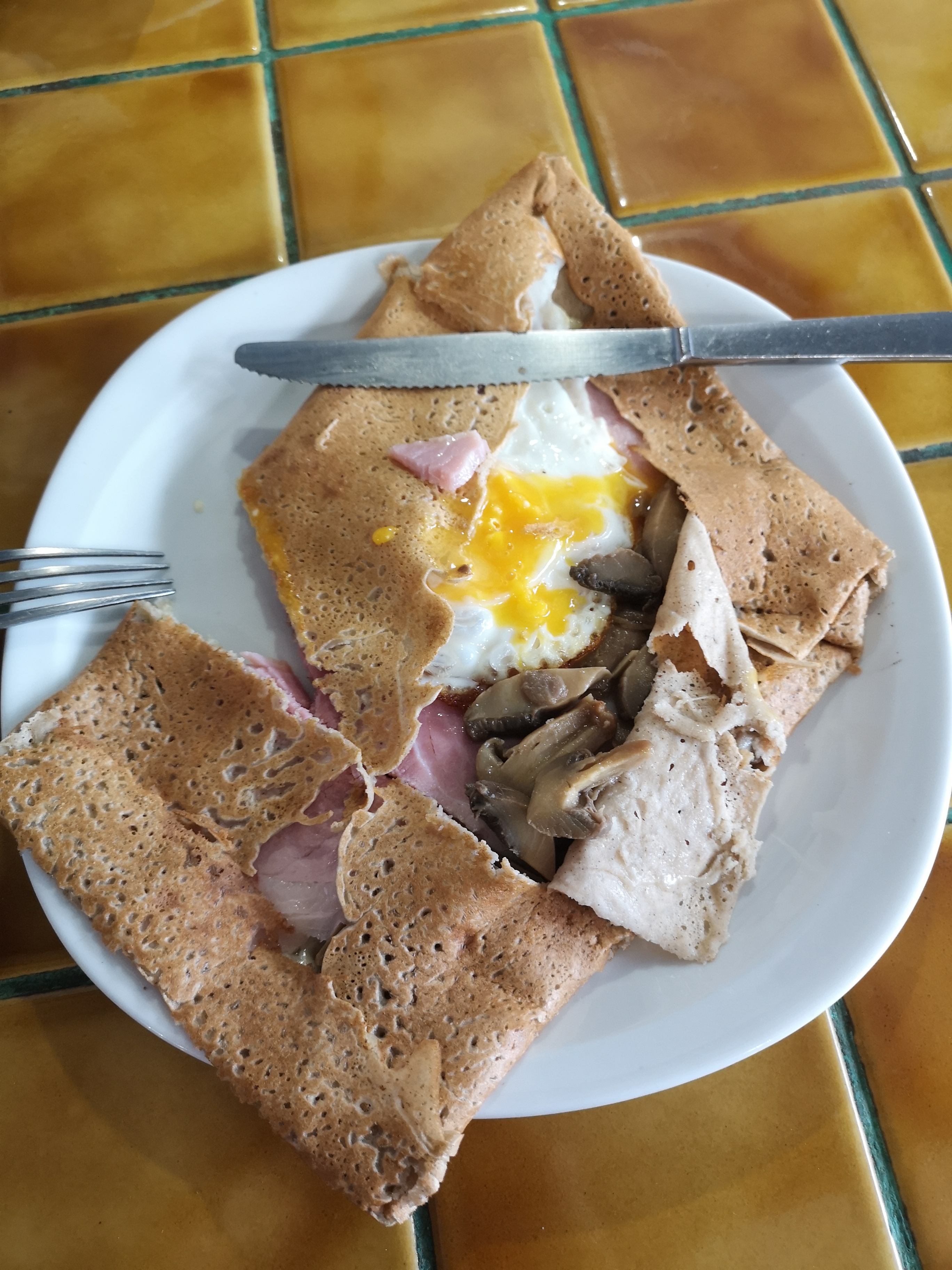 Je dois dire que j'ai assez bien mangé. La galette est simple et bonne. Par contre la pâte de la galette n'est pas parfaite mais quand même bonne. Rapport qualité prix très bon. Mesures COVID respectées. Je recommande si vous avez faim mais pas forcément pour vous régaler. Pour ça faut aller en Bretagne.