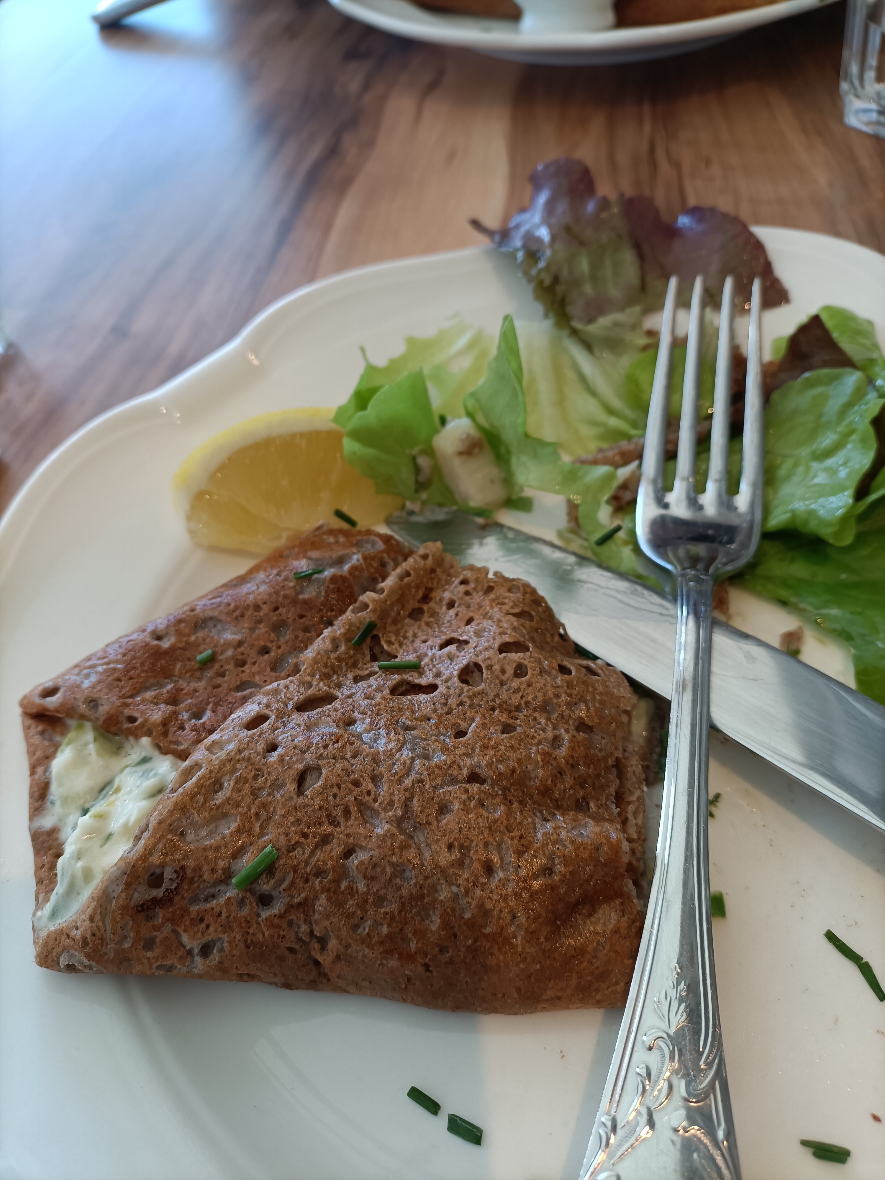 Superbe ambiance! Accueil chaleureux. J'ai pris une crêpe au saumon, excellent ❤️ J'y retournerai avec plaisir la prochaine fois que je suis dans le coin ! 🥰