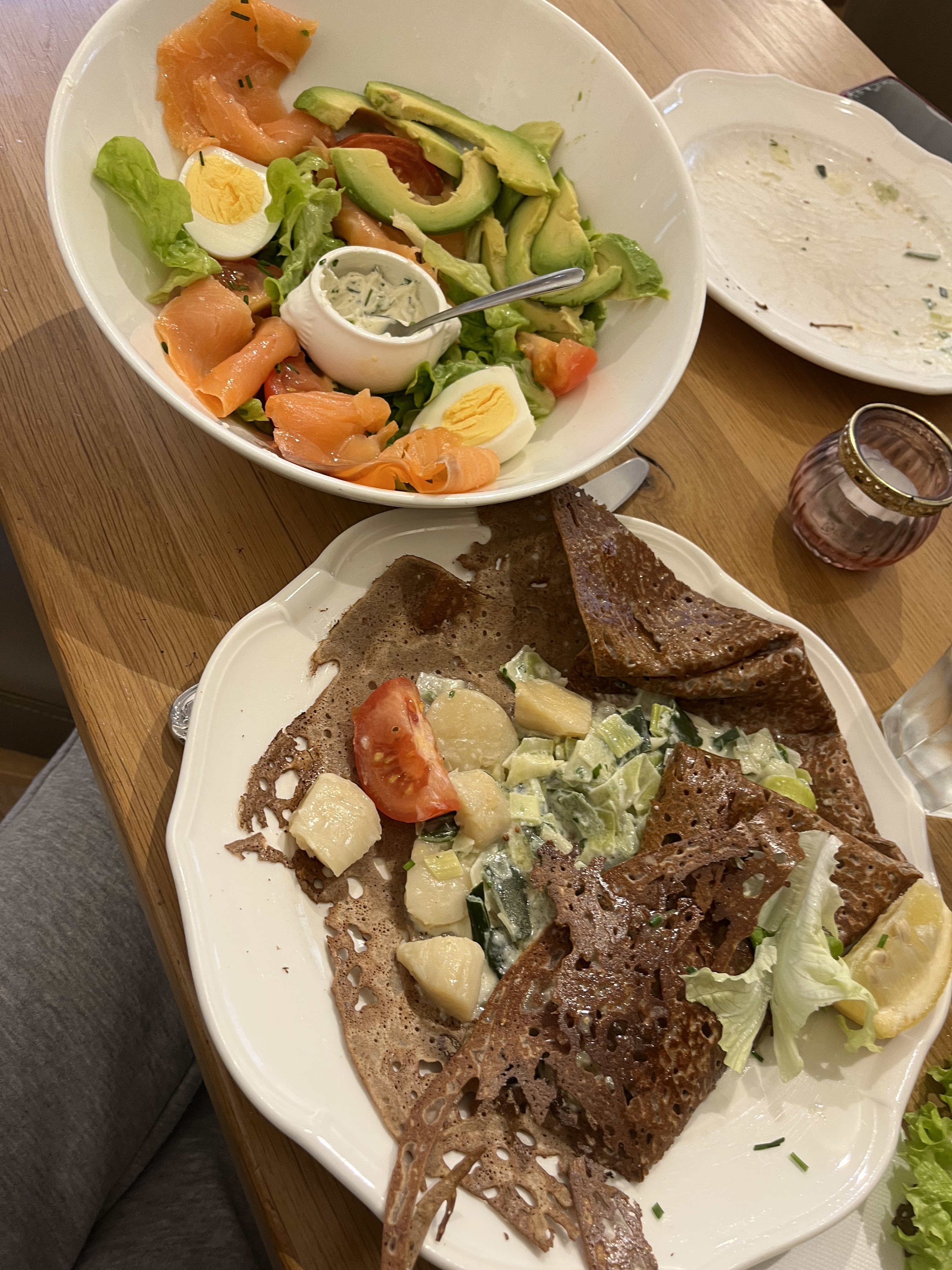 En road trip en Bretagne, notre stop à Roscoff nous fait vagabonder jusqu’ici. La meilleure crêpe salée (« La marmotte ») que j’ai pu manger en Bretagne pour le moment ! La personne avec moi s’est régalée aussi avec « La Fermière ». C’était aussi l’avis de nos voisins de table que je cite faire des compliments à la serveuse « Je suis une grande amatrice de crêpes et je peux vous dire qu’elles sont vraiment bonnes ». Servies rapidement, un staff simple et souriant, ça fait toujours plaisir. Je recommande chaudement