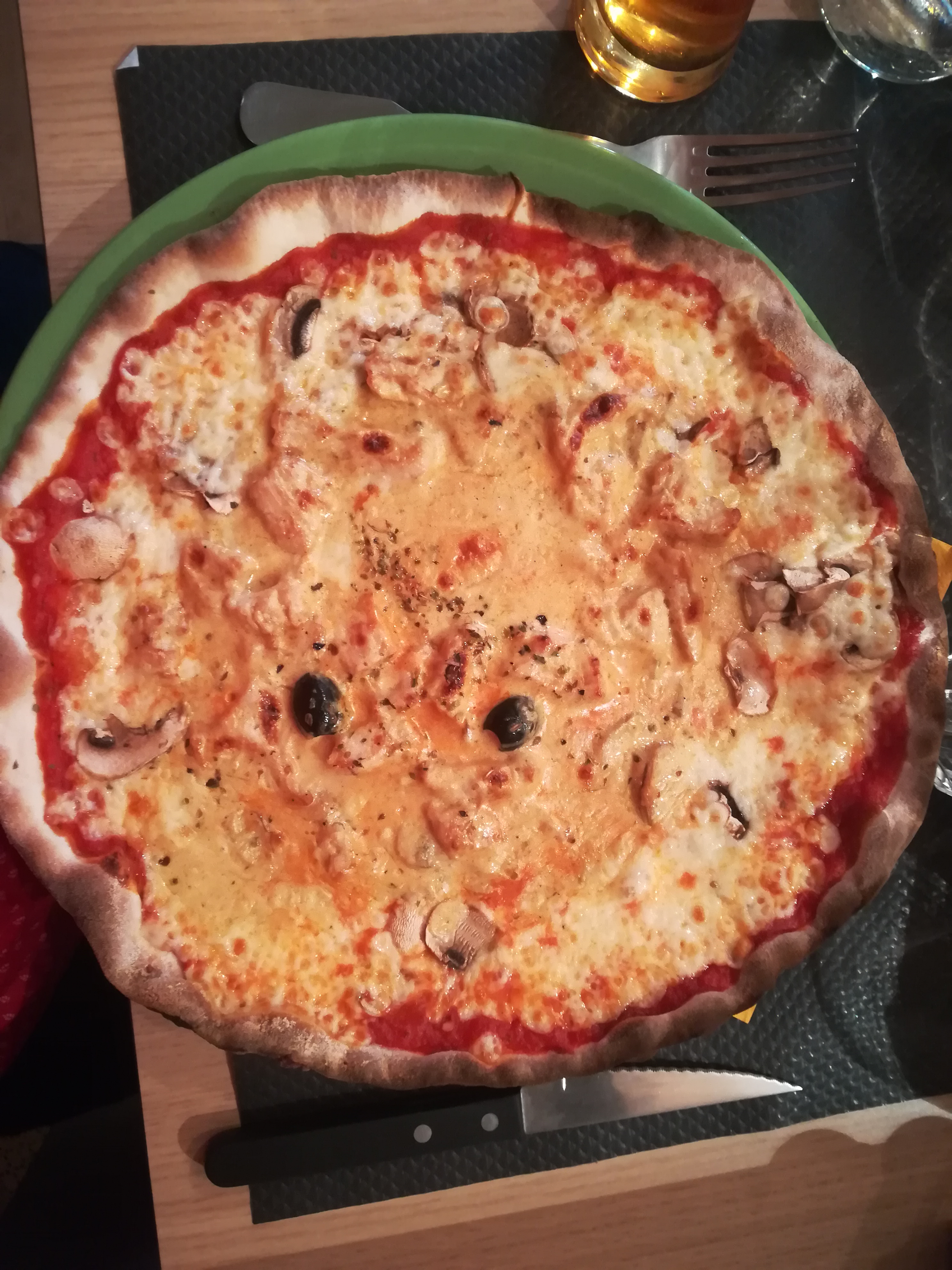 Pizzas délicieuses à pâte fine ....un régal ! Lieu très sympa et personnel très agréable.