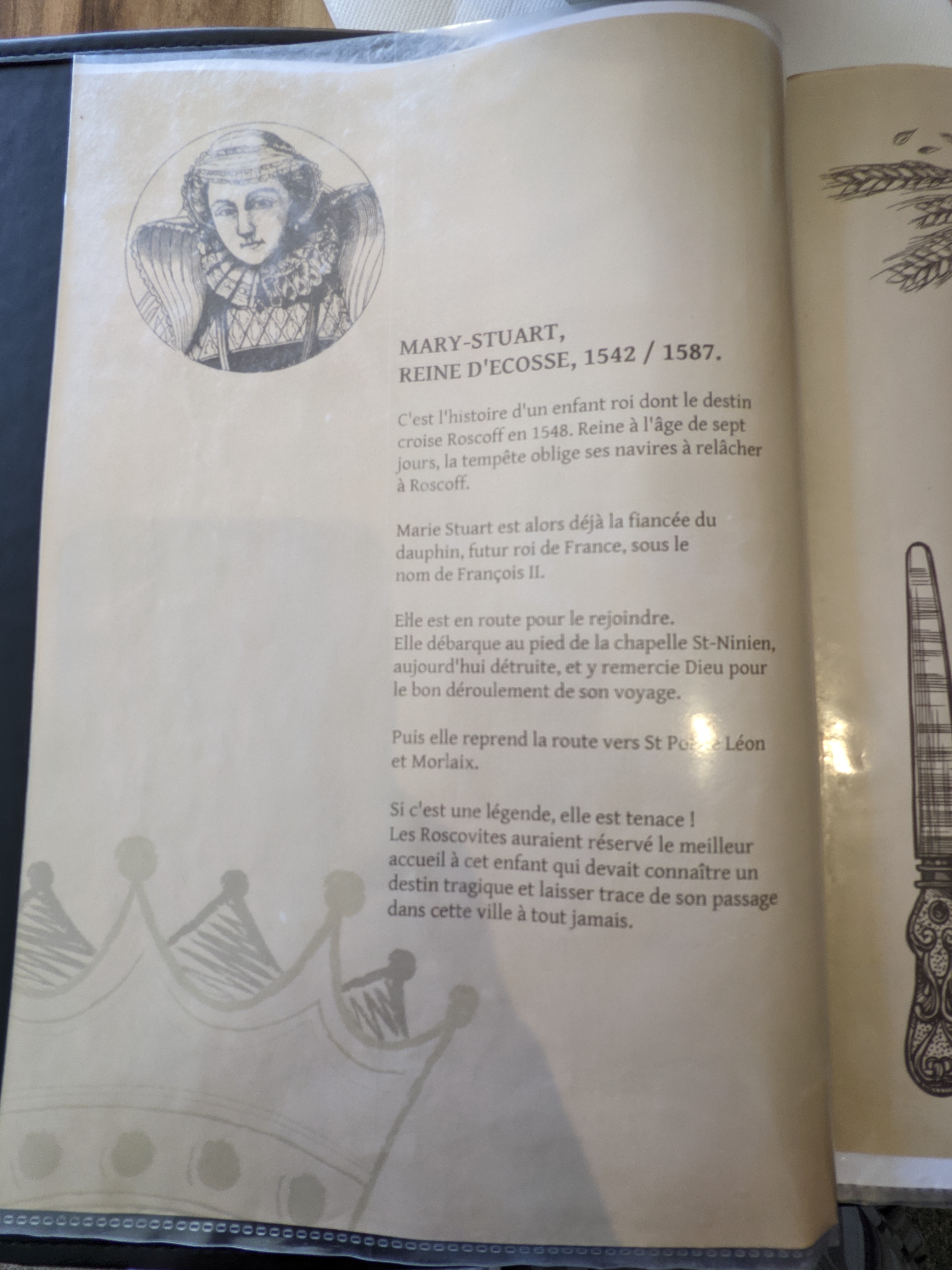 Cuisine au top, crêpes délicieuses, services impeccable souriant, service rapide .Prix parfait . Penser à réserver car très pris. Pas d'arrêt a Roscoff sans aller à la crêperie Marie Stuart.👏
