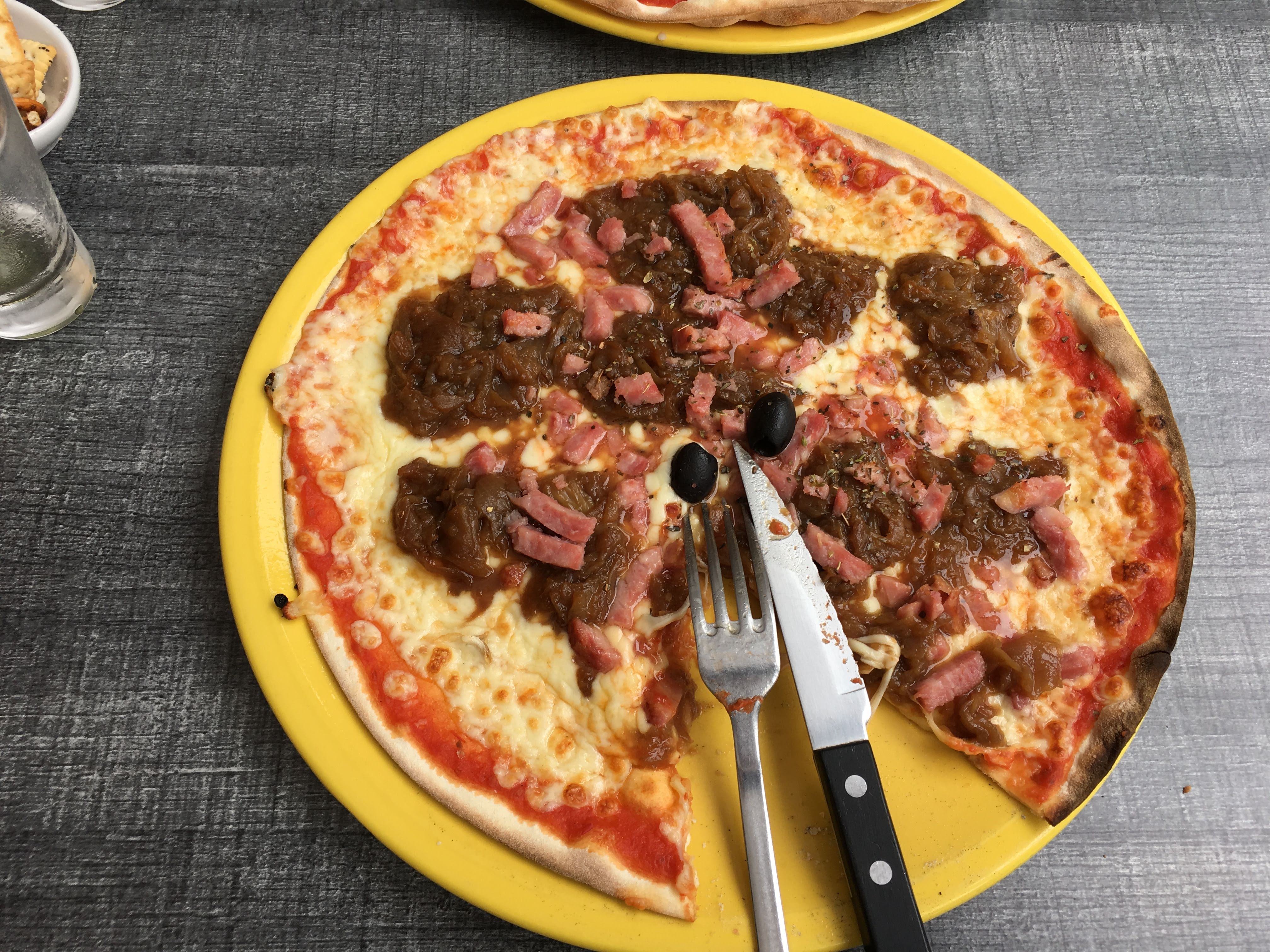 Pizza fine plutôt bien réussie. Délicieuse omelettes.