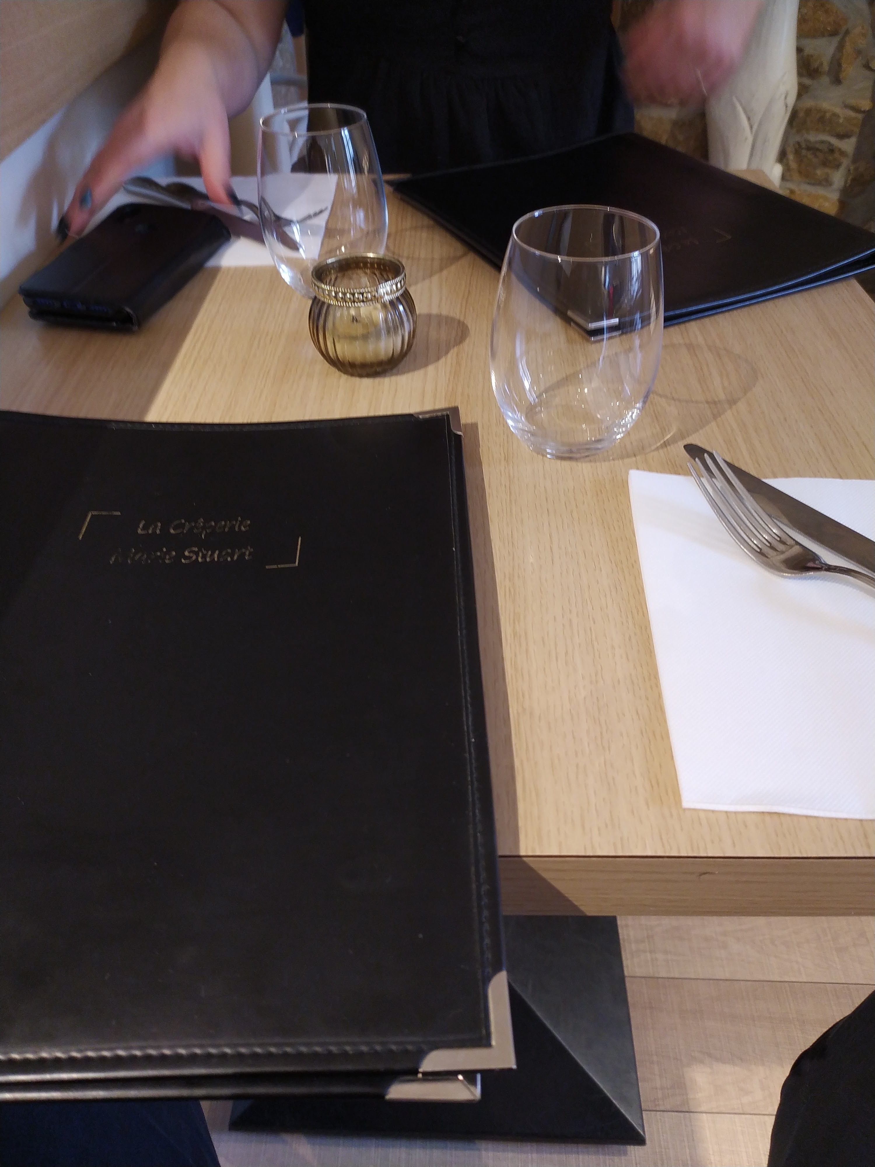Crêpes au blé noir absolument succulentes ! Service irréprochable, un régal. Allez y sans hésiter 47€ pour deux, deux galettes chacun et une bouteille de cidre bio succulent