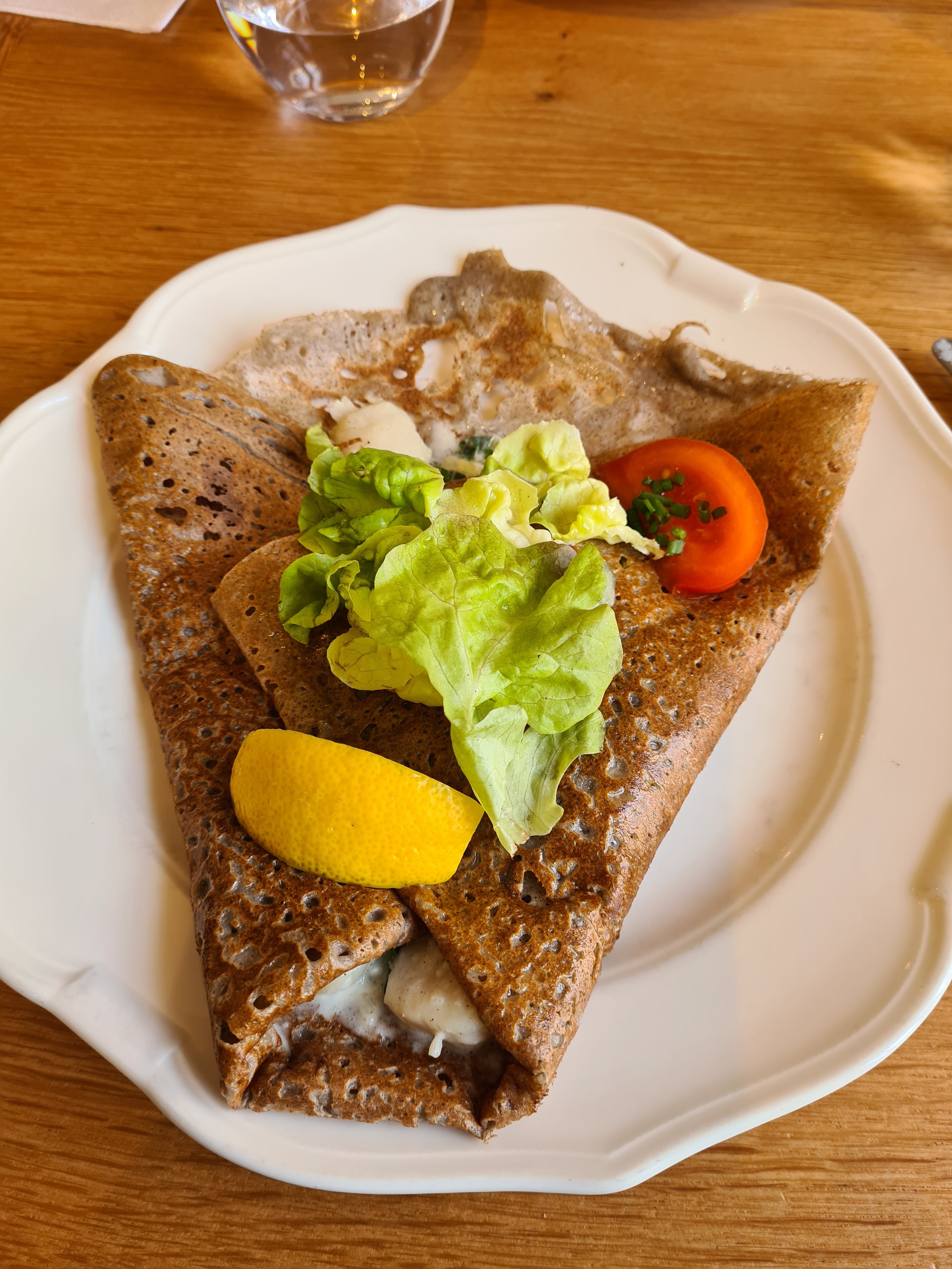 Ayant essuyé plusieurs refus sur les restaurants avec vue sur le port qui demandaient une réservation nous avons découvert par hasard cette crêperie. Bonne surprise, les crêpes sont très bonnes et l’addition peu salée. Service sérieux en prime !
