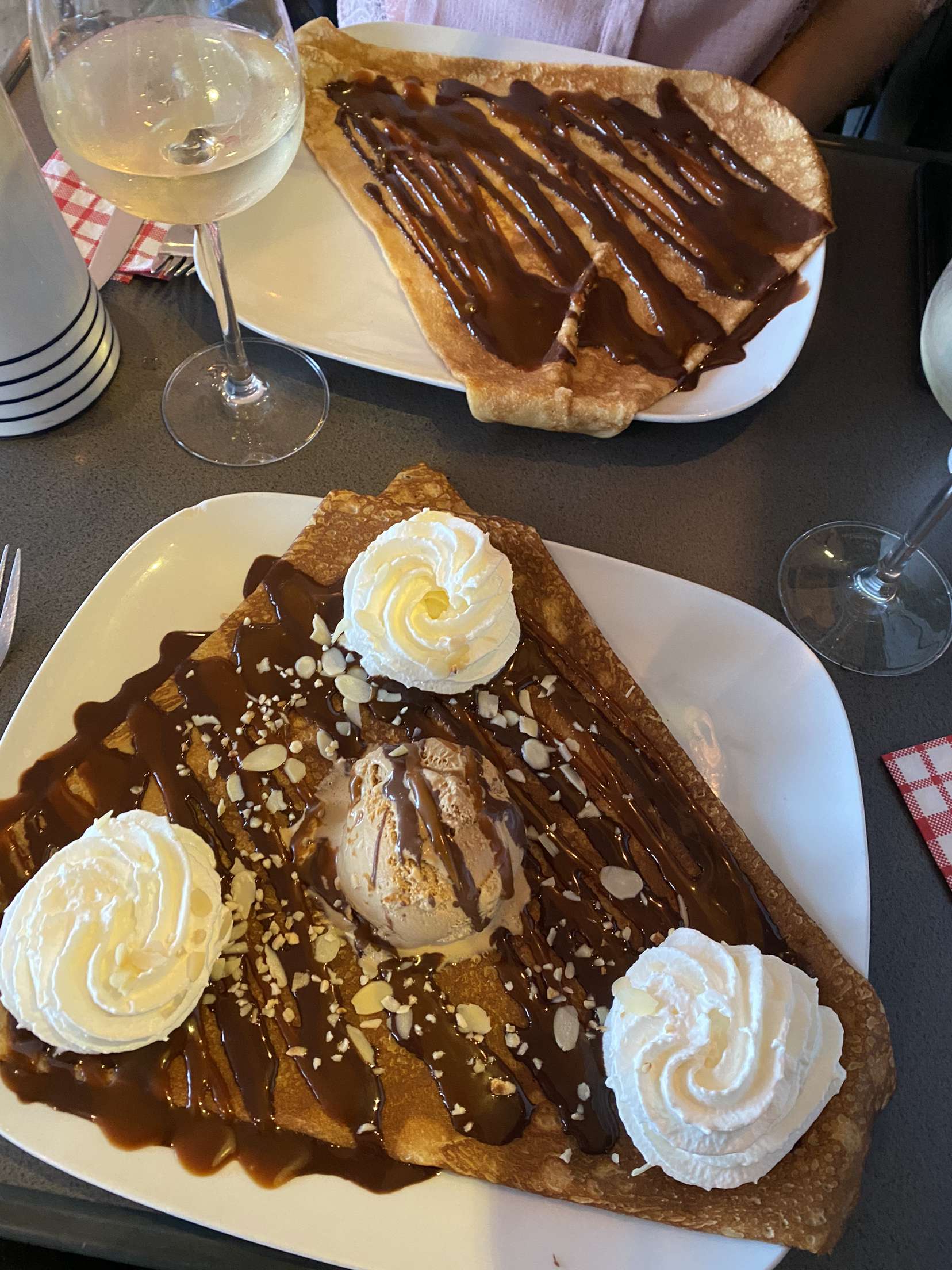 Crêperie sympa. Crêpes copieuses. Glaces généreuses. (désolé, j'ai fait la photo du Combo alors que j'avais commencé...) Prix corrects. Vous pouvez y aller... Ah.! Au moment de régler l'addition, souvenez-vous de ce que vous avez consommé... Le patron le vous demande... 😂 Pour 2, ça va, pour 5 ou plus, ça va être compliqué 🤯... Nan sinon, rien à redire. Bonne ambiance, fond musical varié. Je recommande.