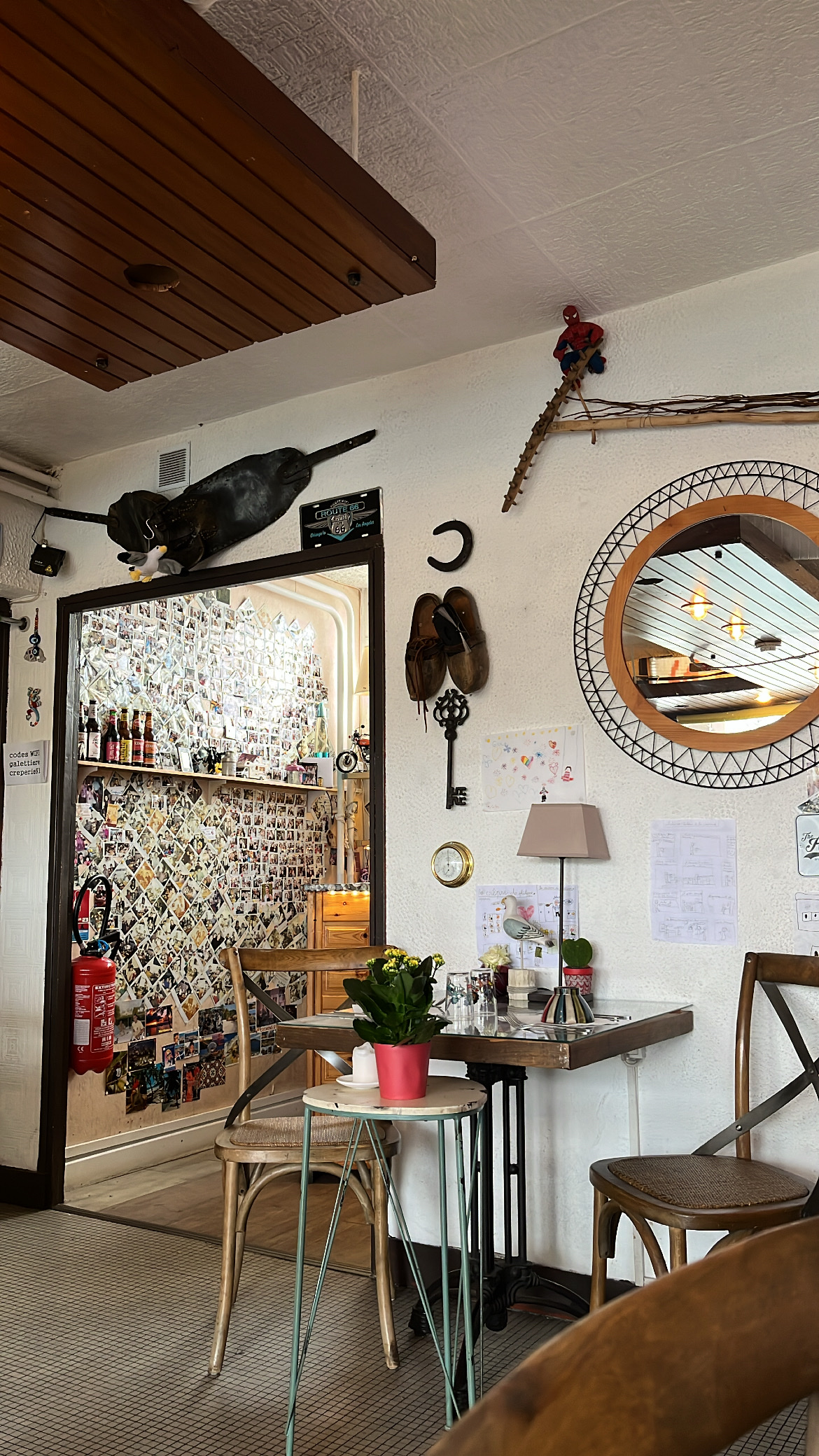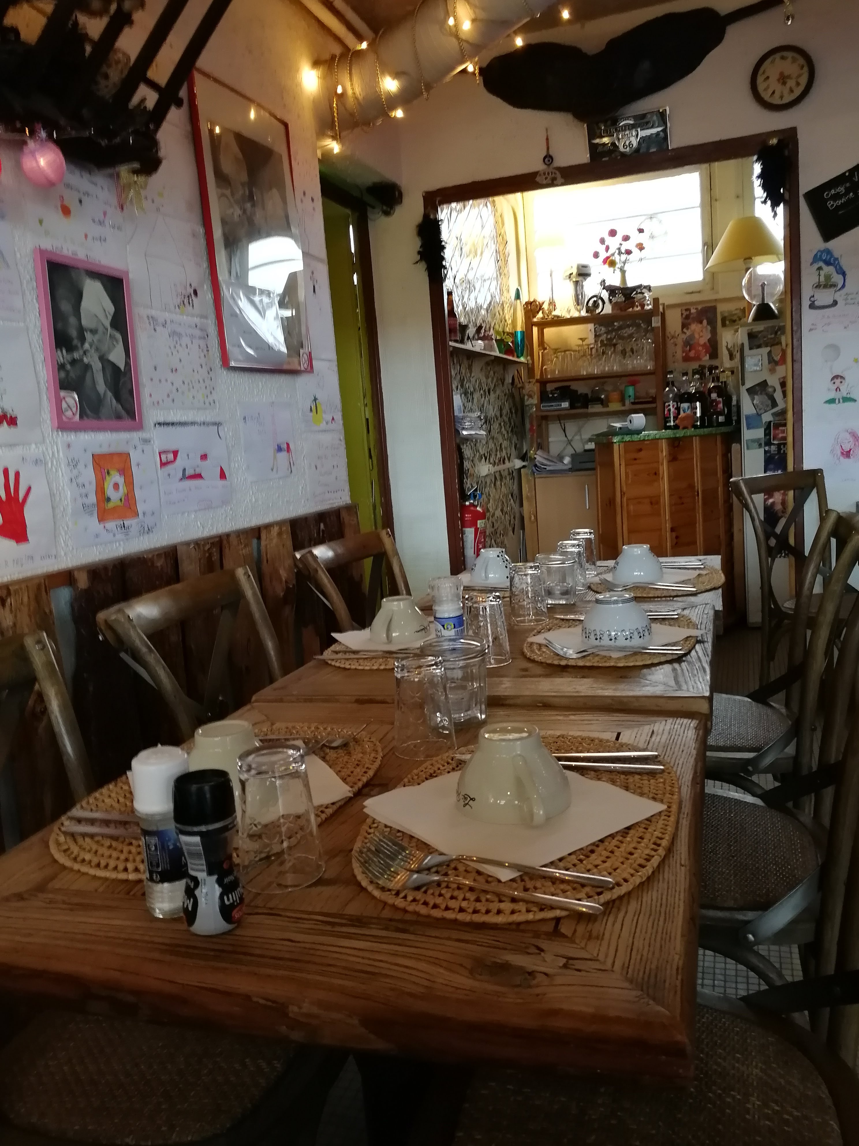 Lieux chaleureux, tout comme votre hôte qui vous accueille au détour de son service. Il travail seul pour la dizaine de table troo rarement disponible. (Pensez à réservé). Ce n'est pas un restaurant comme les autres. Sur les murs des desseins d'enfants, des photos du lieux de plus de 20ans et une déco atypique. Soyons claire! C'est à la bonne franquette! Mais une tres tres bonne franquette. Les assiettes rempli, chaude, la cuisine de ma maman fait avec amour. Vous avez envie d'une crêpe, de bien mangé sans trop de chichi ne reflechissez pas!