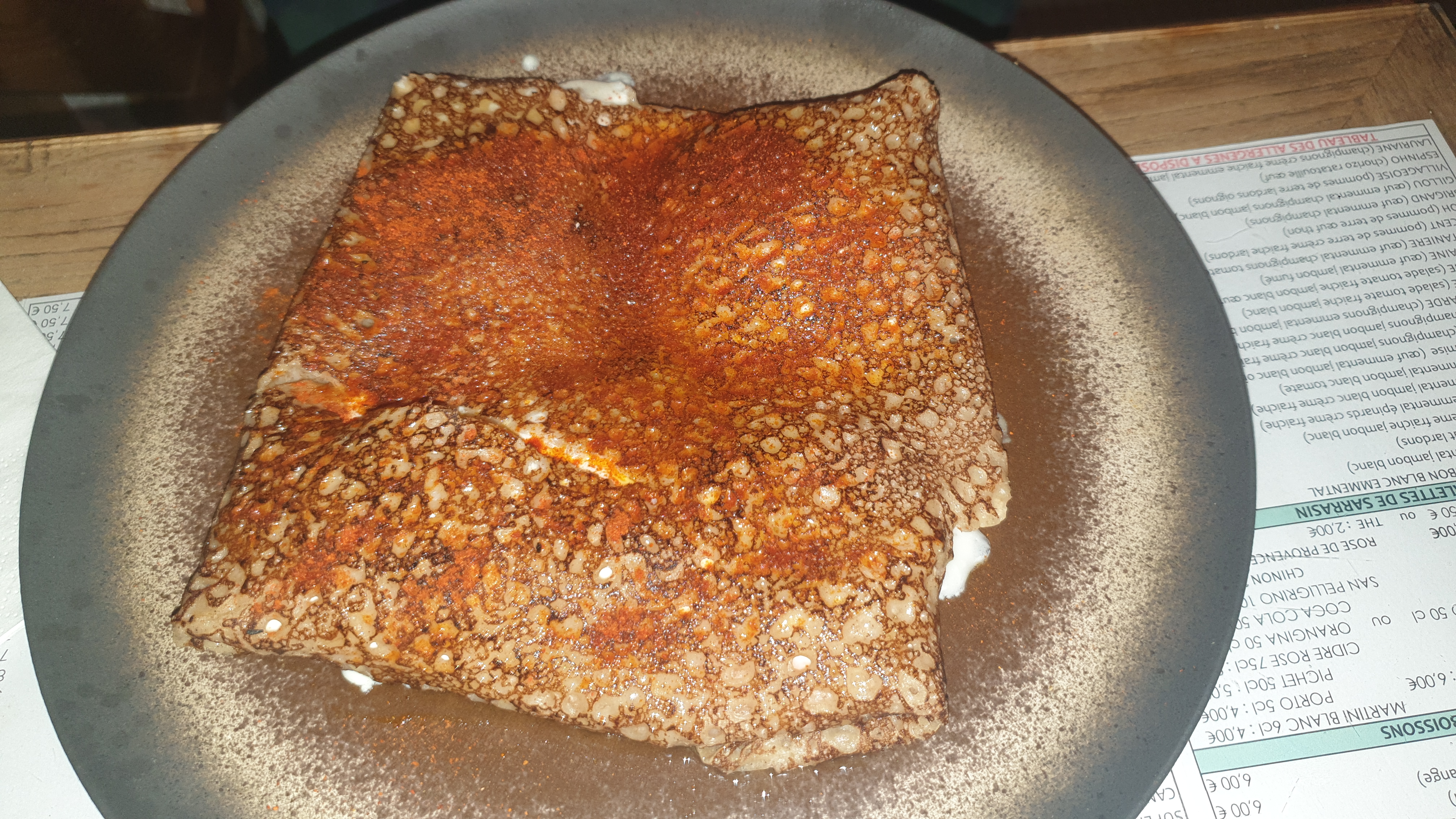 Galette fade et garniture moyenne, même si assez bien servi en quantité. De plus, on nous annonce au moment de payer que la carte bleu n'est pas acceptée quelque soit le montant (aucune inscription ne le mentionne sur la devanture où à l'intérieur).