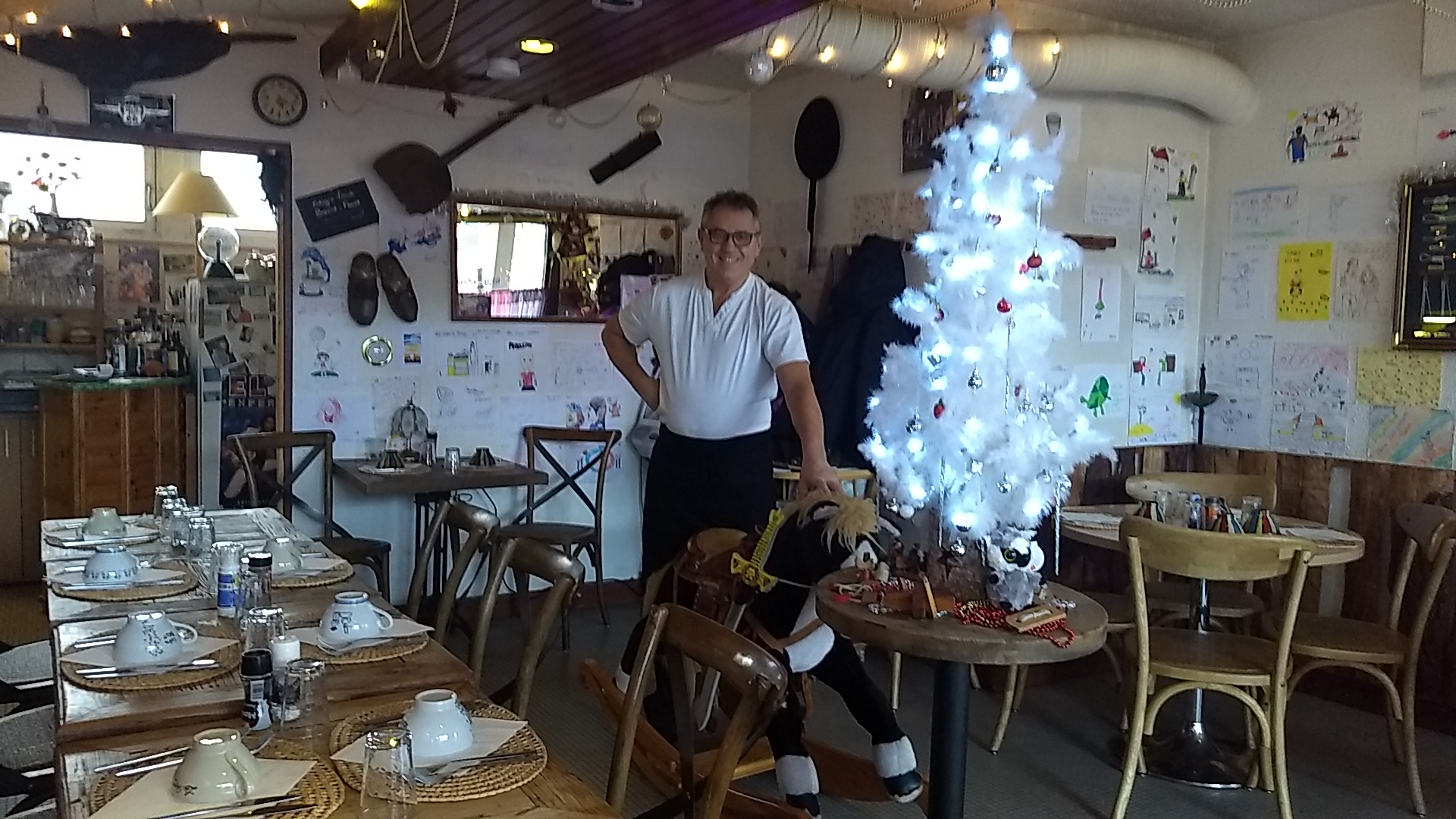 Superbe restaurant avec bonne ambiance, très cosy. Le chef fait tout le service lui meme et est super sympathique et ce qu'il sert est aussi super bon et également incroyablemznt peu cher. Pour nos crepes dessert on a meme eu le droit de se servir en chocolat à volonté ! Je recommande mais faites vite il prend bientot sa retraite !