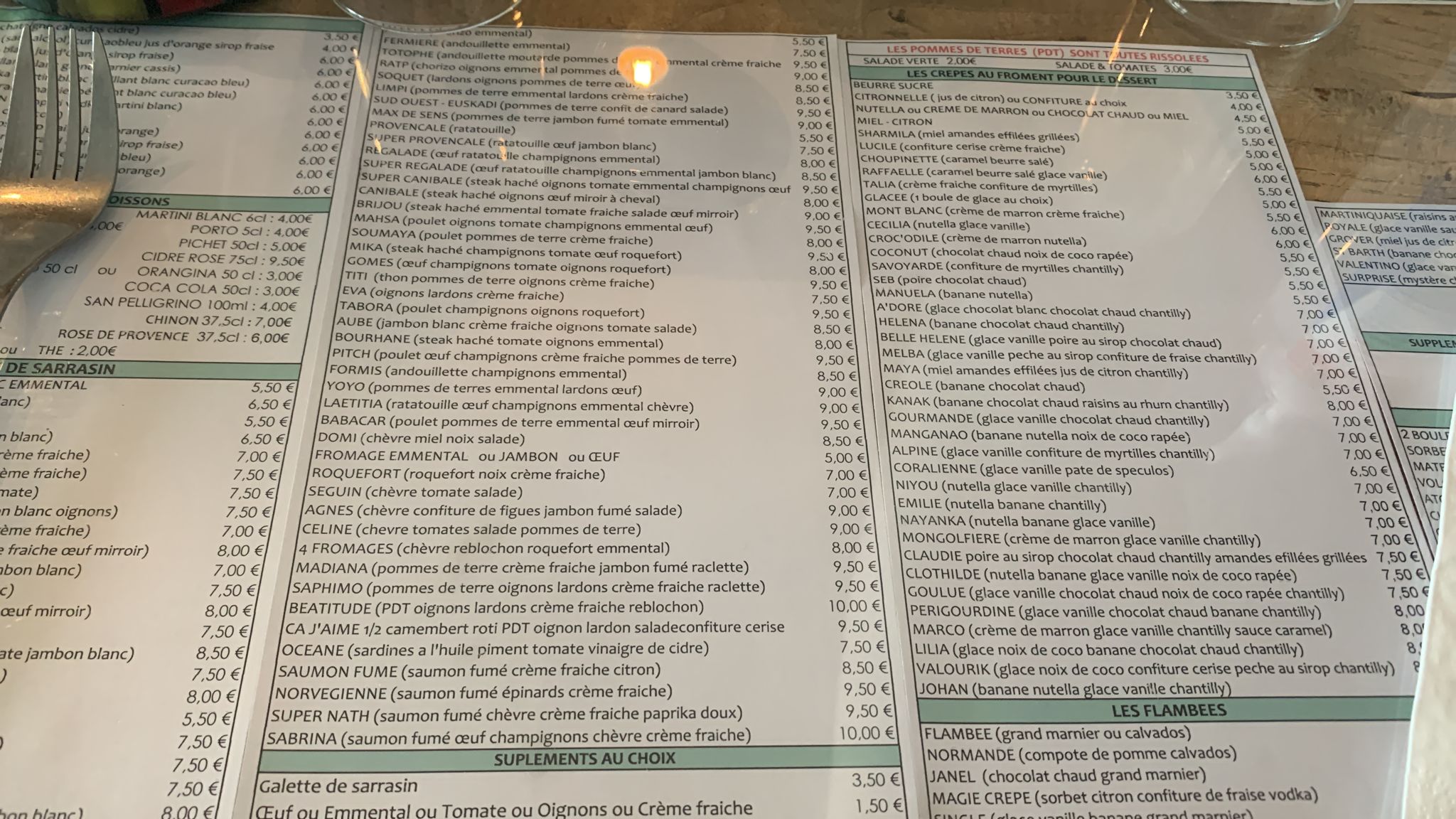Beaucoup de choix ! Les galettes et les crêpes sont très bonnes et bien garnies. Le patron est très sympathique.