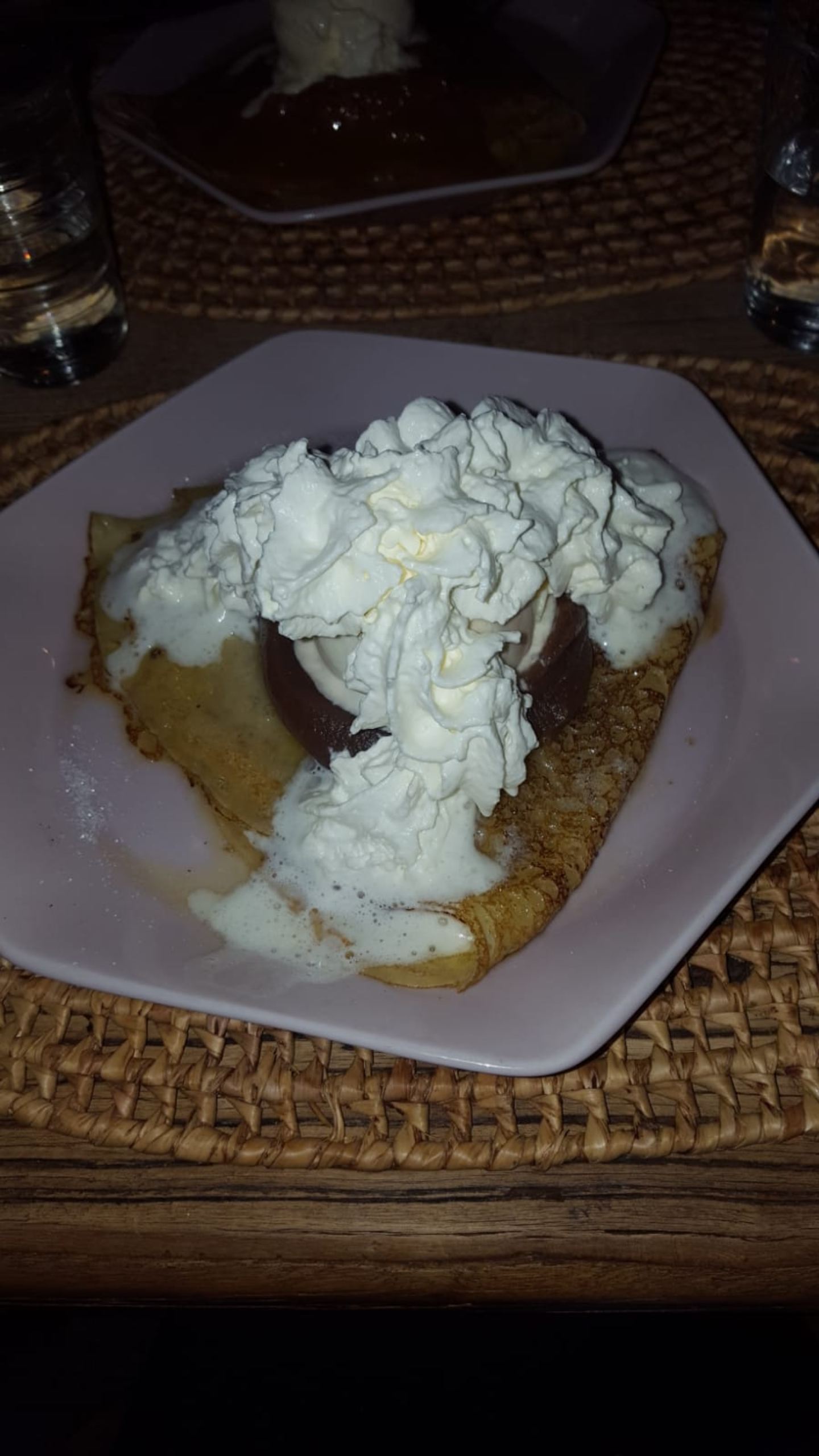 Touchée en plein coeur avec un pot de nutella! 😄Ambiance conviviale, le chef est généreux et fort sympathique. Les portions sont superbes, les gouts variés, vous trouverez votre bonheur à coup sûr. A bientôt😊😋
