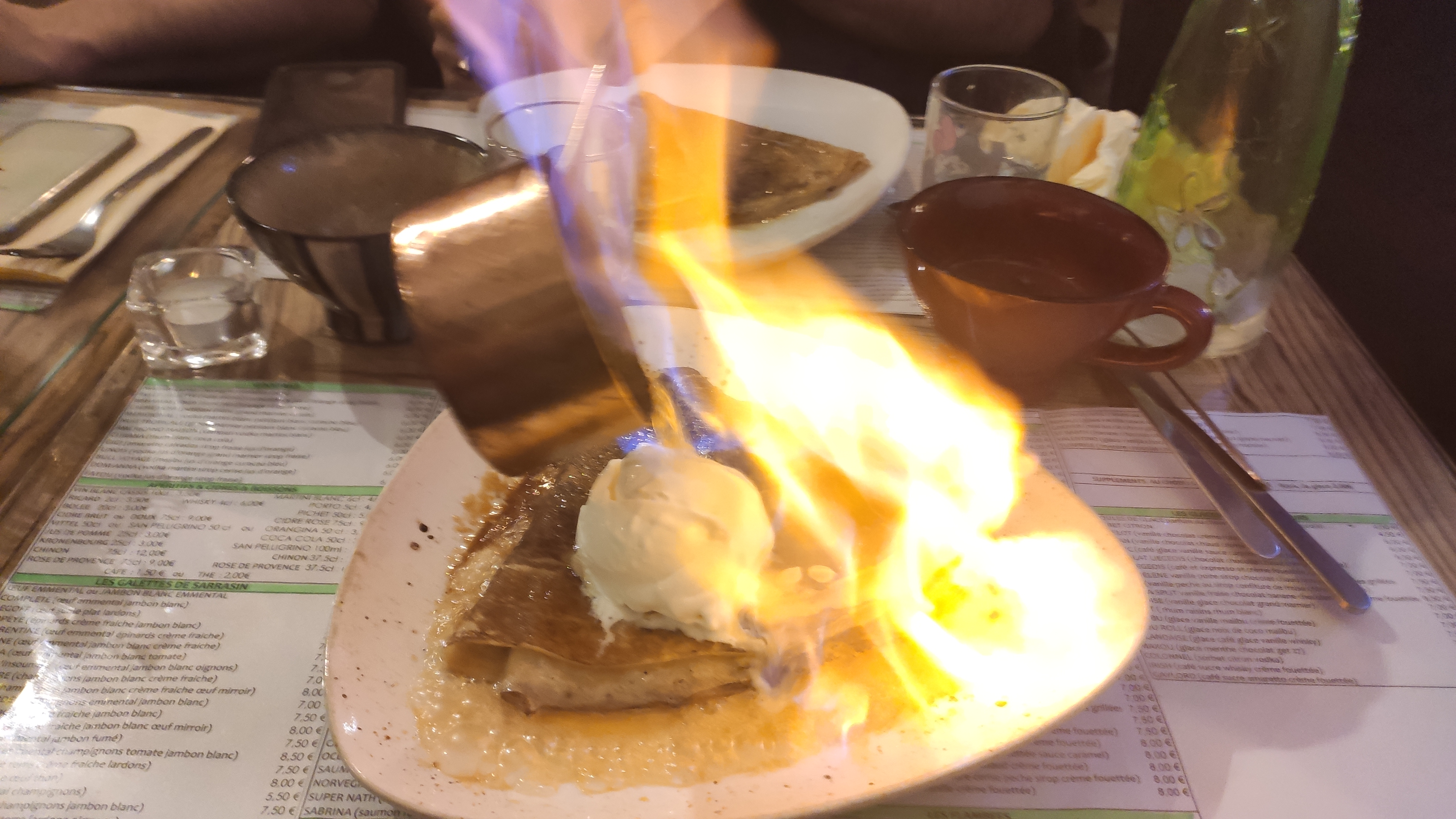 Galettes et crêpes excellentes ! Contrairement aux petites flammettes dans certaines crêperies, ici la flambée c'est un spectacle! Le chef et gérant est très sympathique avec de belles anecdotes à raconter. Il faudra revenir tester le reste de la carte :-)