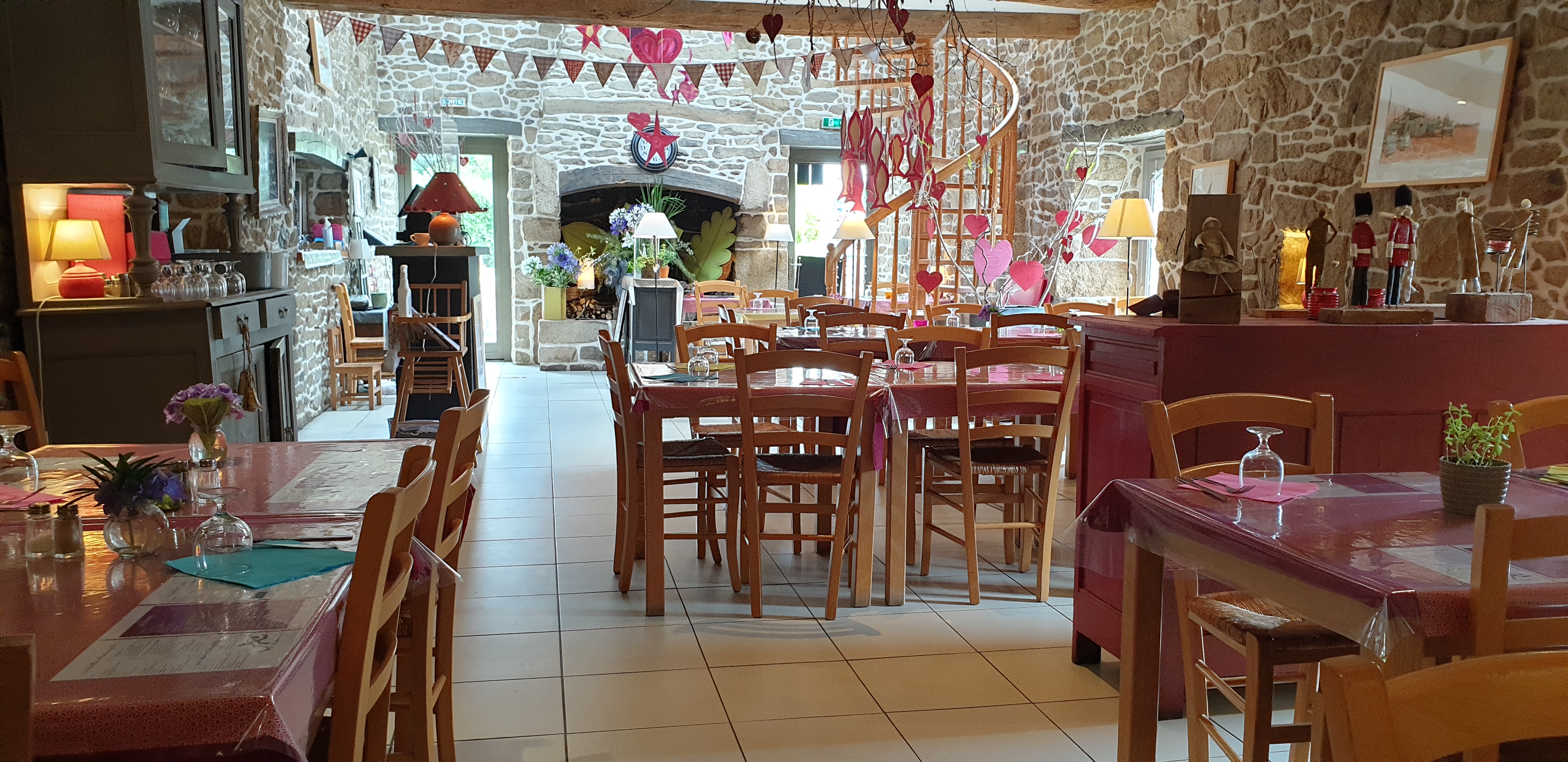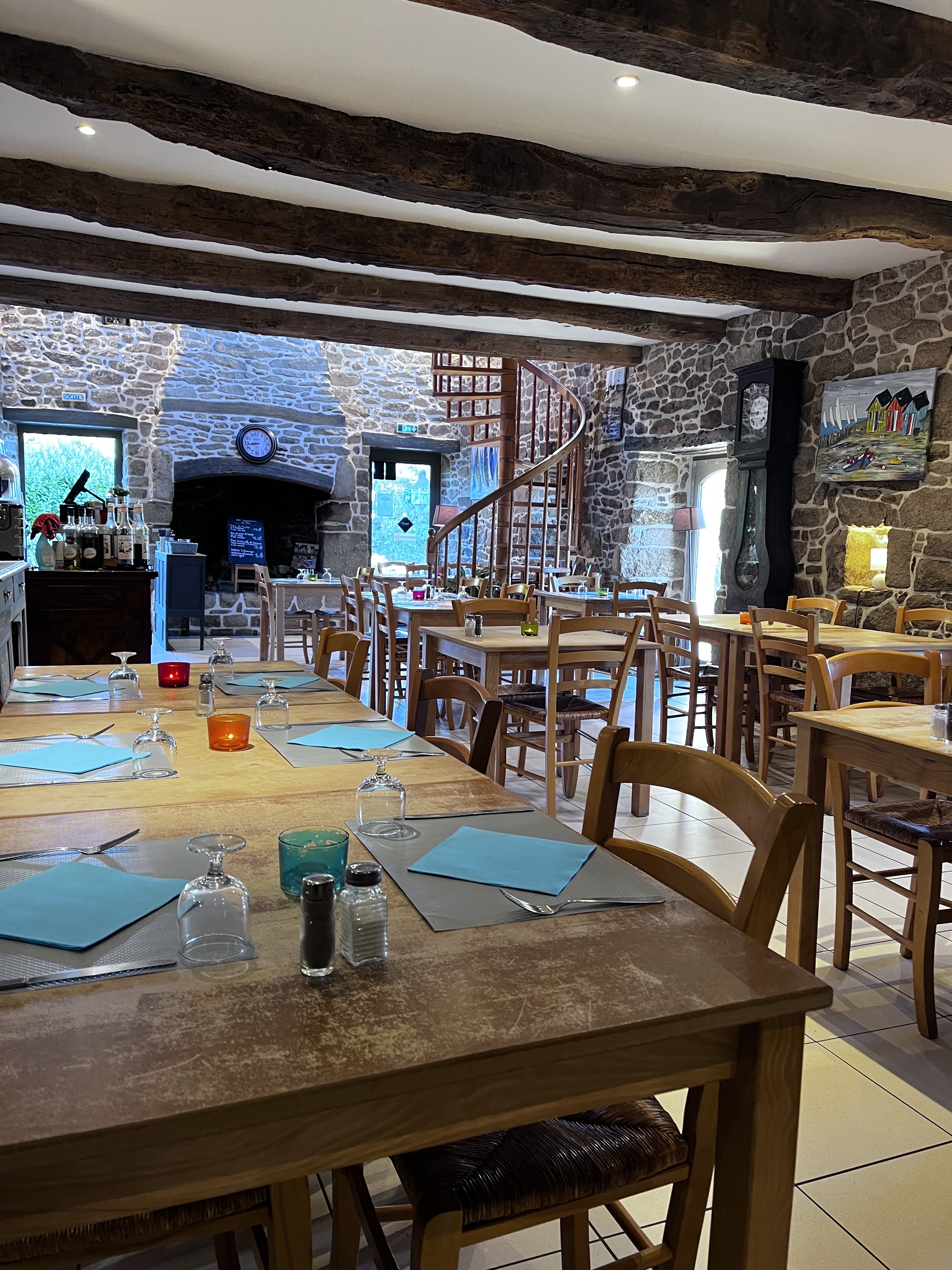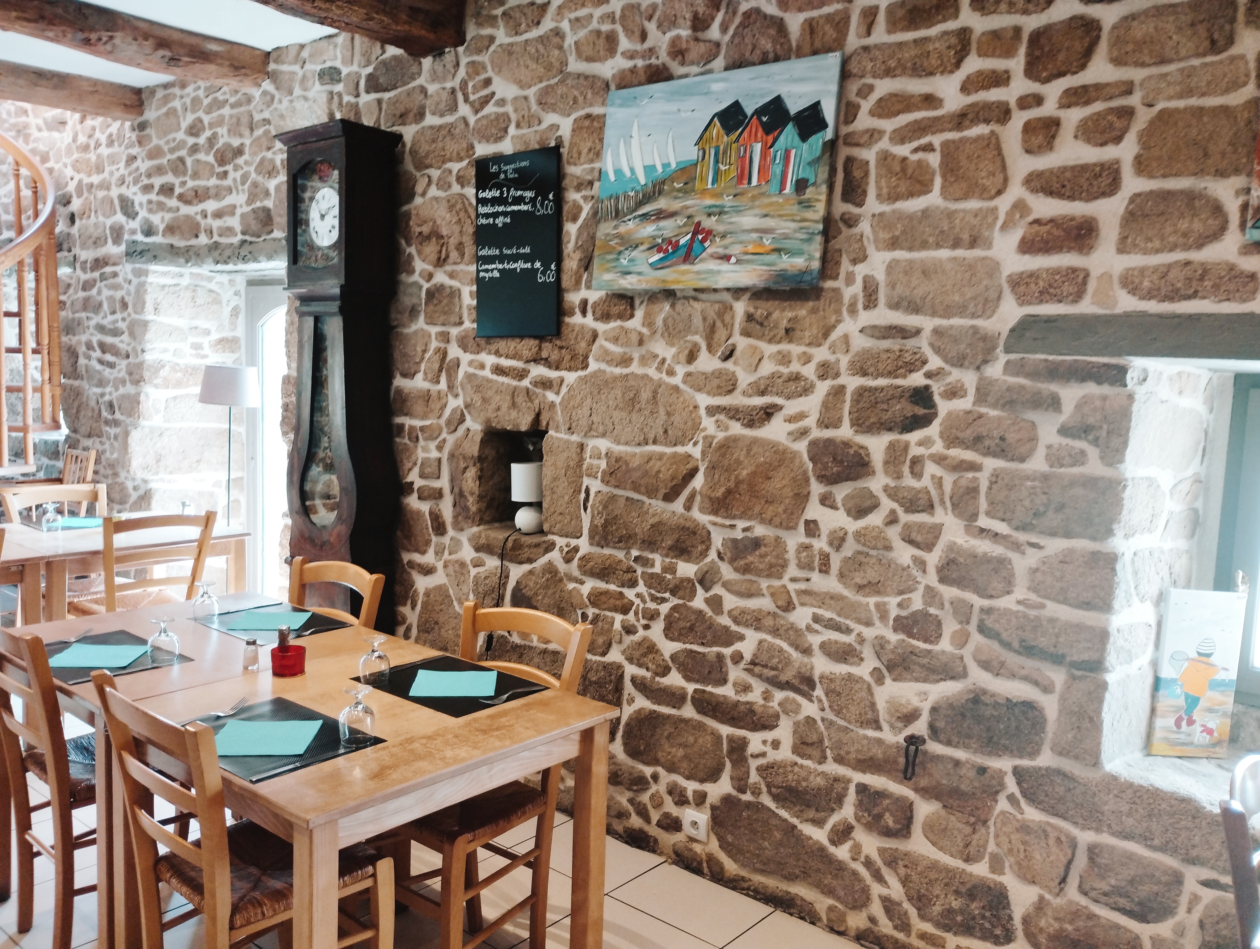 La crêperie est typique avec ses belles pierres, son immense cheminée et ses volets bleus. Les galettes et les crêpes sont bonnes donc on y revient souvent 😀