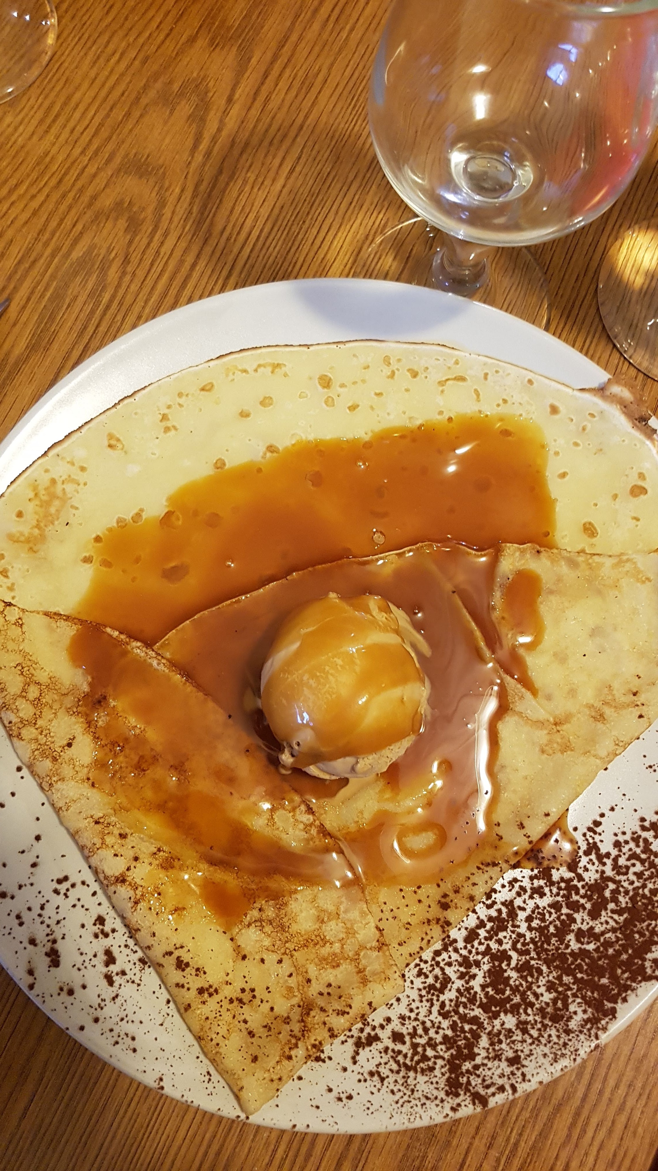 Bien accueillis, nous avons passé un bon moment. Service efficace et rapide pour une crêperie. Galettes Excellentes +++. La crêpe sucrée était bonne mais plus ordinaire. En revanche ma garniture de caramel maison et de glace caramel était elle aussi Excellente. Nota, un menu enfant à 7€ qui mérite d'être mentionné.