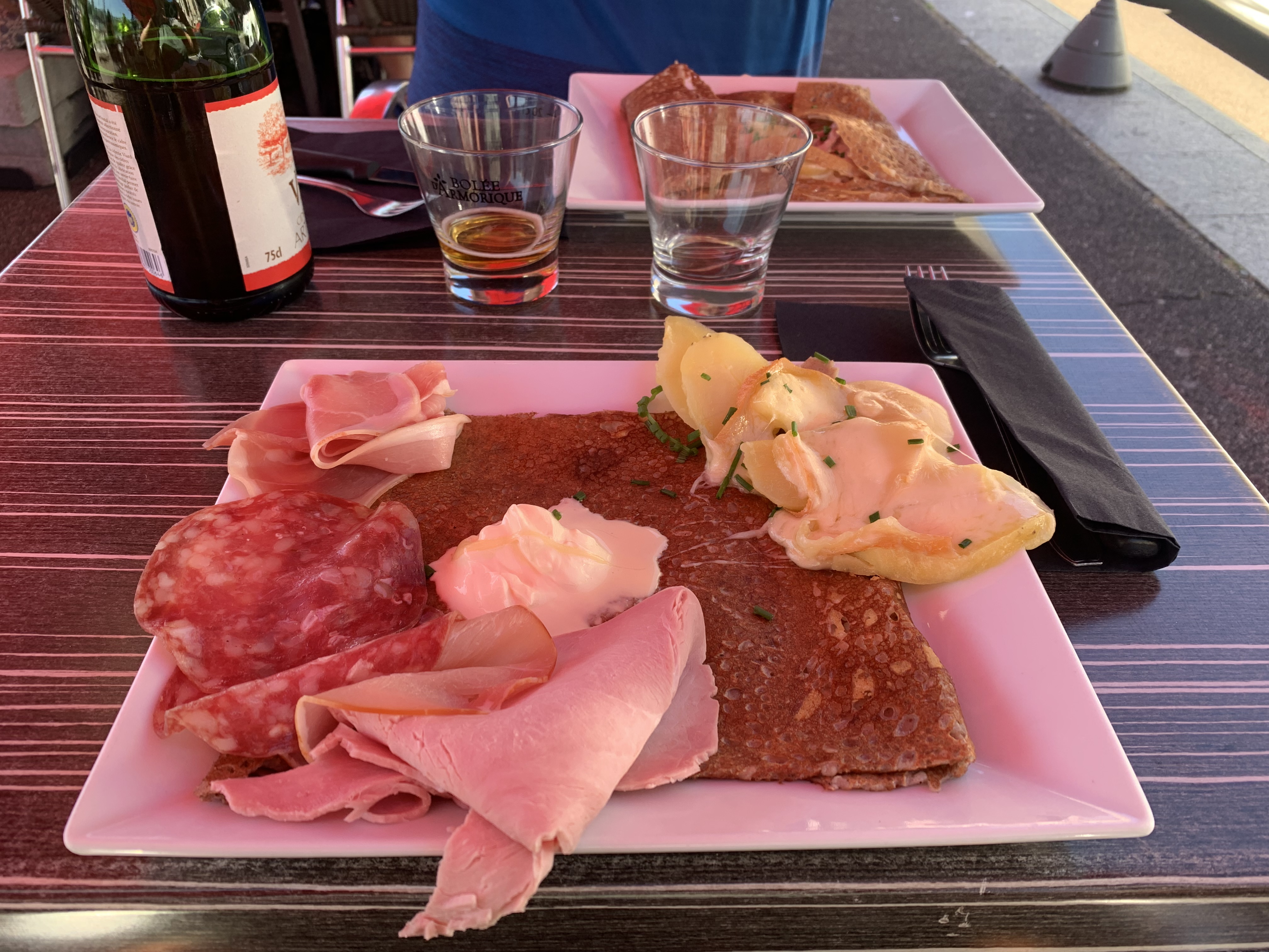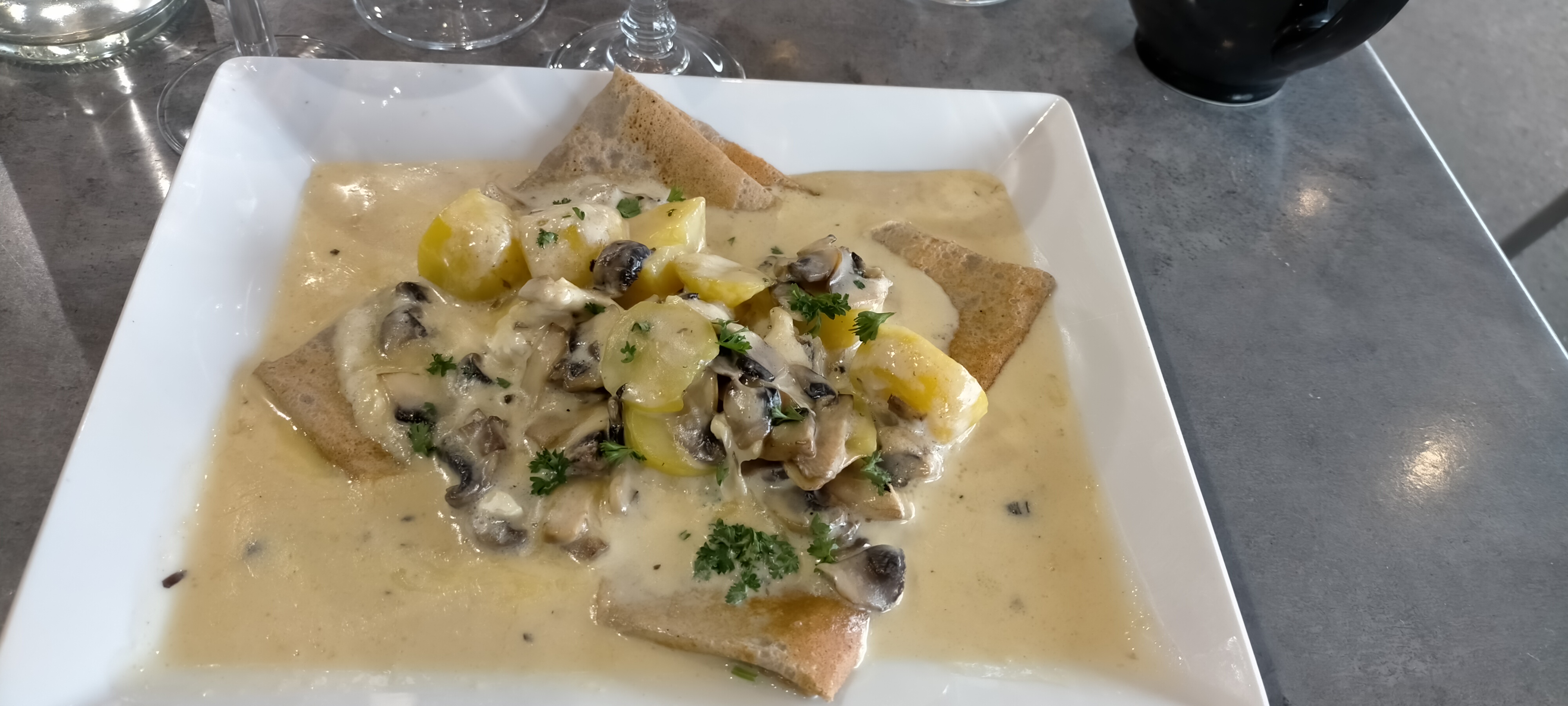Repas en terrasse agréable mais service très rapide. Le serveur ou gérant n'est pas très souriant ni aimable... Bonnes galettes au sarrasin bien copieuses.