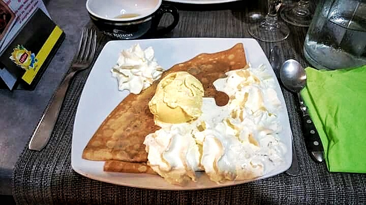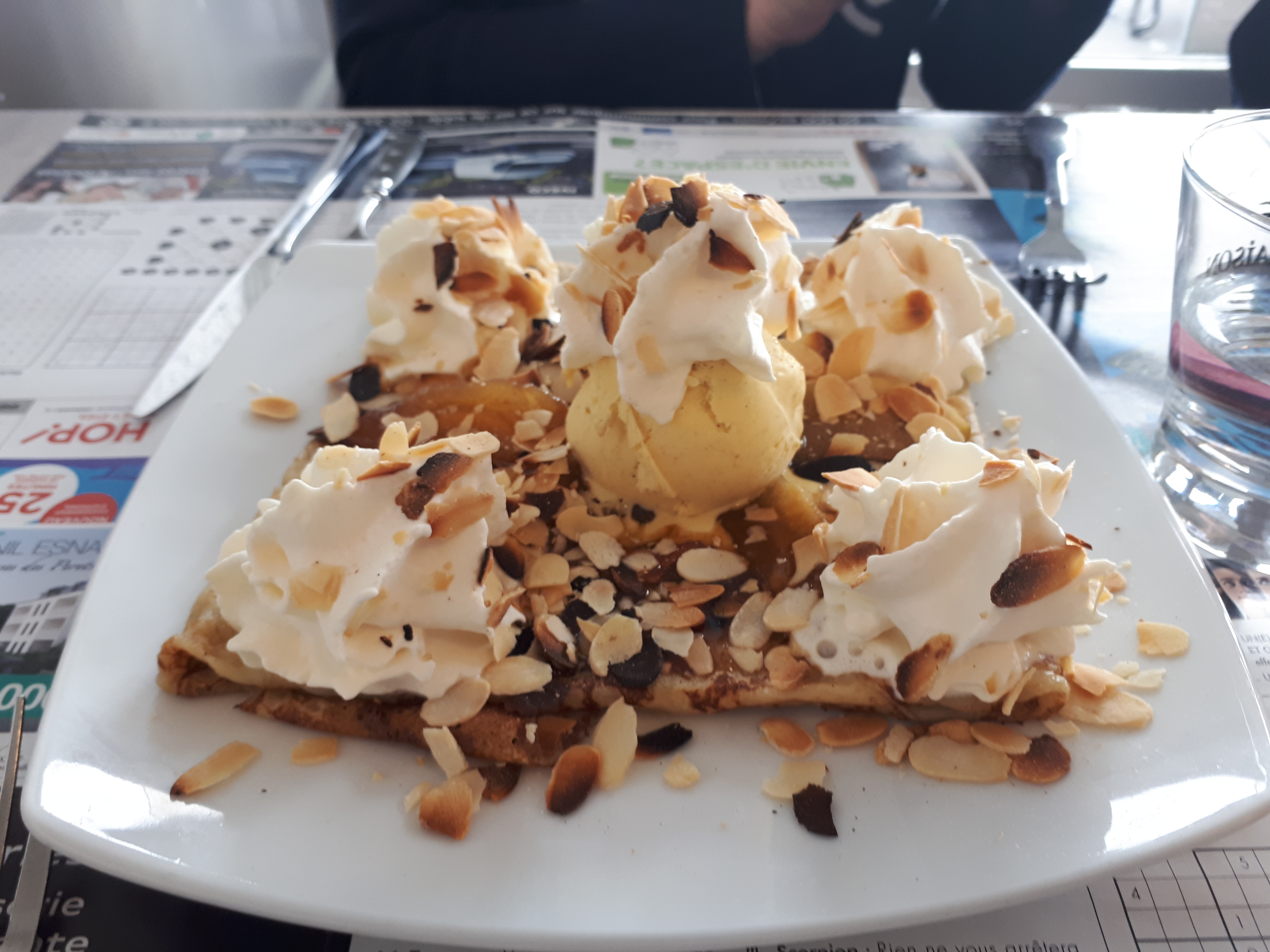 Pour les amateurs de crêpes passez votre chemin : une crêpe avec les ingrédients à côté…. C’est un concept mais c’est pas terrible. Mention très bien à la serveuse qui s’occupe de la terrasse sur le port. Agréable et gentille comme tout