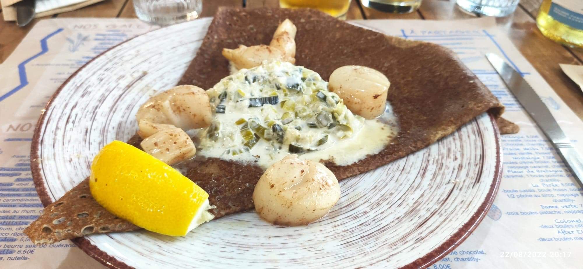 Passé un excellent repas de crêpes et découvert la crêpe La Sauzaie dont je n'ai jamais encore vu cette composition que j'ai adoré. Par ailleurs la Crêperie est sur la plage avec une vue imprenable sur la mer. Vraiment un instant passé merveilleusement.