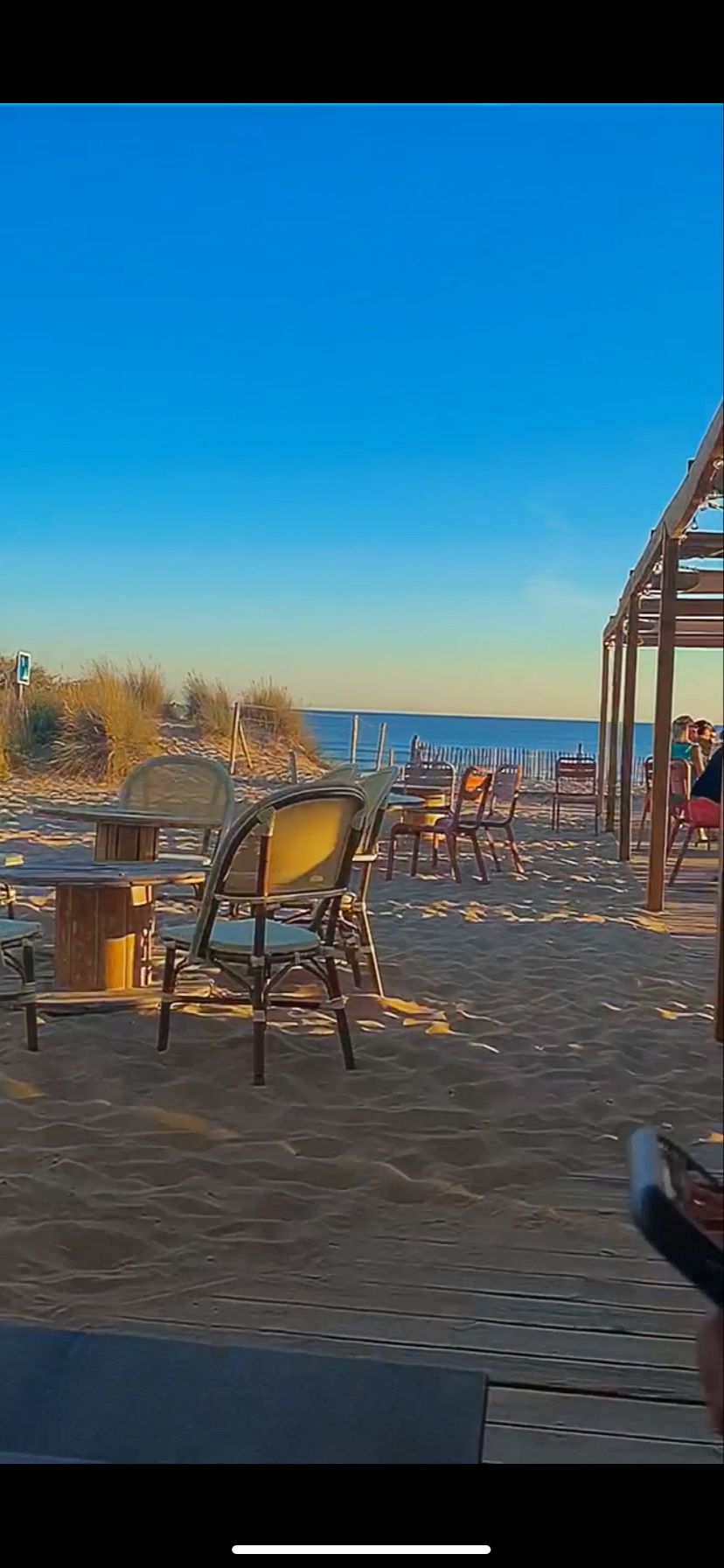 Endroit avec une vue magnifique, disposant d'une terrasse avec table, chaise mais aussi des salons pour être mieux posé pour profiter de l'instant présent, pendant que les enfants sont juste en face à jouer dans le sable de la plage, petit bémol accueil un peu froid,