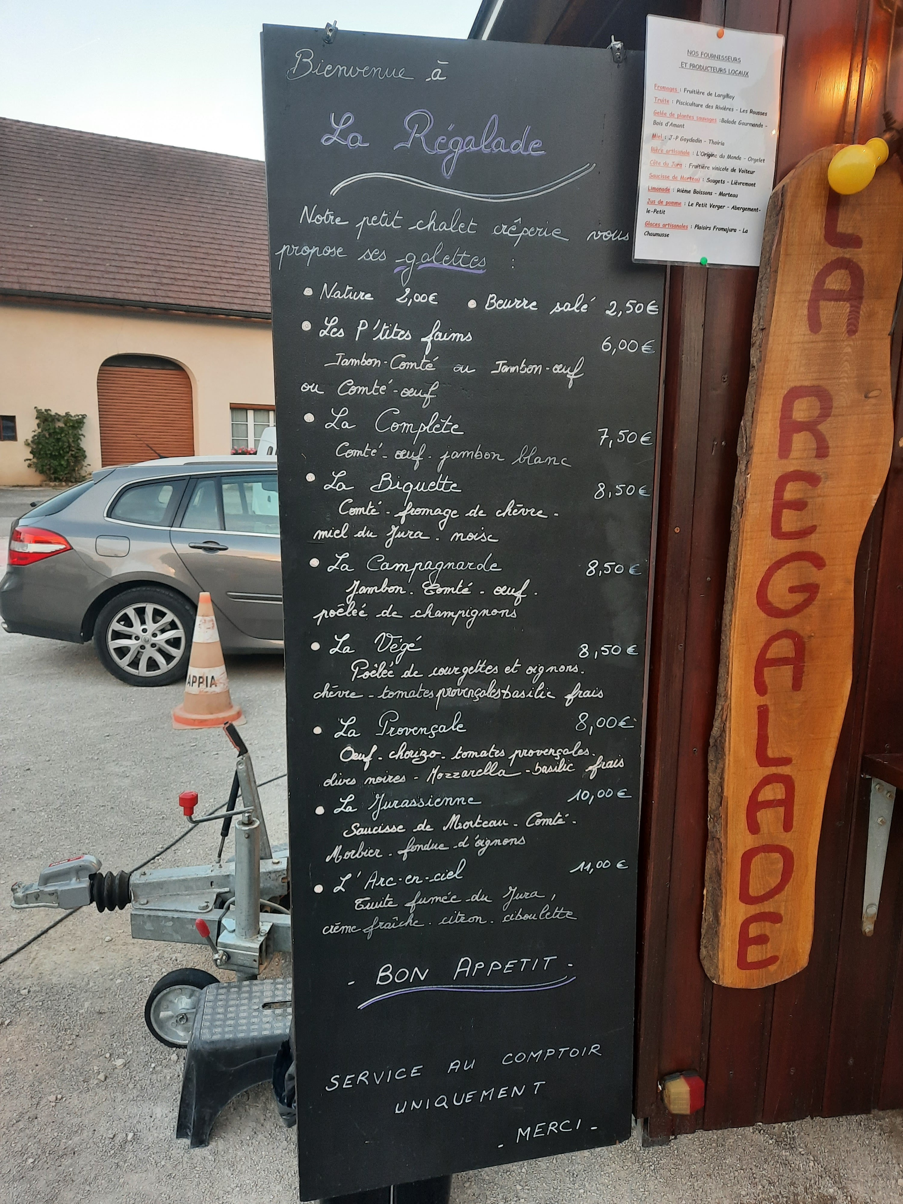 Une petite pause sympathique après une journée moto dans le Jura. Un super accueil et des crêpes délicieuses. Merci La Régalade :)