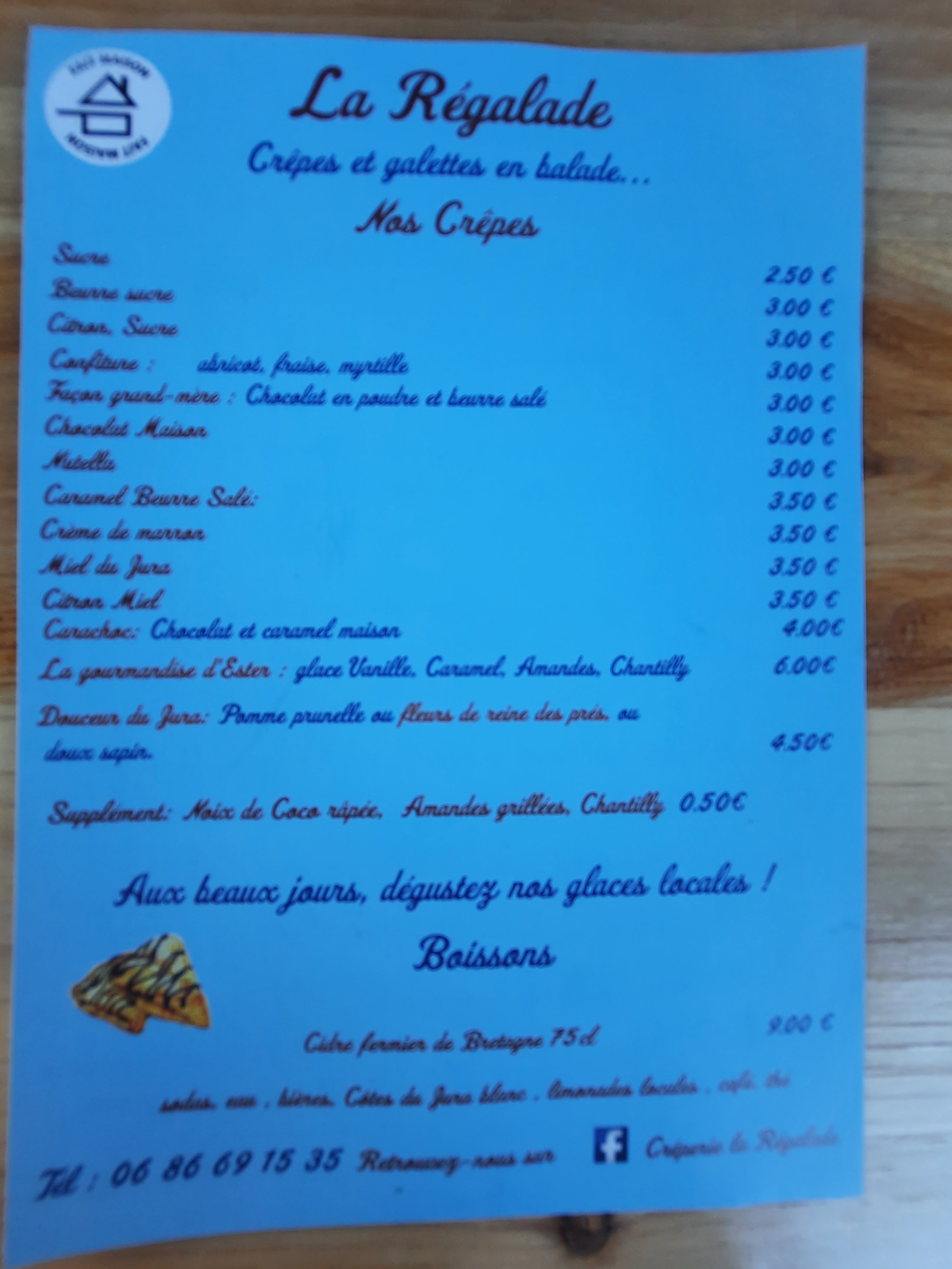 Tombés sur La Régalade par hasard... et quelle bonne surprise ! Les crêpes sont délicieuses et le comté renouvelle le genre avec bonheur ! Mais malgré toutes ces qualités, ce que nous retiendrons surtout, c'est que nous avons été accueillis avec une gentillesse et une simplicité si rares qu'elles sont devenues précieuses ! Merci pour tout ça !