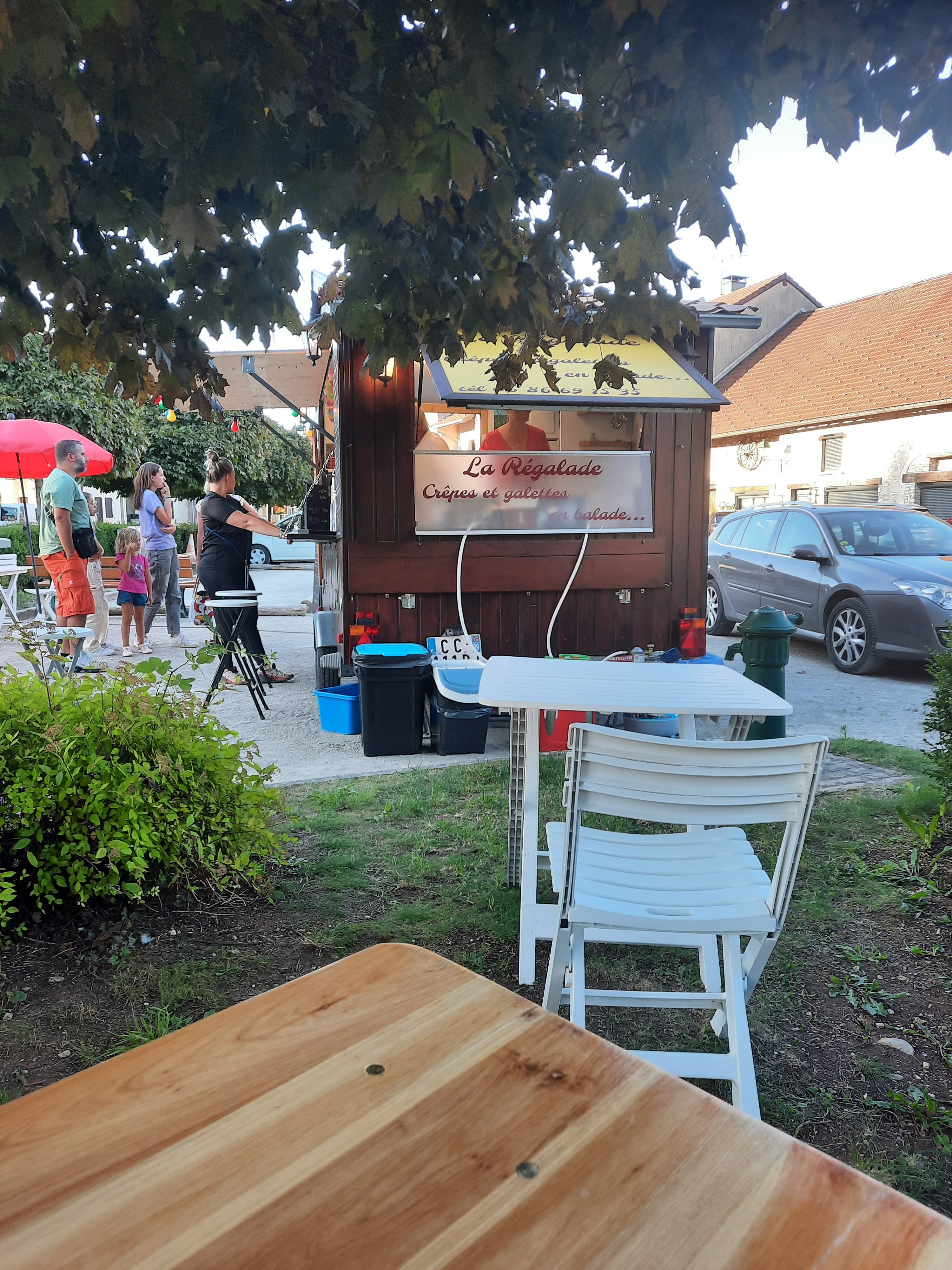 Excellent ! Nous avons cherché un plan B pour un dîner et nous avons trouvé cette creperie mobile à 20h40, c'était parfait. Produits locaux. Il y a 2 tables pour manger sur place.