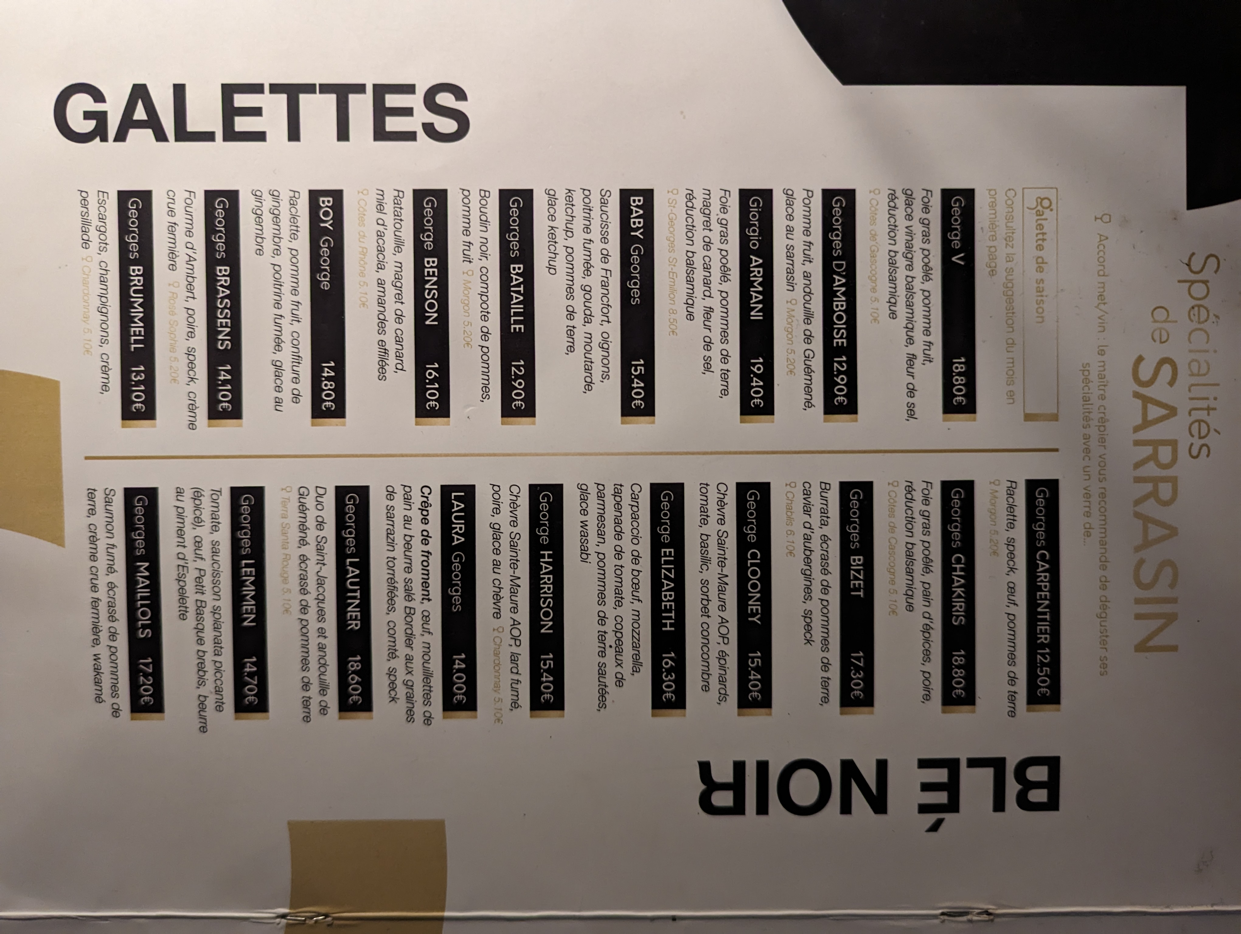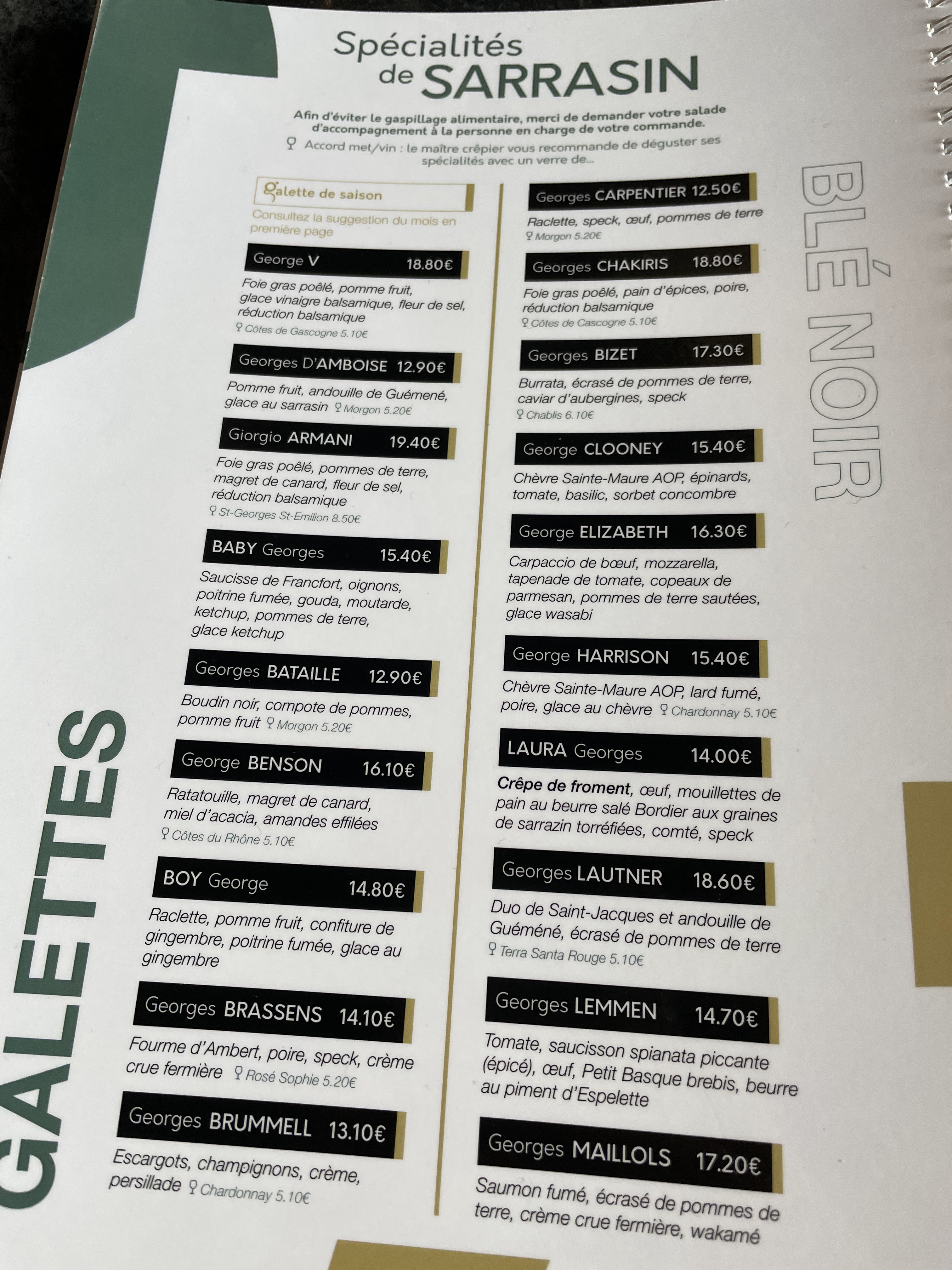 Derrière le côté crêperie branché nous ne nous attendions pas à trouver une telle qualité. Du salé au sucré, tout est bon et goûteux, le service un peu long mais serveurs sympathique et efficace. La carte (sur QR codé) et Wi-Fi est intelligemment présentée. L’idée de nommer chaque galette autour des Georges célèbres est très original. Très belle surprise, on s’est régalé. Pas trop chère 47€ pour deux