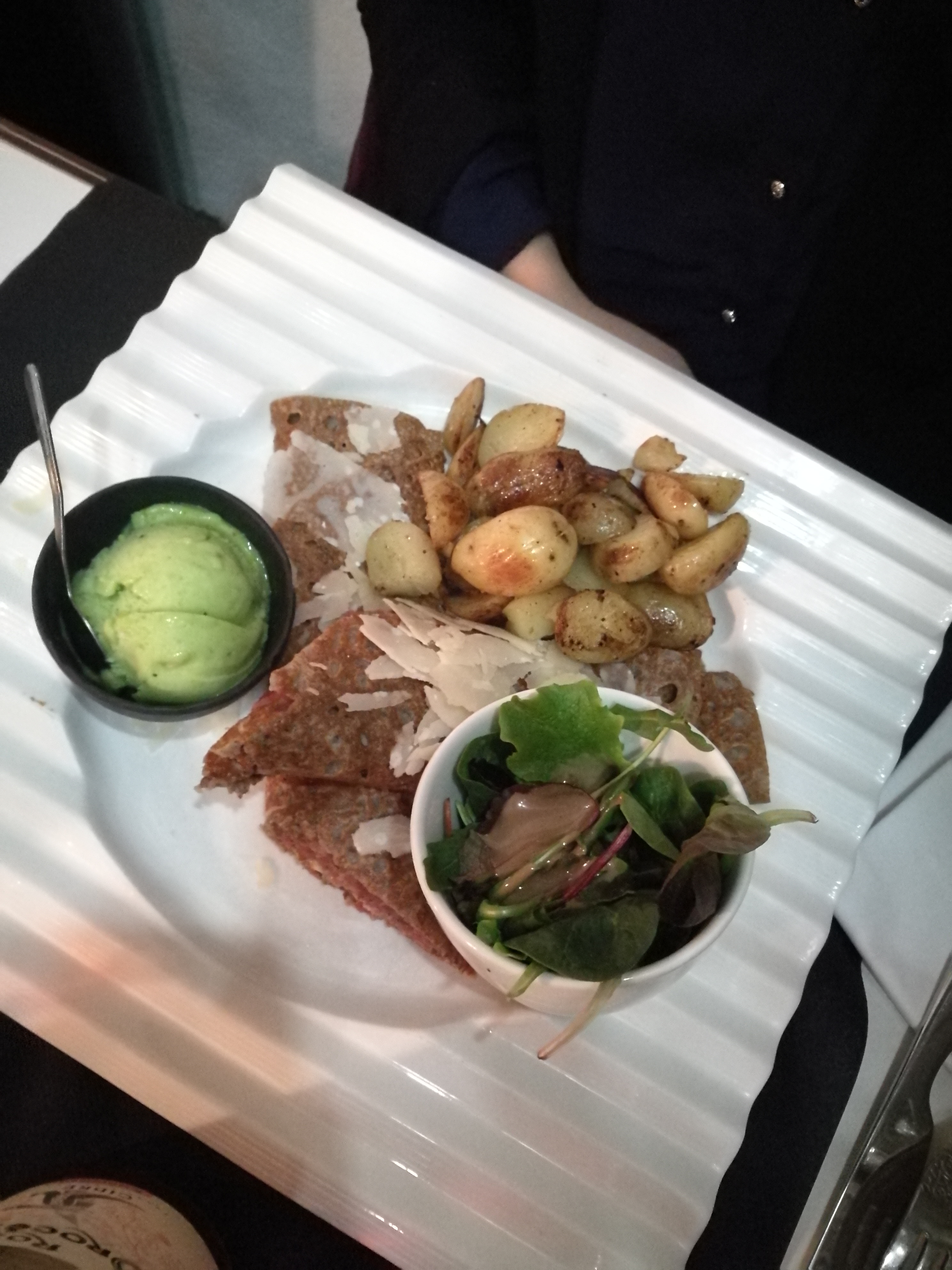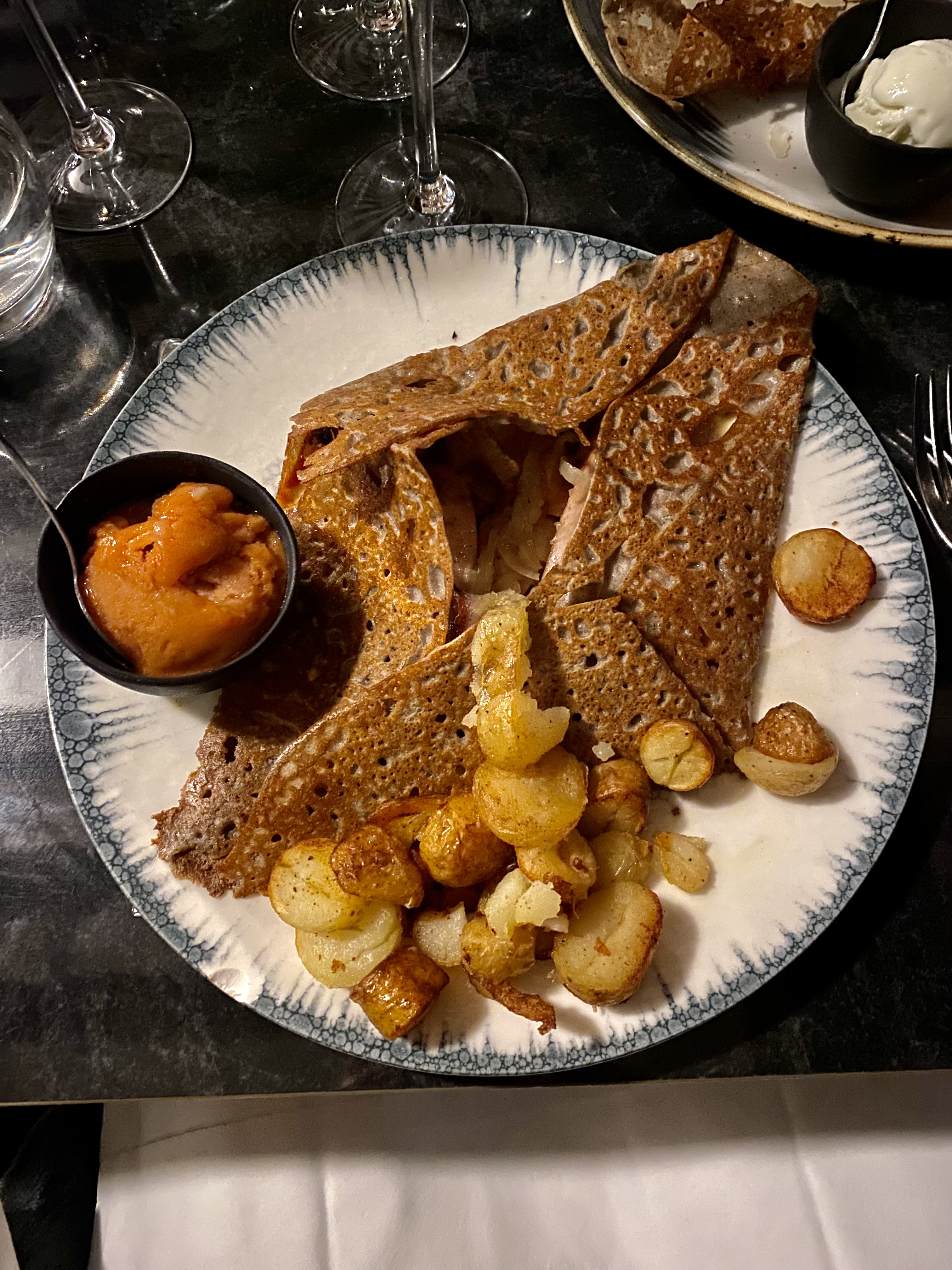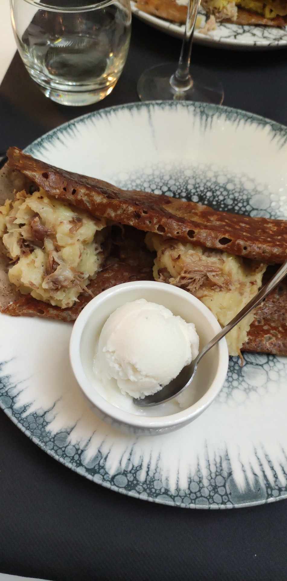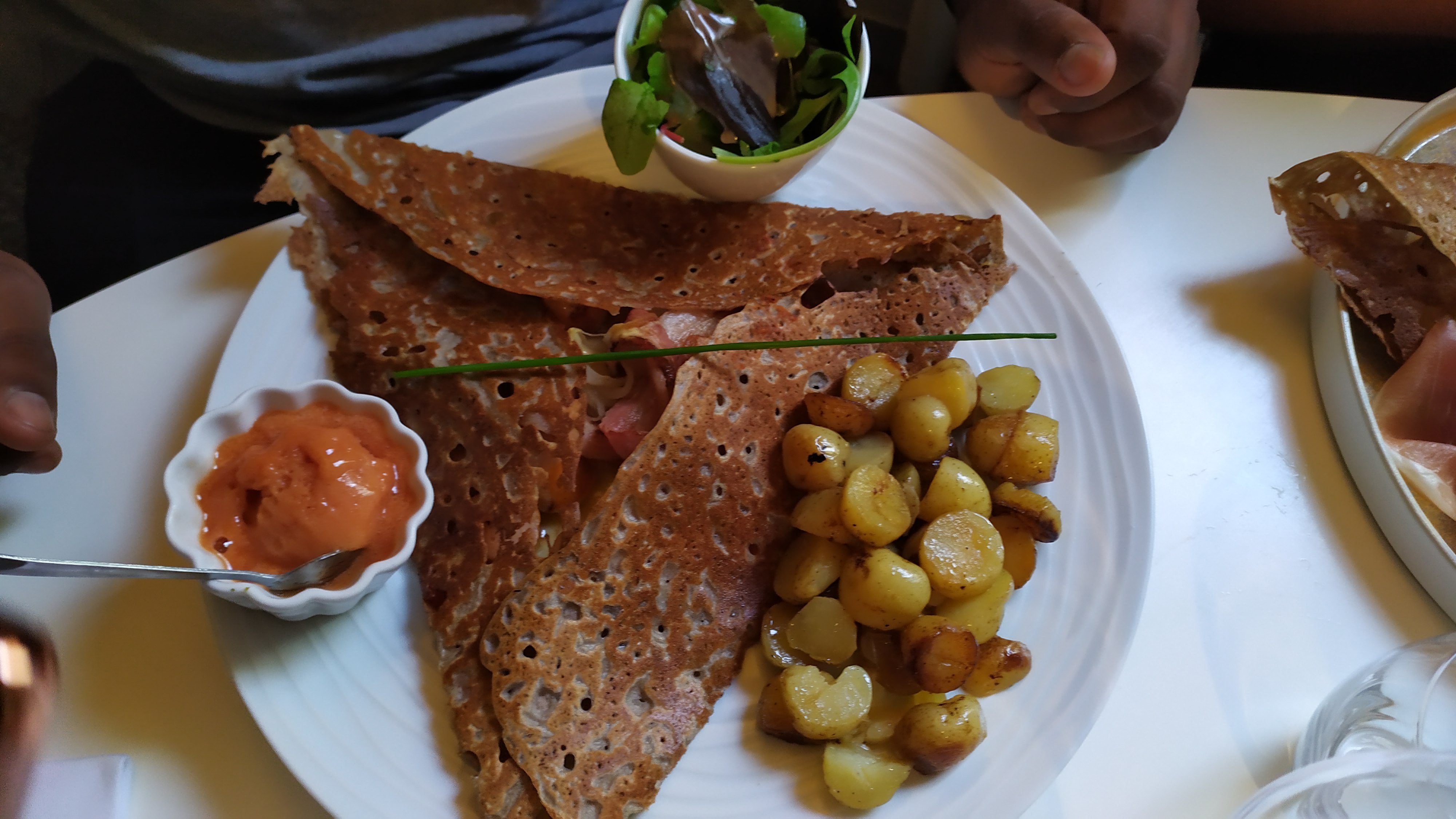 Excellente service, crêpes originales mais quantités pas énormes. Servies avec un délicieux accompagnement (glace salé+salade).ambiance légèrement chic.