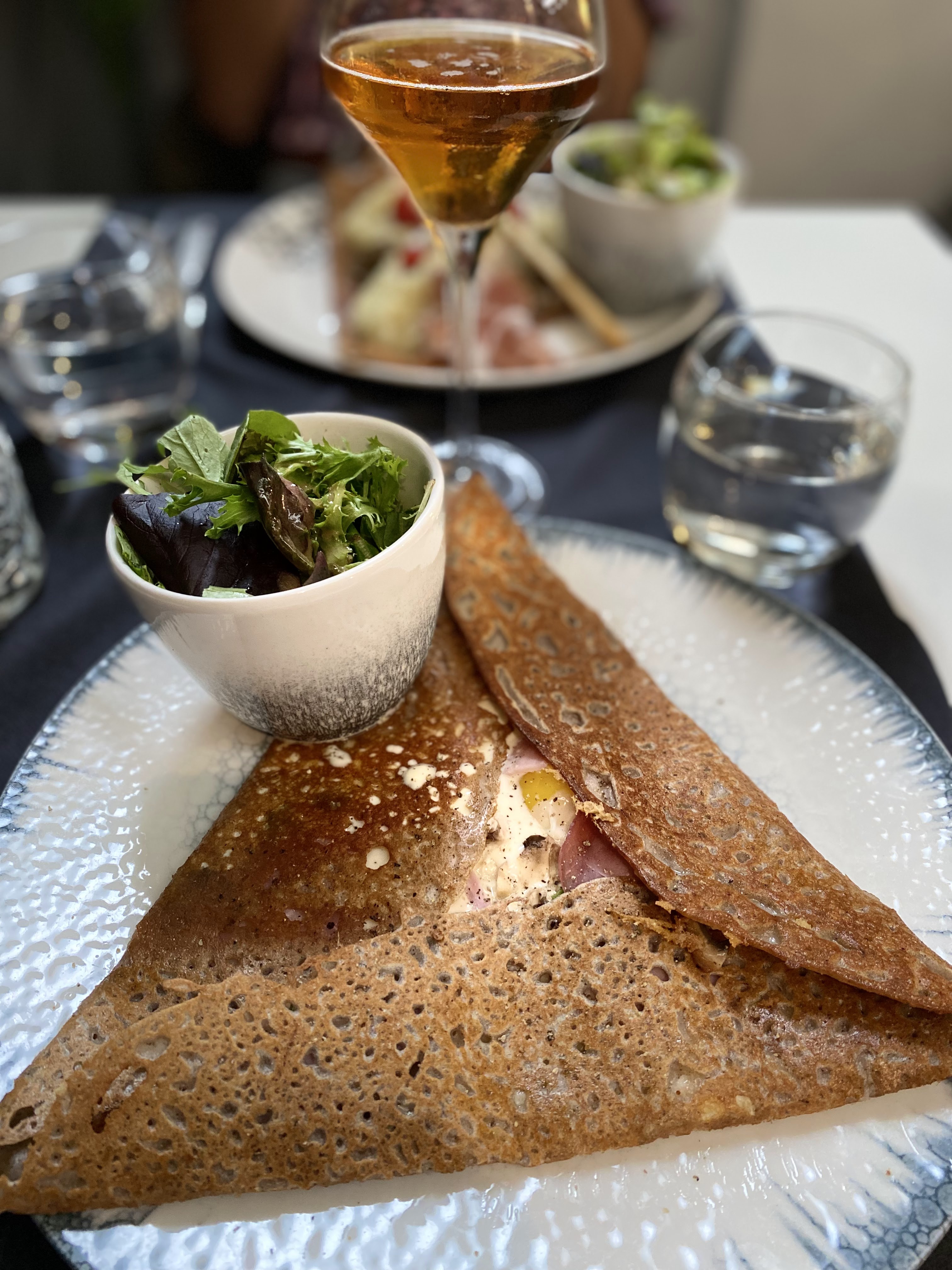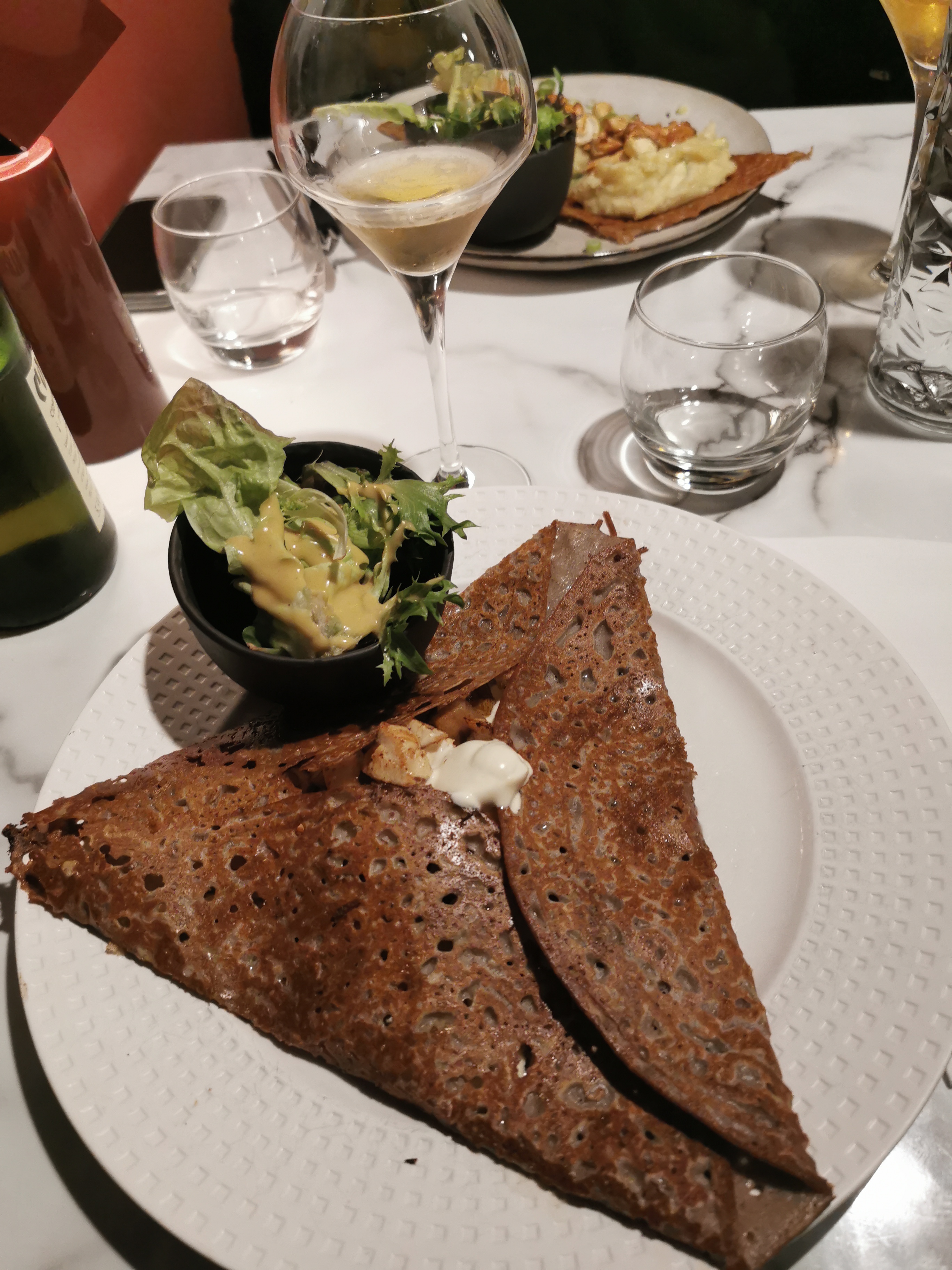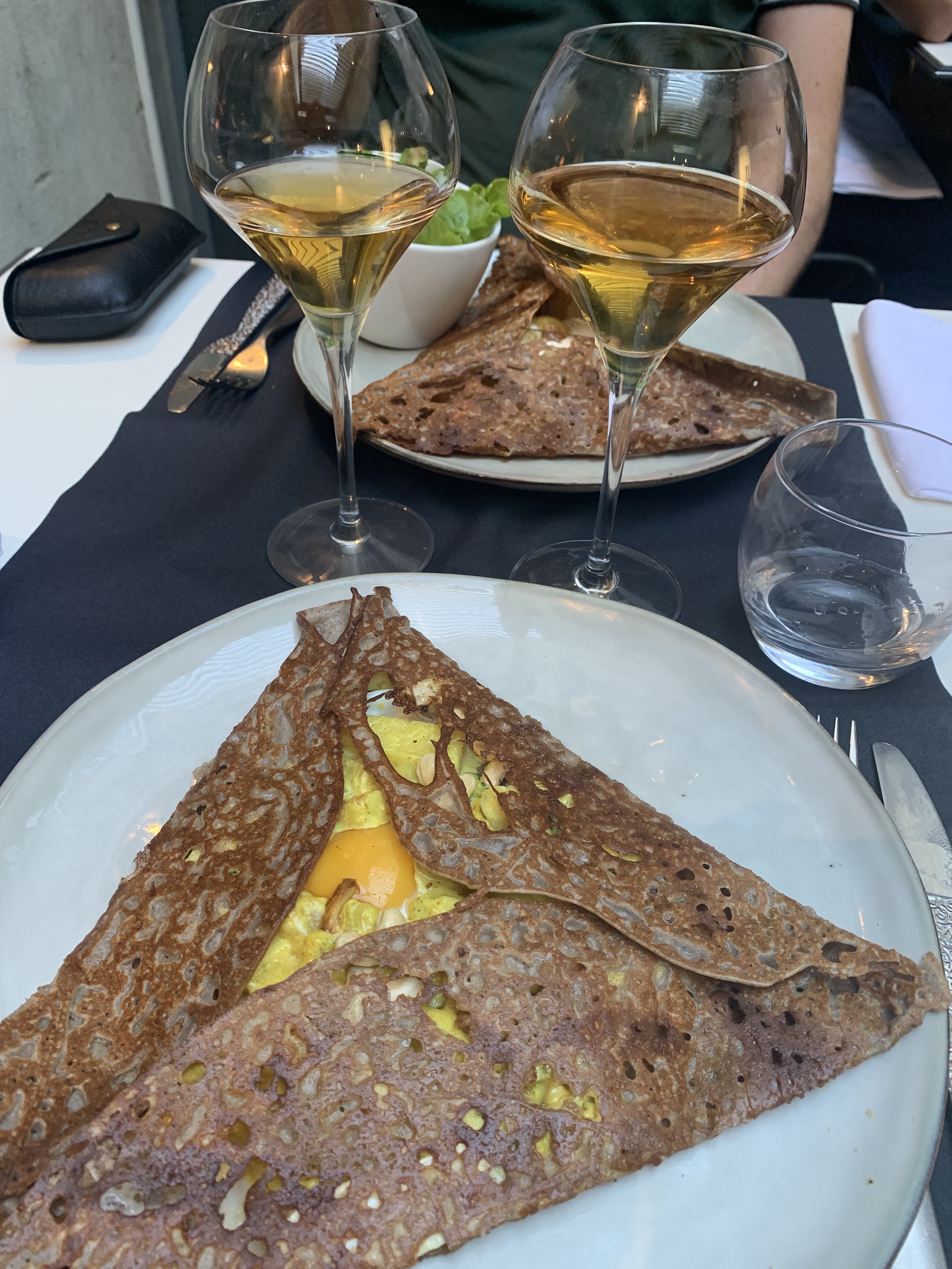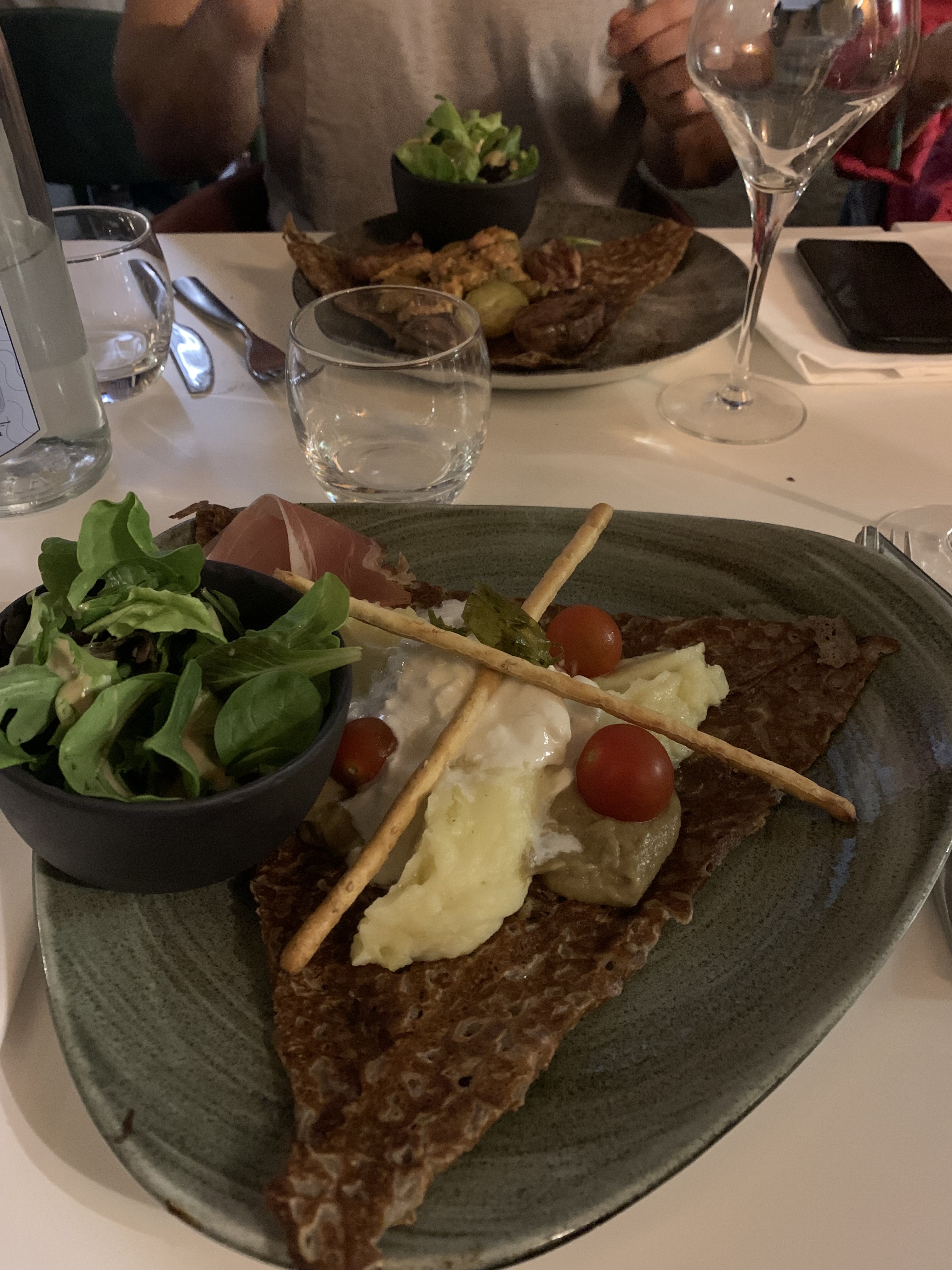 Une superbe expérience dans cette crêperie qui propose une carte savoureuse et originale avec des produits de qualité. Un décor soigné et haut de gamme. Le personnel est aux petits soin. Nous avons pris la crêpe Georgio Armani avec du foie gras et du magret de canard. Elle est vraiment excellente, nous vous la recommandons. Ainsi qu’une Georges Pernoud à la chair de tourteaux, artichauts, fenouil, citron confit et aux baies roses. Elle était très bonne également. En dessert nous avons testé l’italienne et l’espelette. Délicieuse également. Nous recommandons et nous reviendrons.