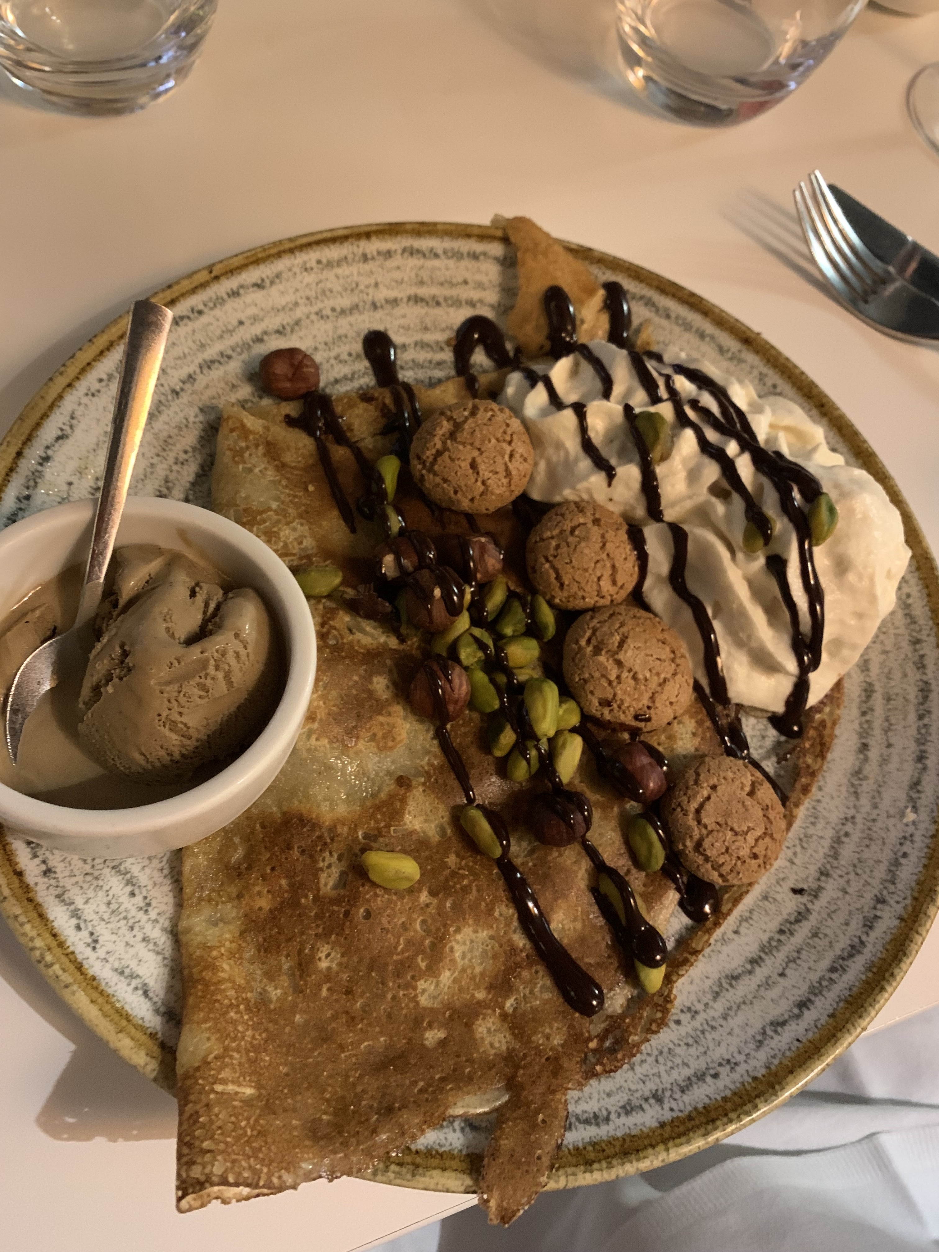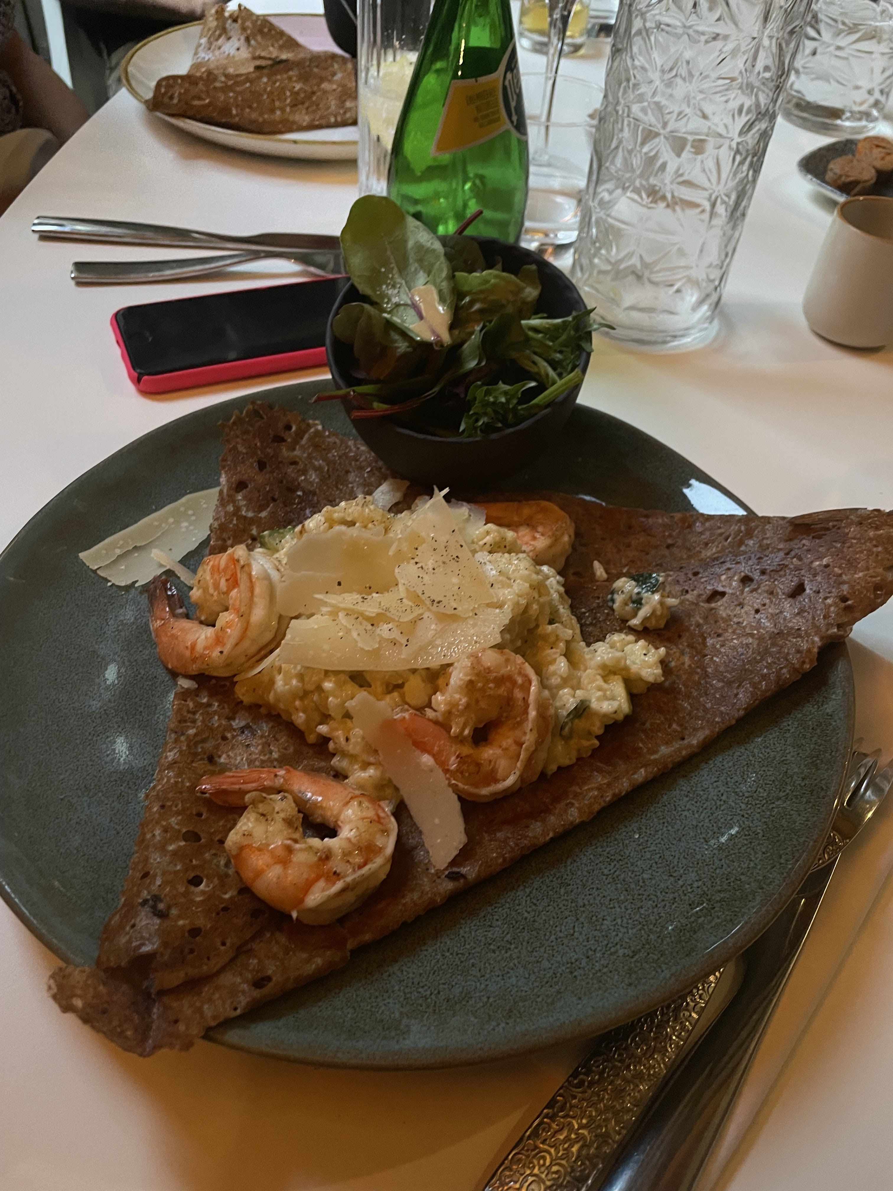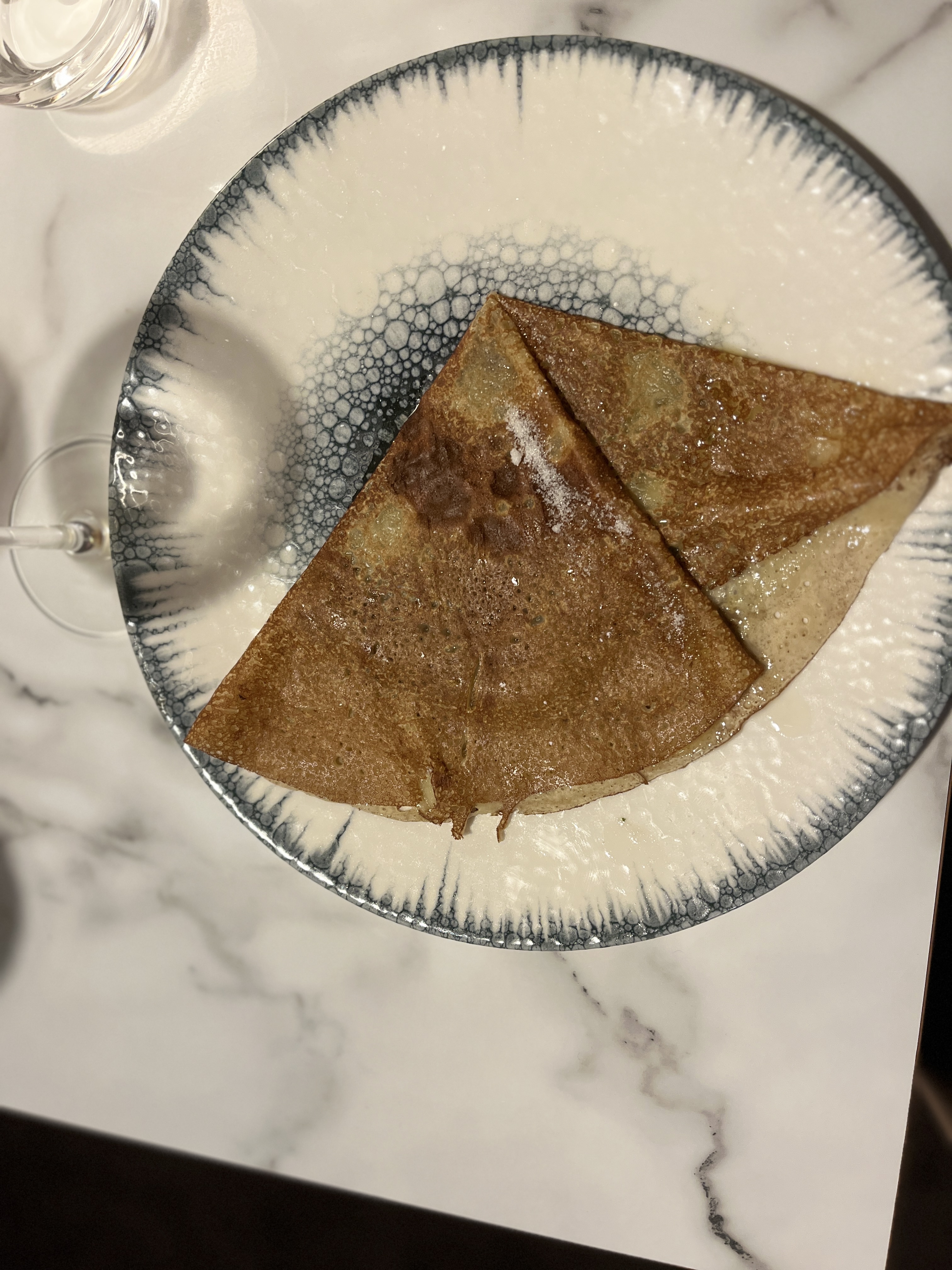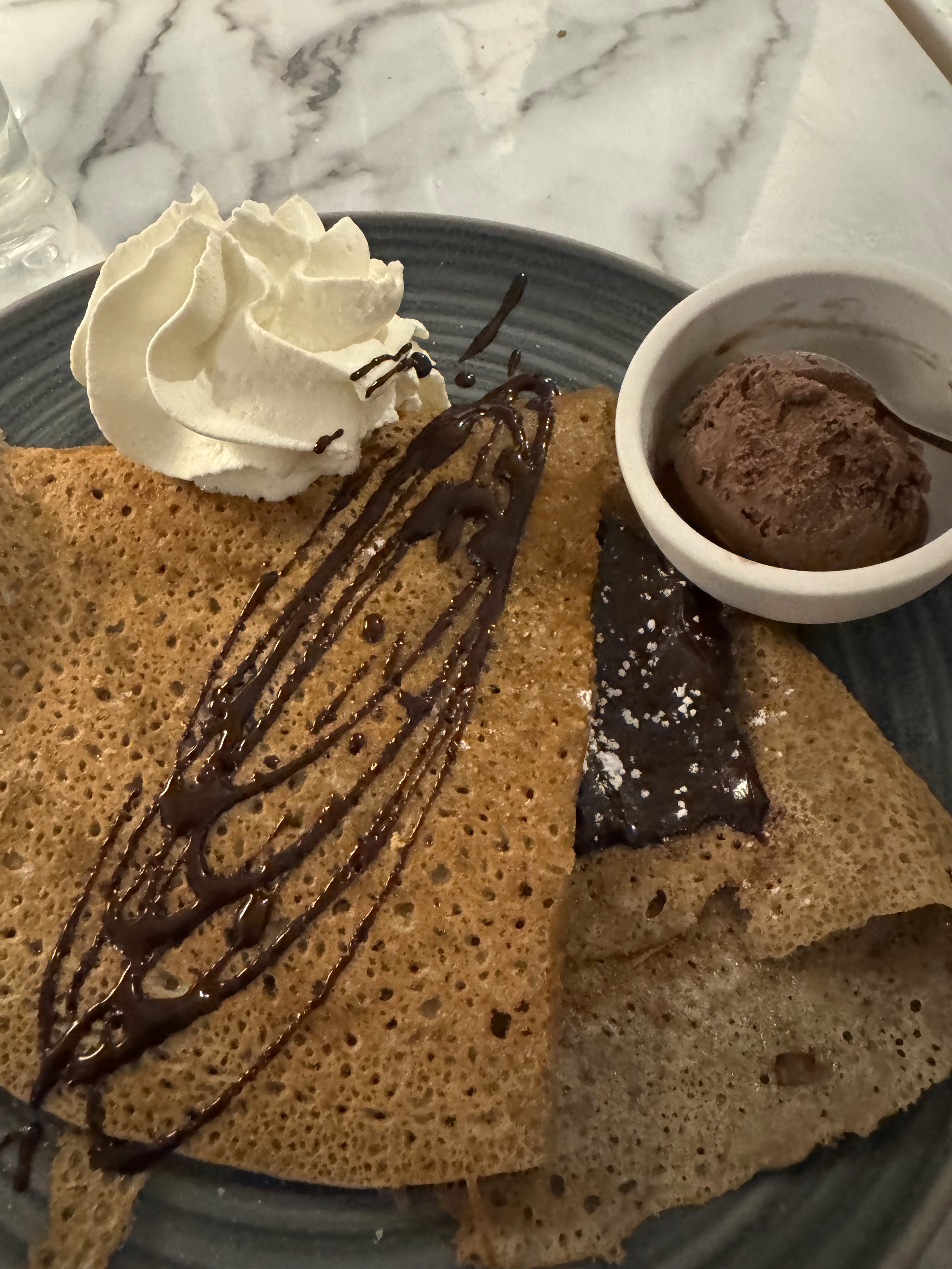 Une superbe expérience dans cette crêperie qui propose une carte savoureuse et originale avec des produits de qualité. Un décor soigné et haut de gamme. Le personnel est aux petits soin. Nous avons pris la crêpe Georgio Armani avec du foie gras et du magret de canard. Elle est vraiment excellente, nous vous la recommandons. Ainsi qu’une Georges Pernoud à la chair de tourteaux, artichauts, fenouil, citron confit et aux baies roses. Elle était très bonne également. En dessert nous avons testé l’italienne et l’espelette. Délicieuse également. Nous recommandons et nous reviendrons.