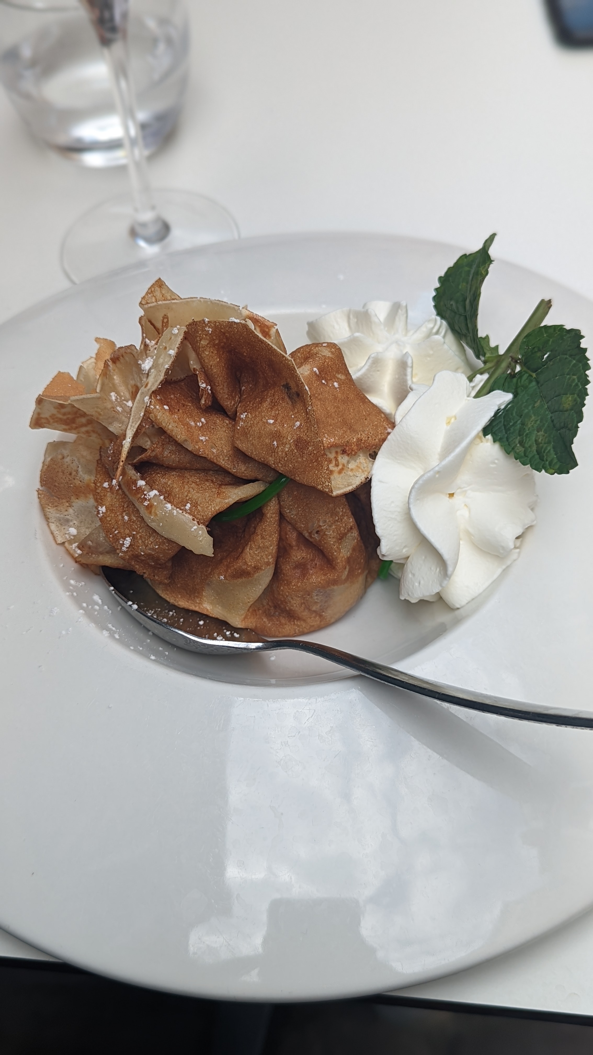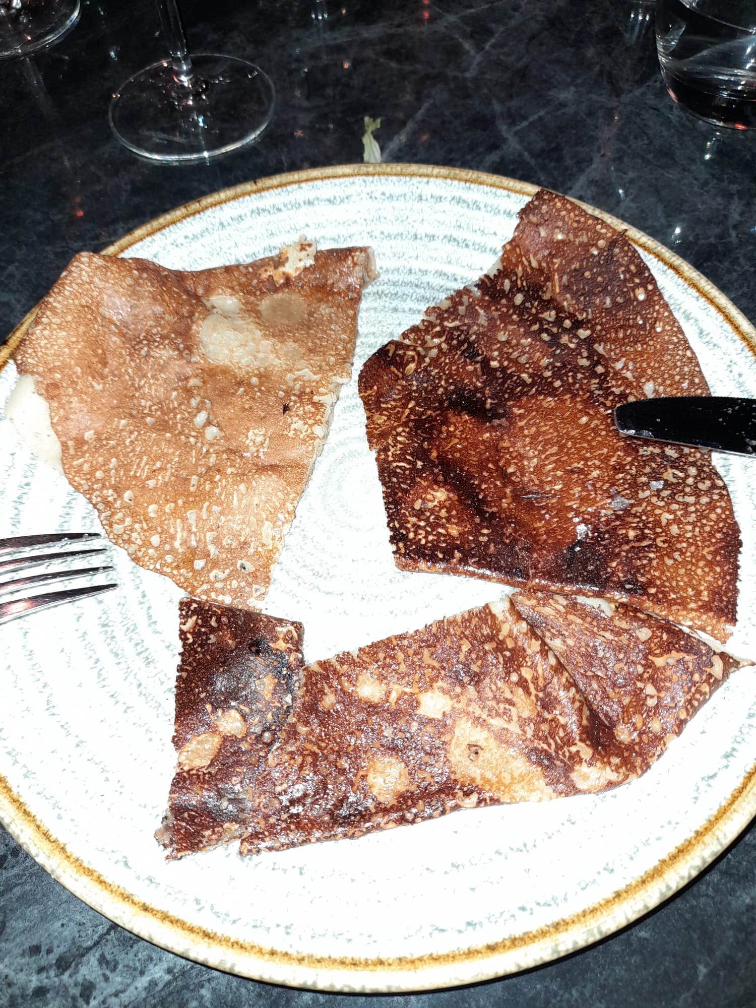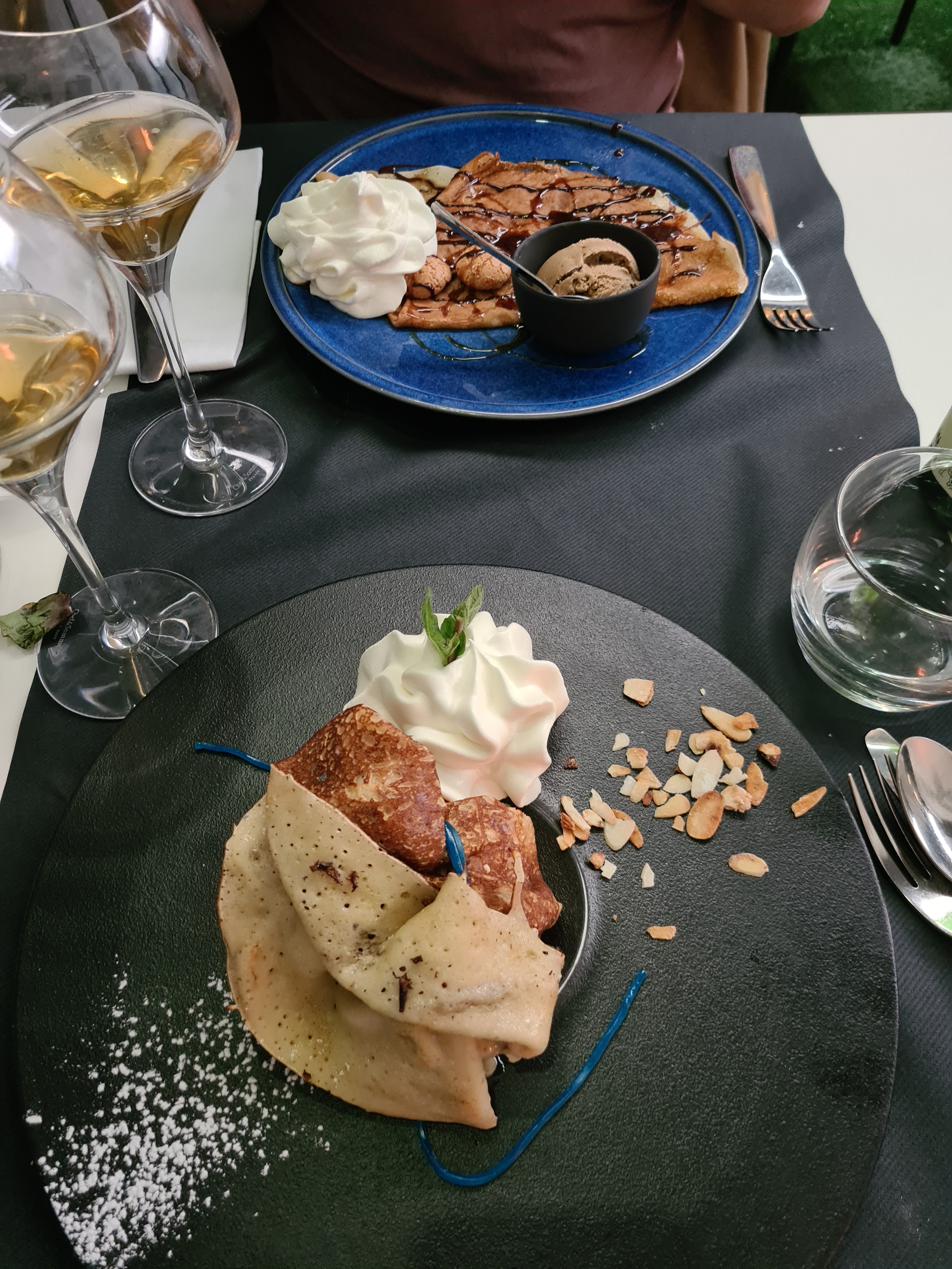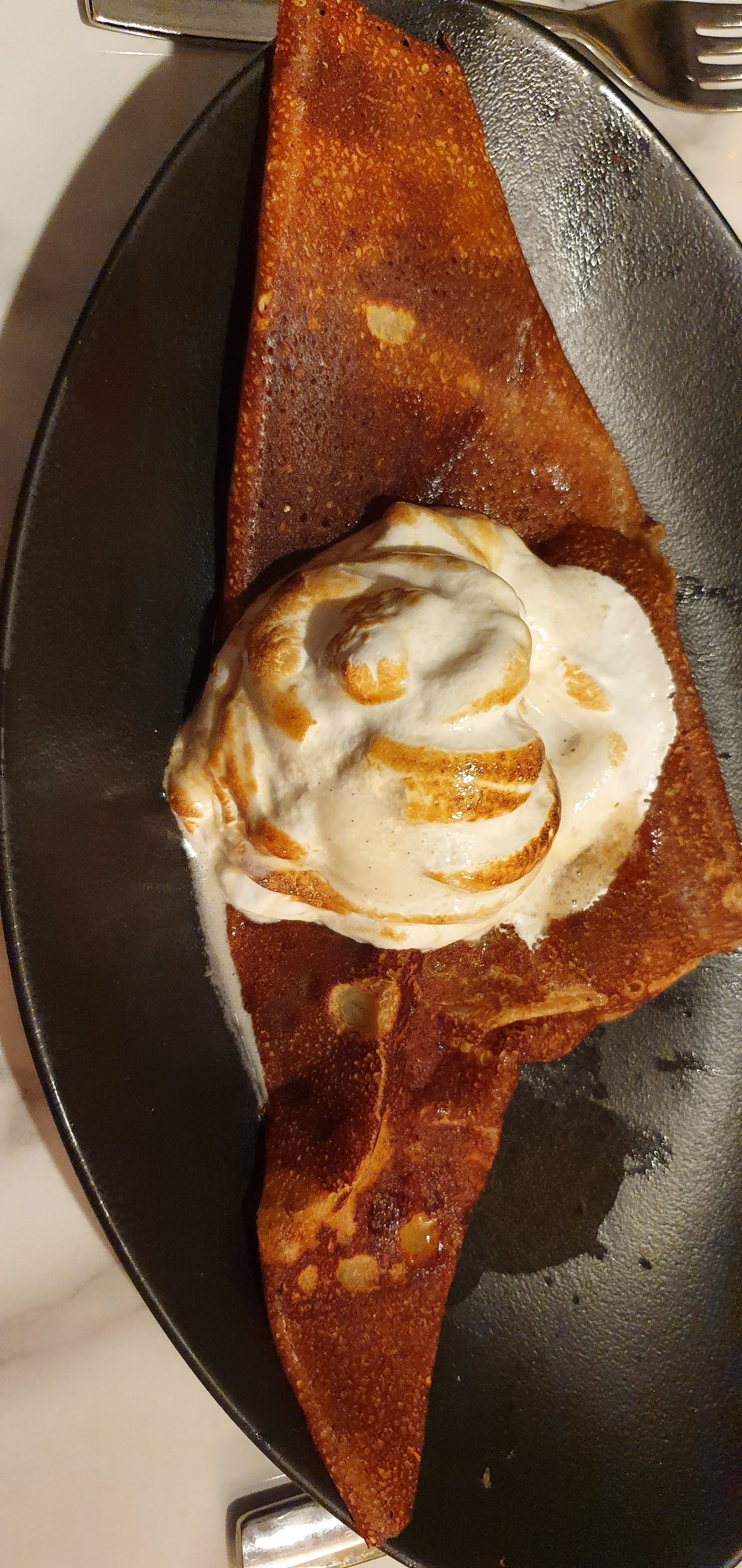 Une superbe expérience dans cette crêperie qui propose une carte savoureuse et originale avec des produits de qualité. Un décor soigné et haut de gamme. Le personnel est aux petits soin. Nous avons pris la crêpe Georgio Armani avec du foie gras et du magret de canard. Elle est vraiment excellente, nous vous la recommandons. Ainsi qu’une Georges Pernoud à la chair de tourteaux, artichauts, fenouil, citron confit et aux baies roses. Elle était très bonne également. En dessert nous avons testé l’italienne et l’espelette. Délicieuse également. Nous recommandons et nous reviendrons.