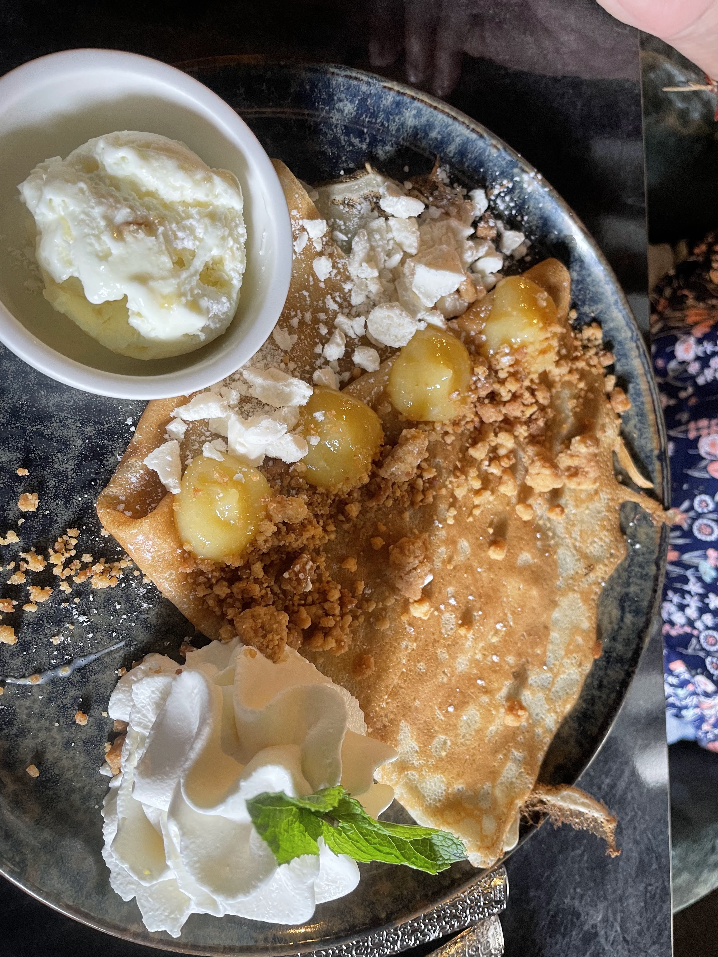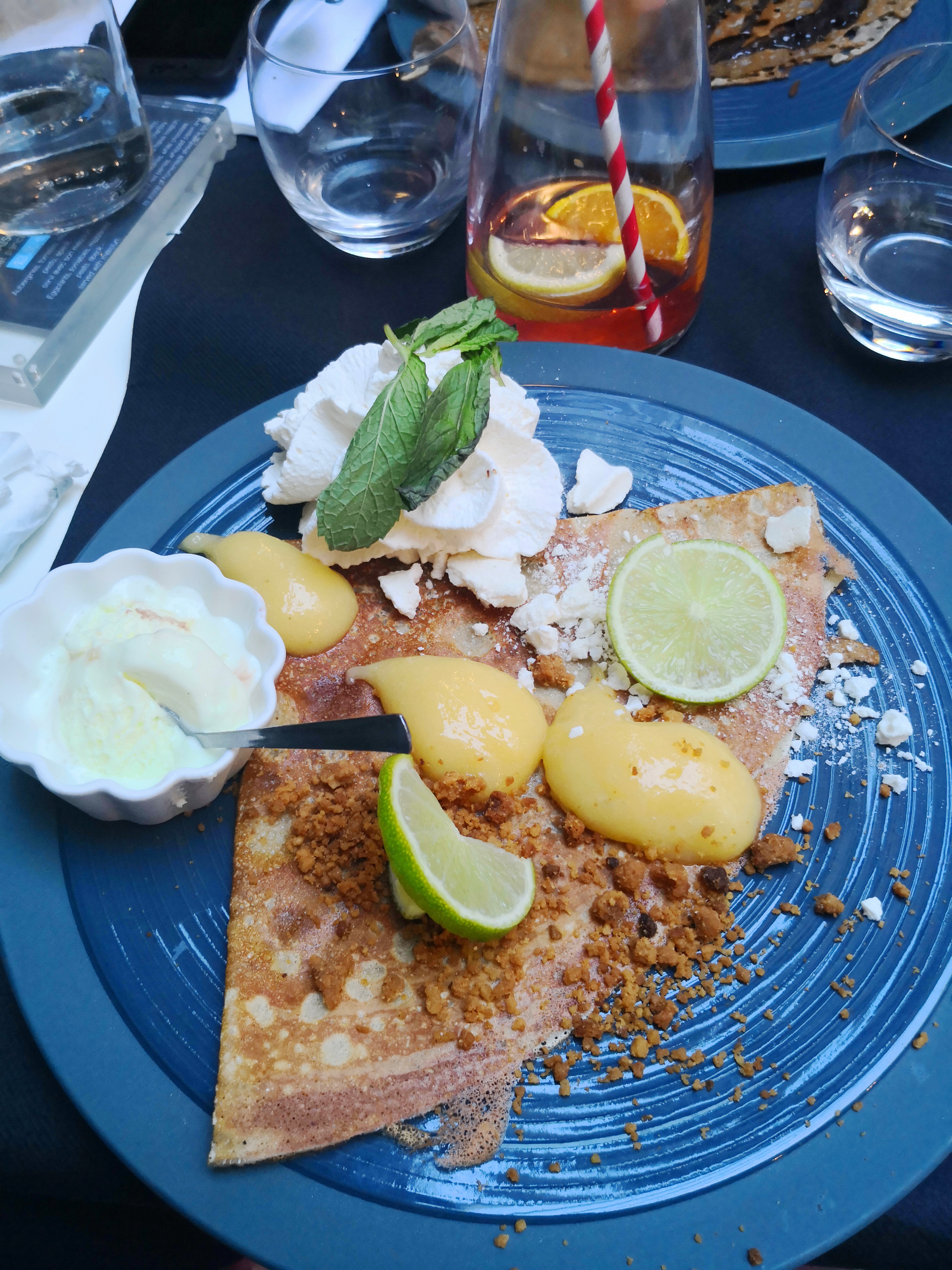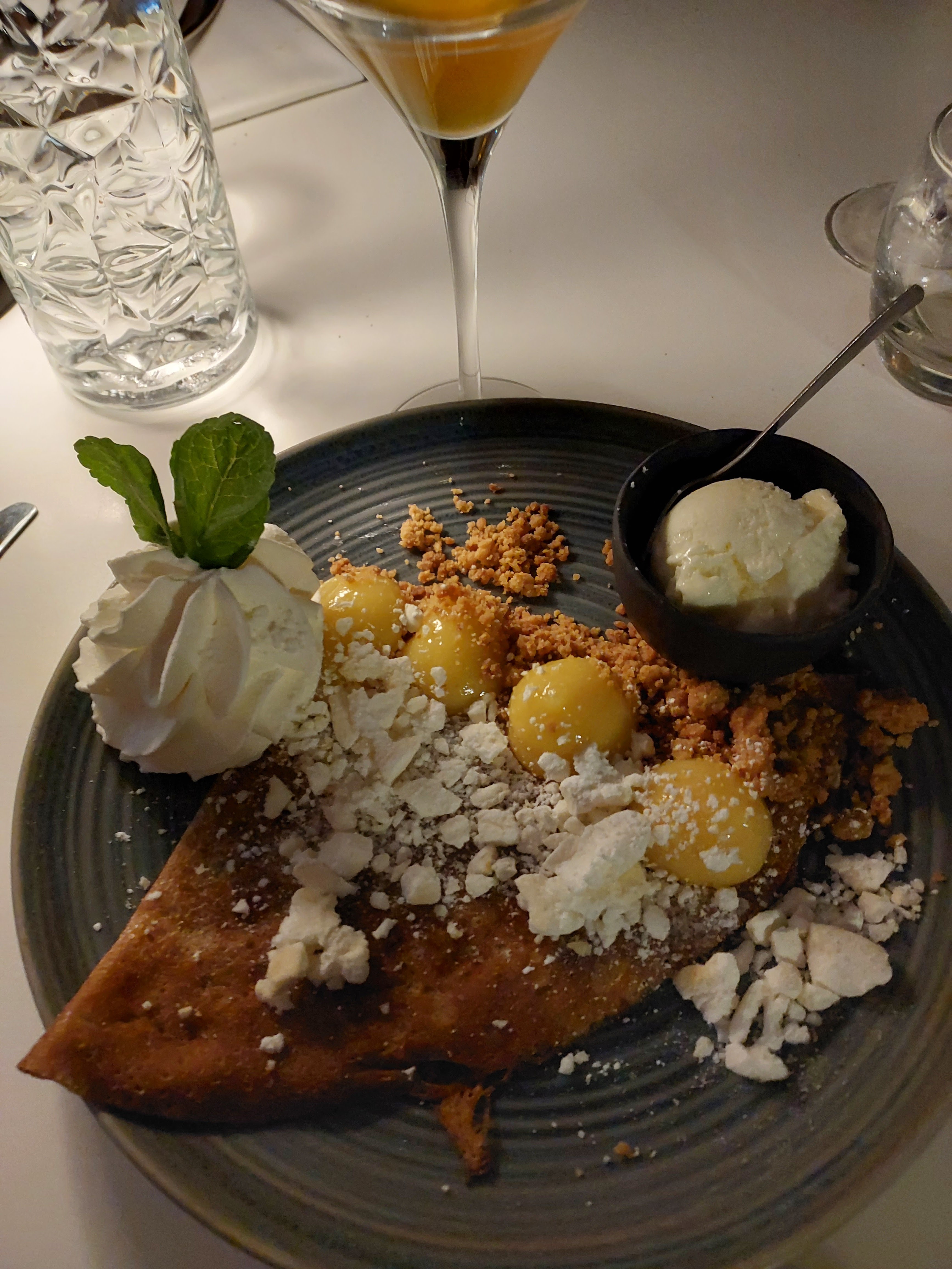 Crêpes très bonnes avec sorbet bien original, serveurs sympa, tout c’est bien passé. merci!