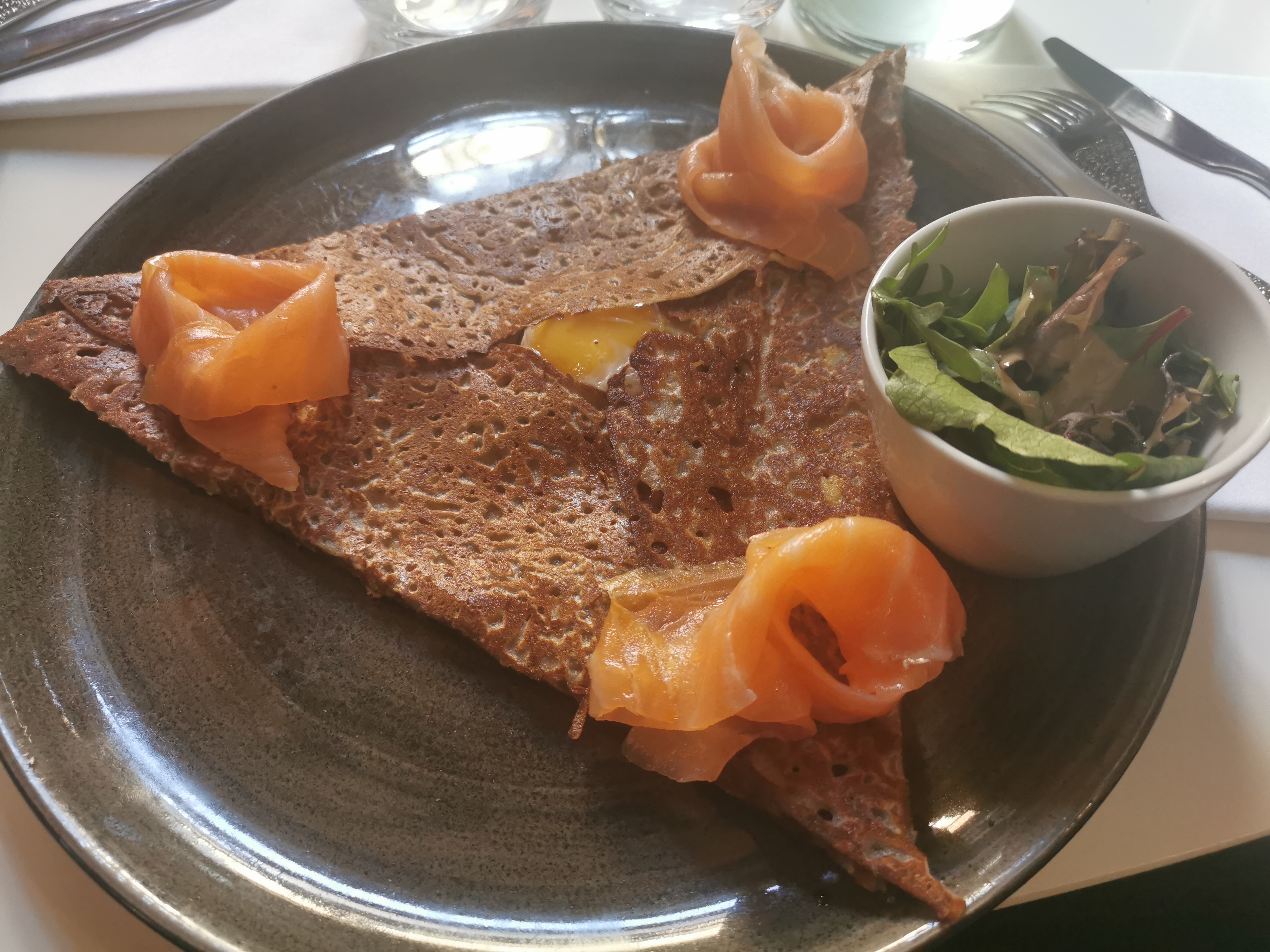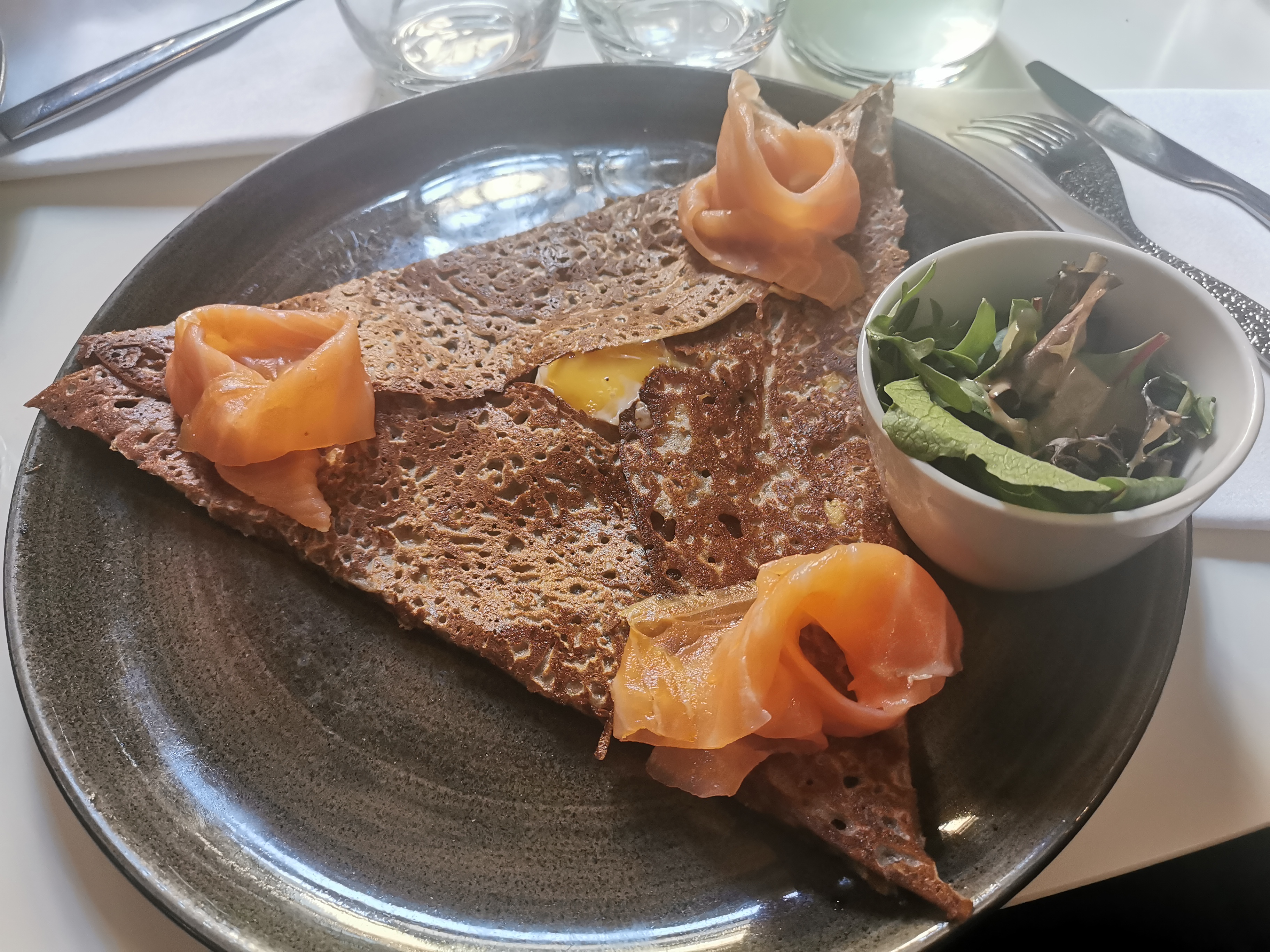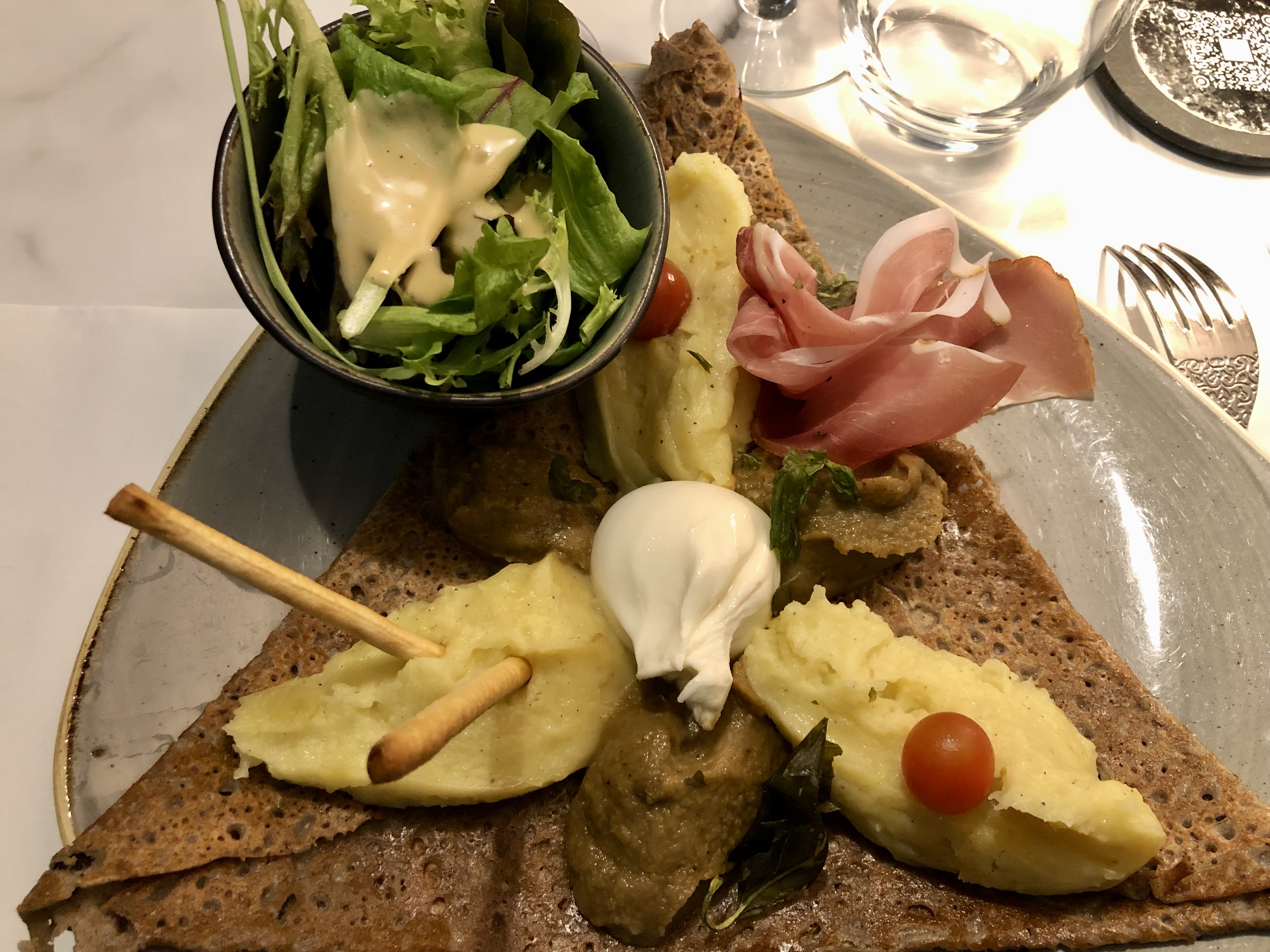 Restaurant très soigné tant dans le service que pour le lieu. Une décoration très design. Les formules sont à très bon prix. Grand choix de galettes ayant un choix d'ingrédients surprenant mais délicieuses.