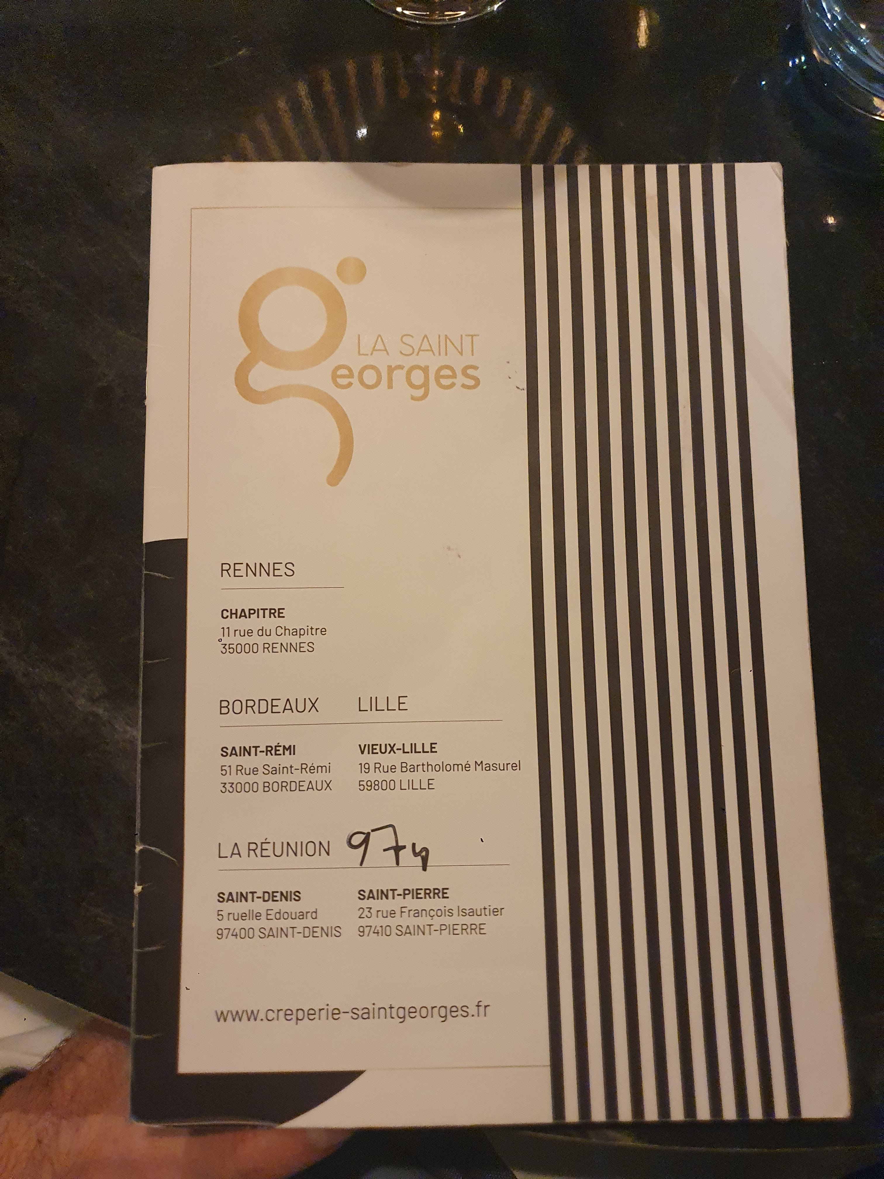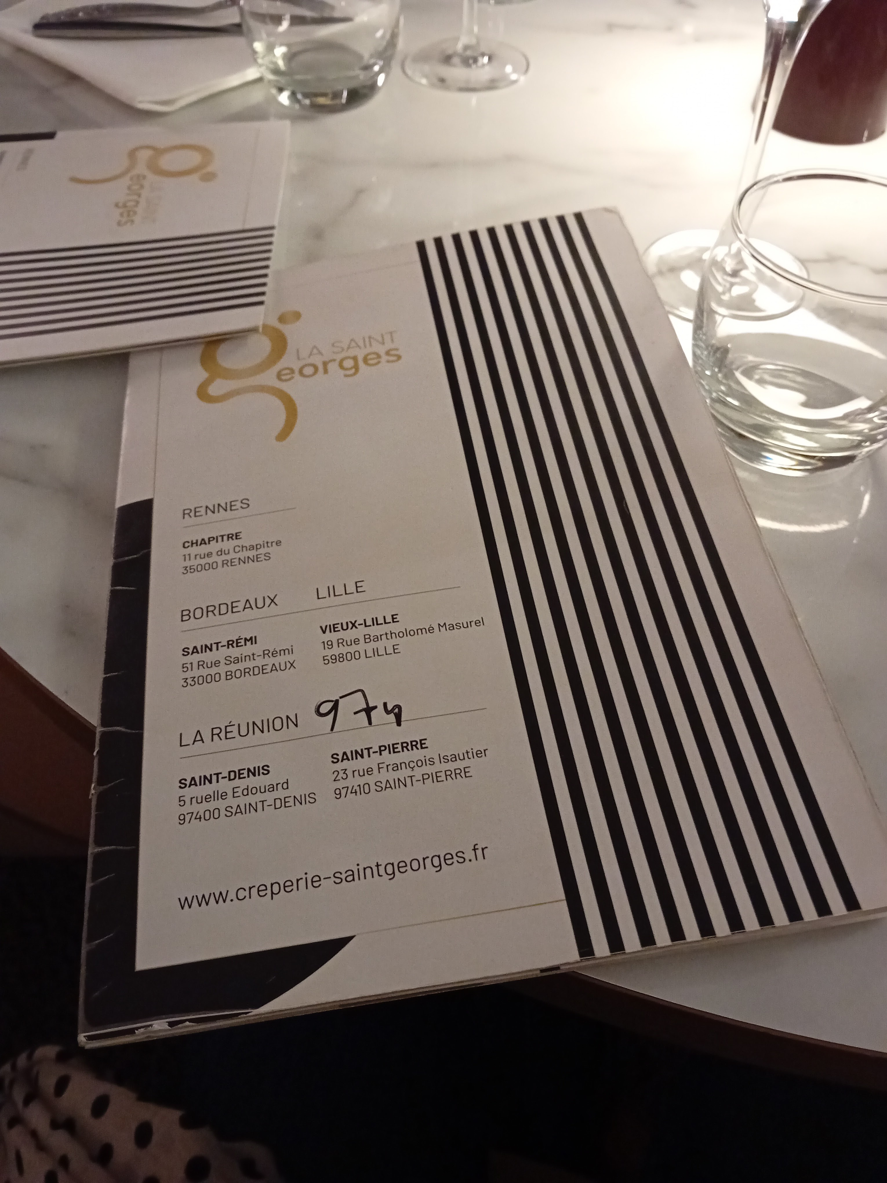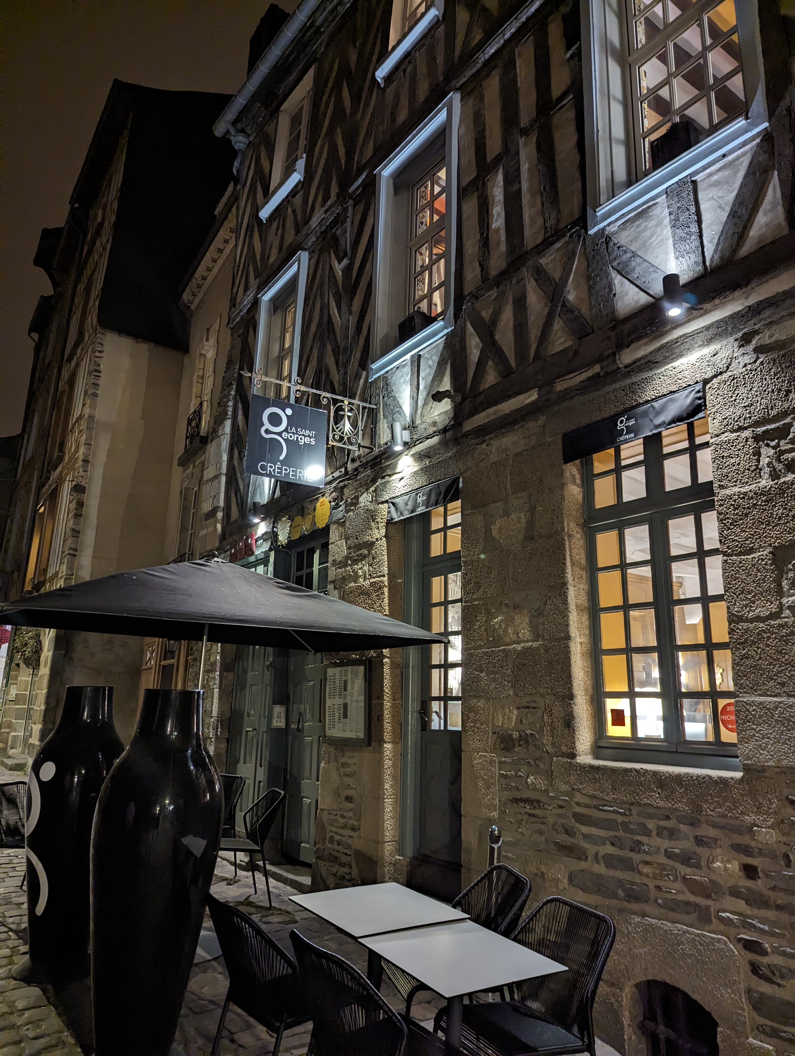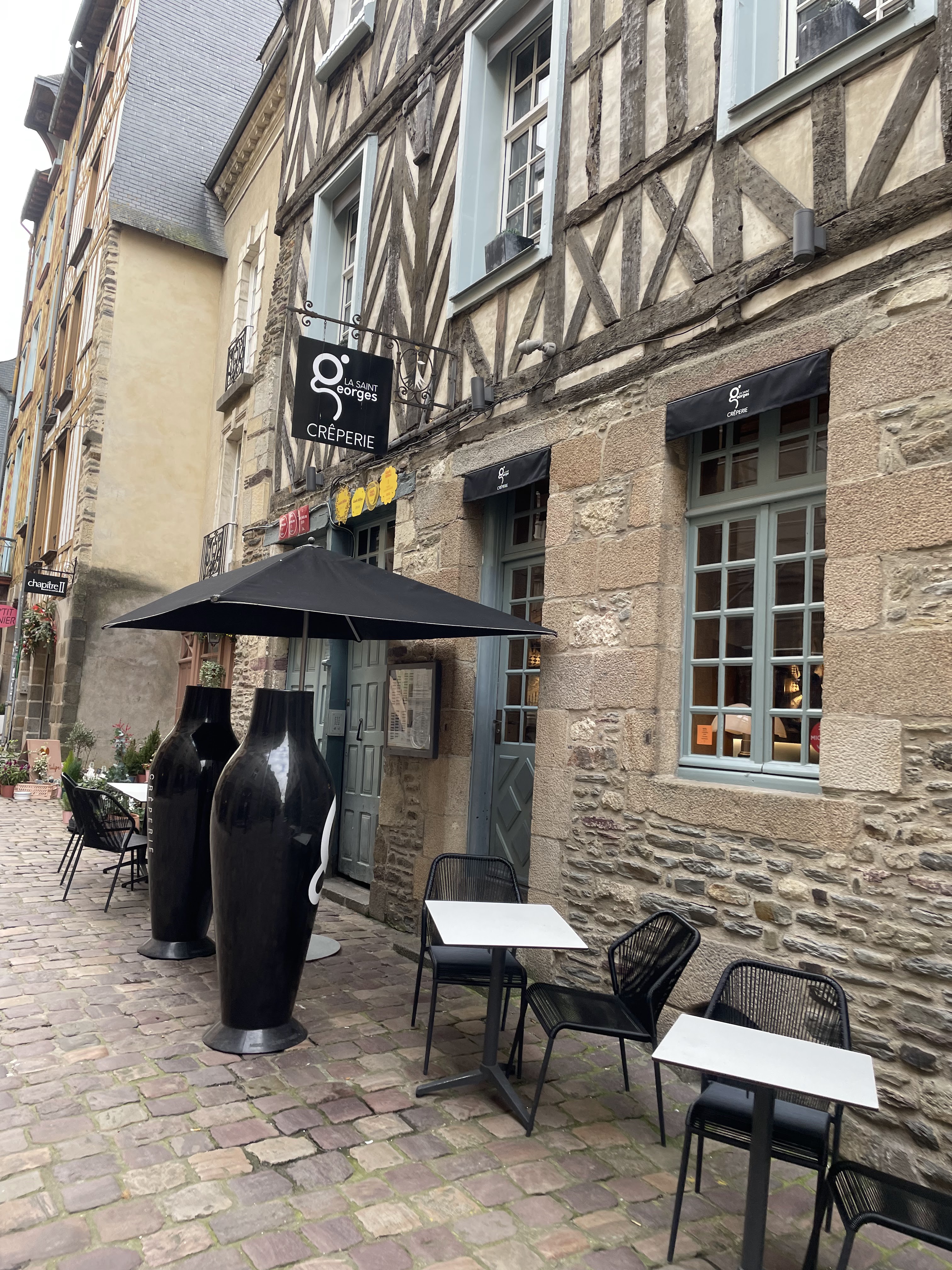 Mon tour des crêperies du vieux Rennes devait bien se terminer un jour. Me voici donc en face de la crêperie St Georges rue du chapitre, la dernière sur ma liste ! On m’a dit que c’était la meilleure, oui mais voilà entre temps j’ai pris de la galette 😀 j’en ai fait et refait des crêperies mais bon allez let’s go, franchissons la porte de cette vieille demeure rennaise. Dès l’entrée on se sent bien qu’il ne s’agit pas d’une crêperie traditionelle. sans réservation j’arrive à avoir une table, le tout avec le sourire, cela commence bien. Et me voilà parti avec l’apéro galettes aux beurres Bordier, j’enchaine avec une Georges Pompidou et enfin une Tarte citron... c’était délicieux. La galette est top, craquante aux extrémités mais riche en ingrédients, la crêpe très bonne. Le service toujours impeccable. Bref oui la St Georges est sans aucun doute une des meilleures crêperies de Rennes mais la concurrence est pas mal du tout aussi. Bref j’ai parcouru l’univers des crêperies rennaises et ce fut une véritable découverte d’un plat souvent perçu comme de la cuisine rapide alors qu’il existe des saveurs vraiment intéressantes. Pour en finir, la Saint Georges est top, ce fut un bon moment.