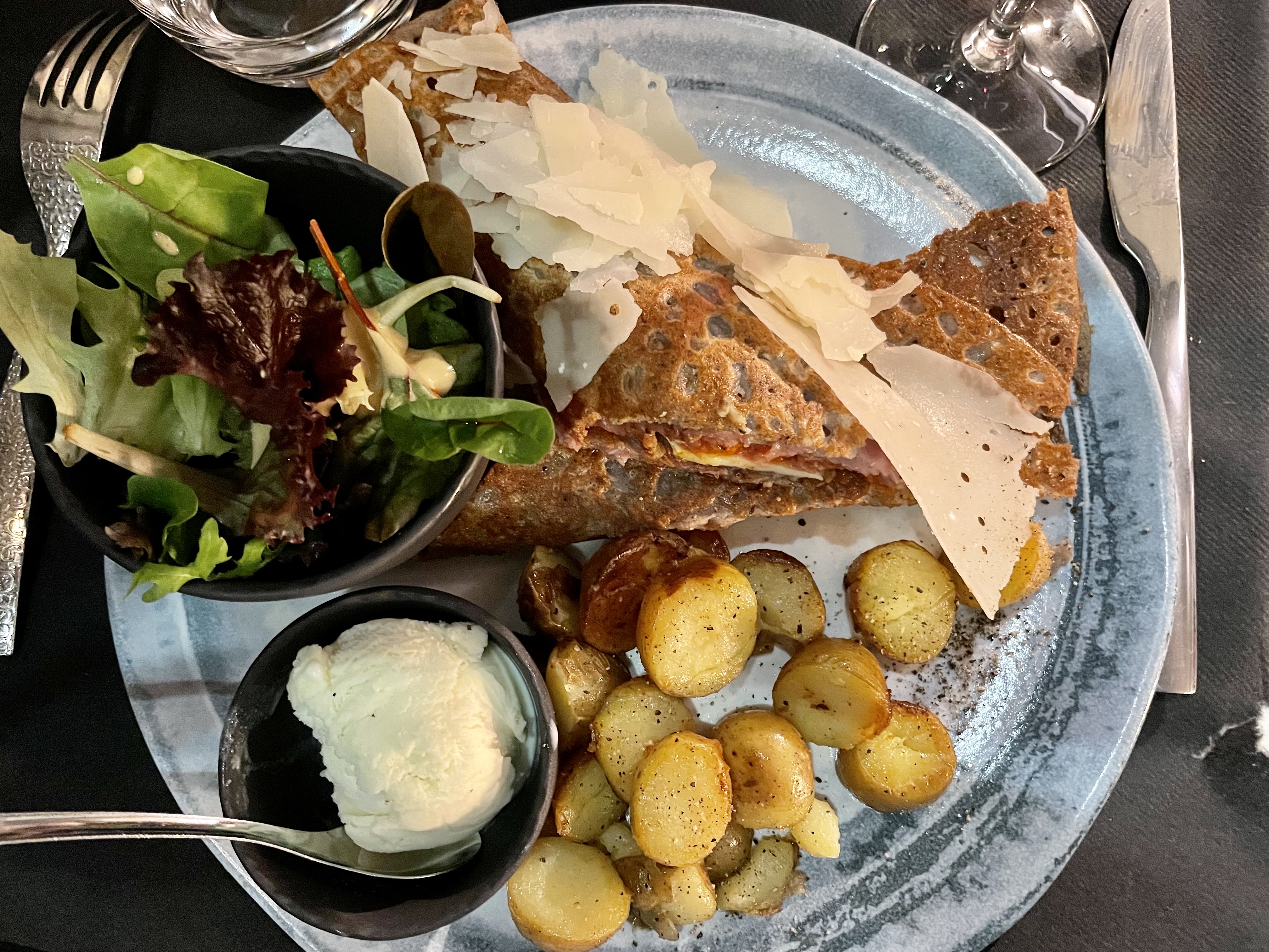 Waouh.... J'ai adoré la saveur de la galette, l'association avec des produits nobles ou en toute simplicité... Excellent, de plus le lieu est magnifique.